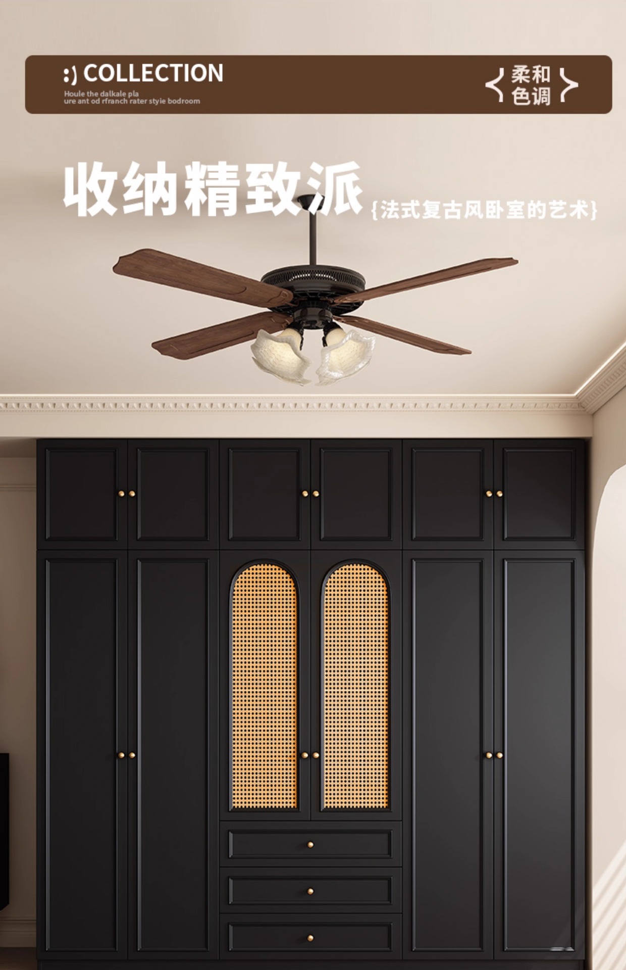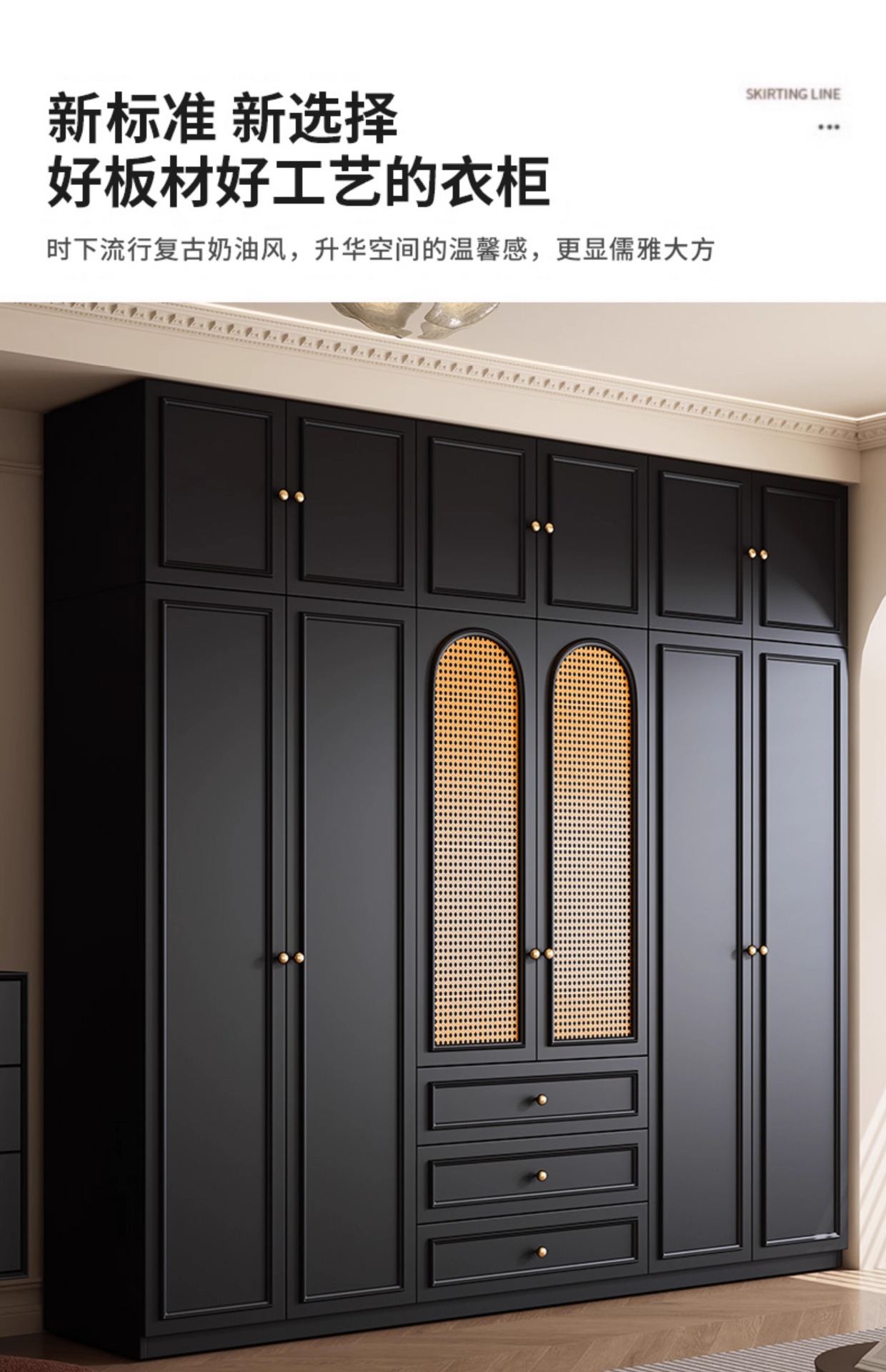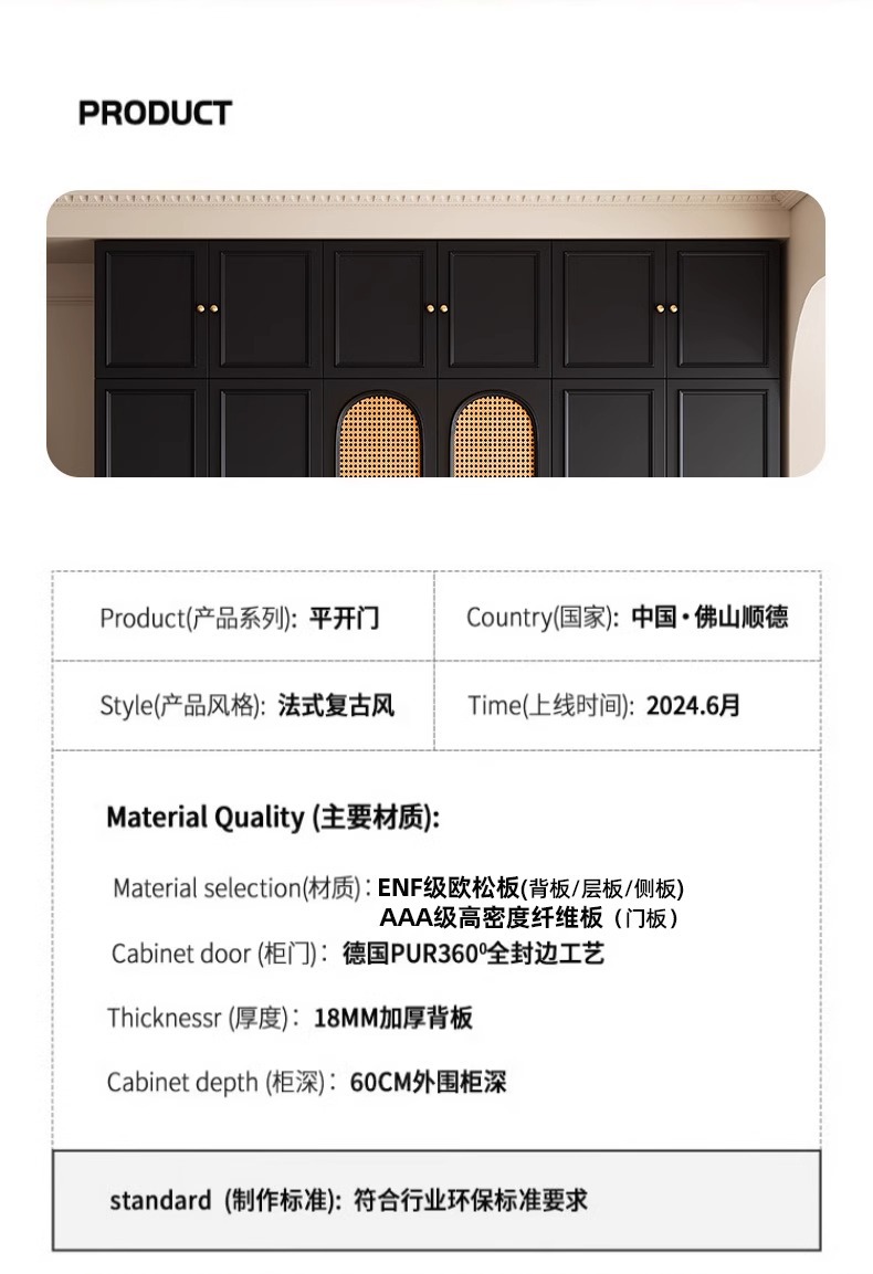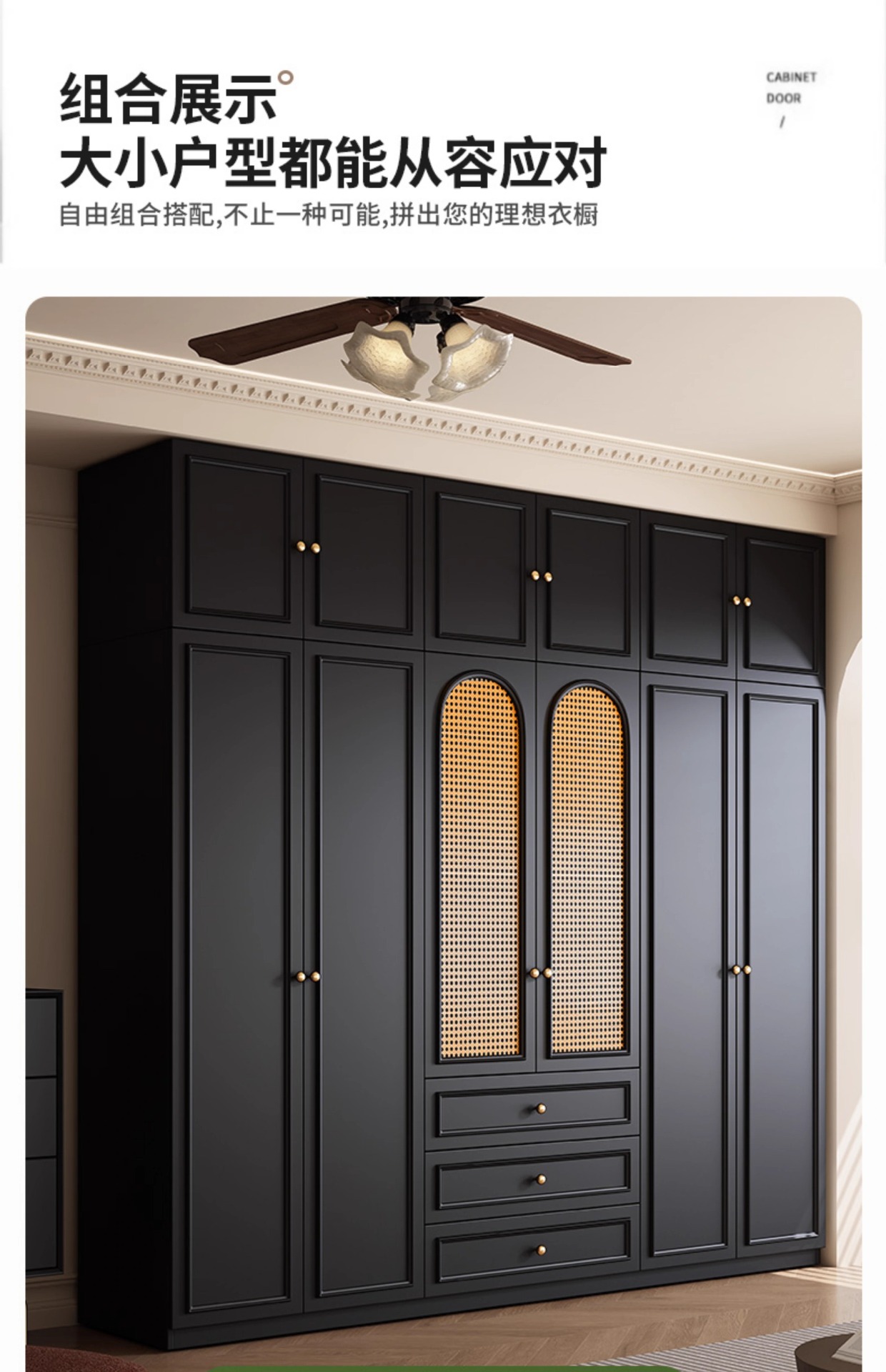 프렌치 레트로 스타일 블랙 옷장 등나무 문 홈 침실 작은 아파트 솔리드 우드 아메리칸 스타일 강력하고 튼튼한 대형 옷장스토어 가기