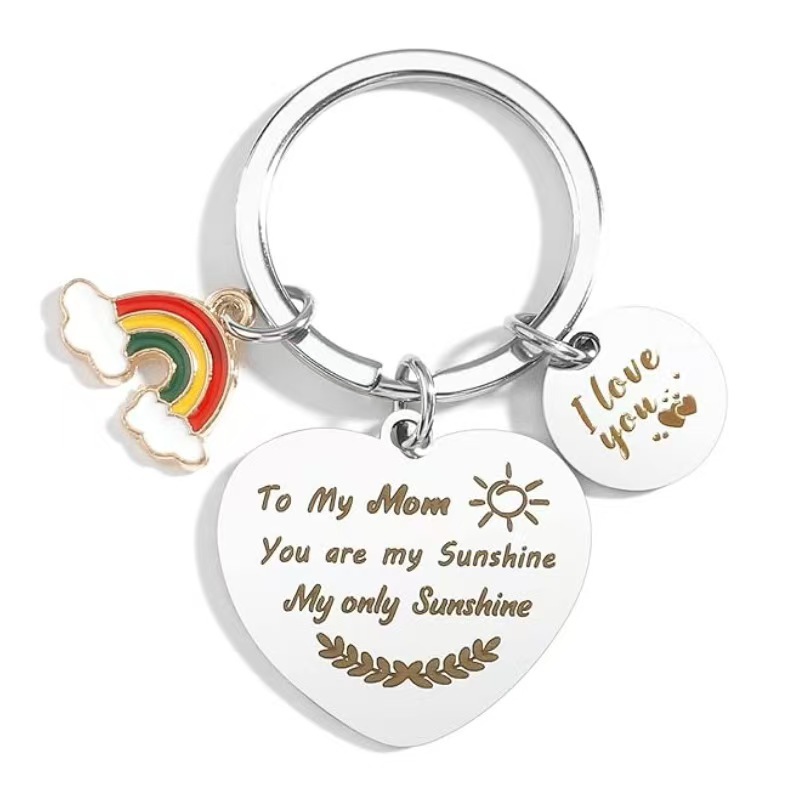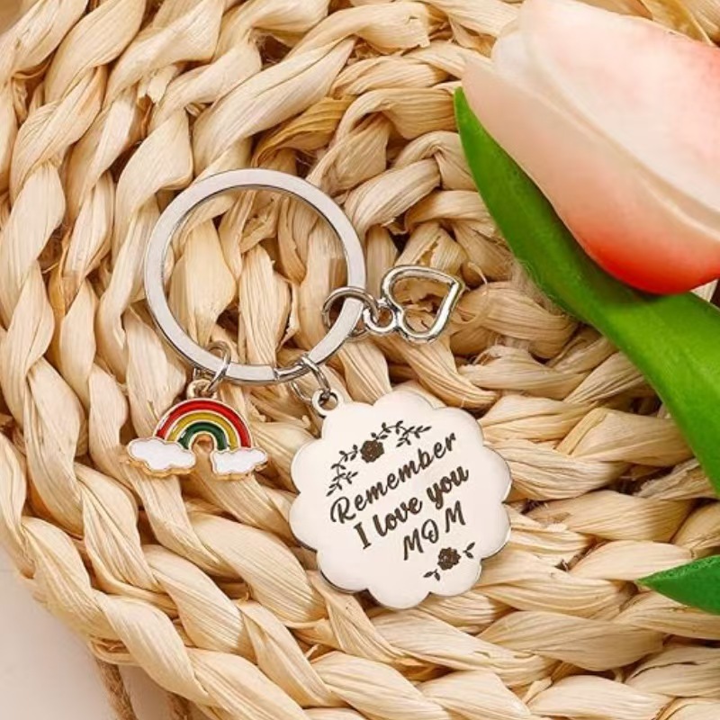 2025 새로운 금속 스테인레스 스틸 키 체인 4 잎 클로버 무지개 행운의 매력 펜던트 독일 감사 선물스토어 가기