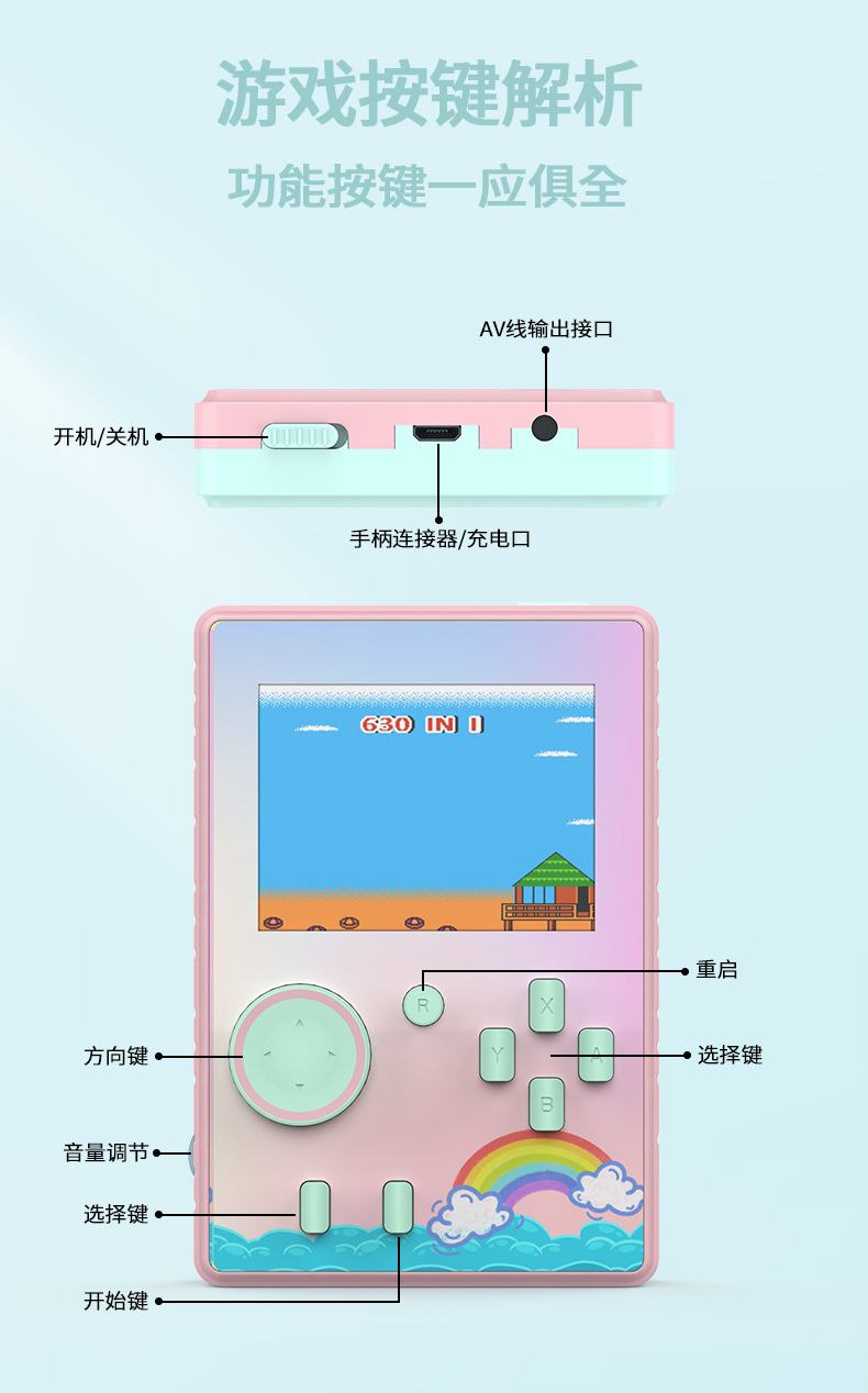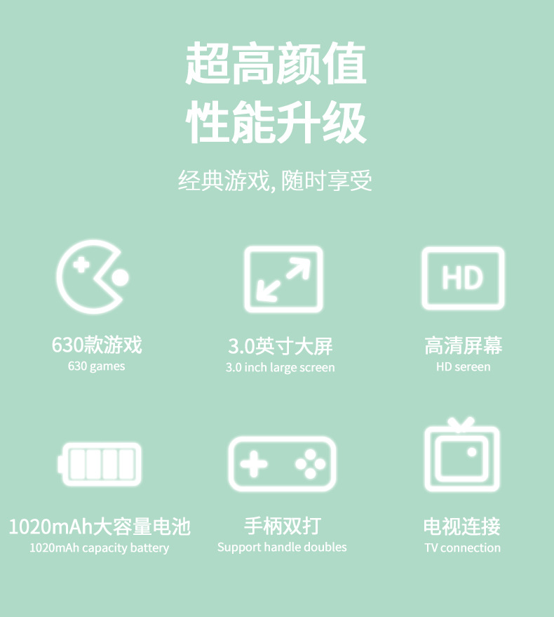 • [청록색] T3 휴대용 게임 콘솔 630 in 1