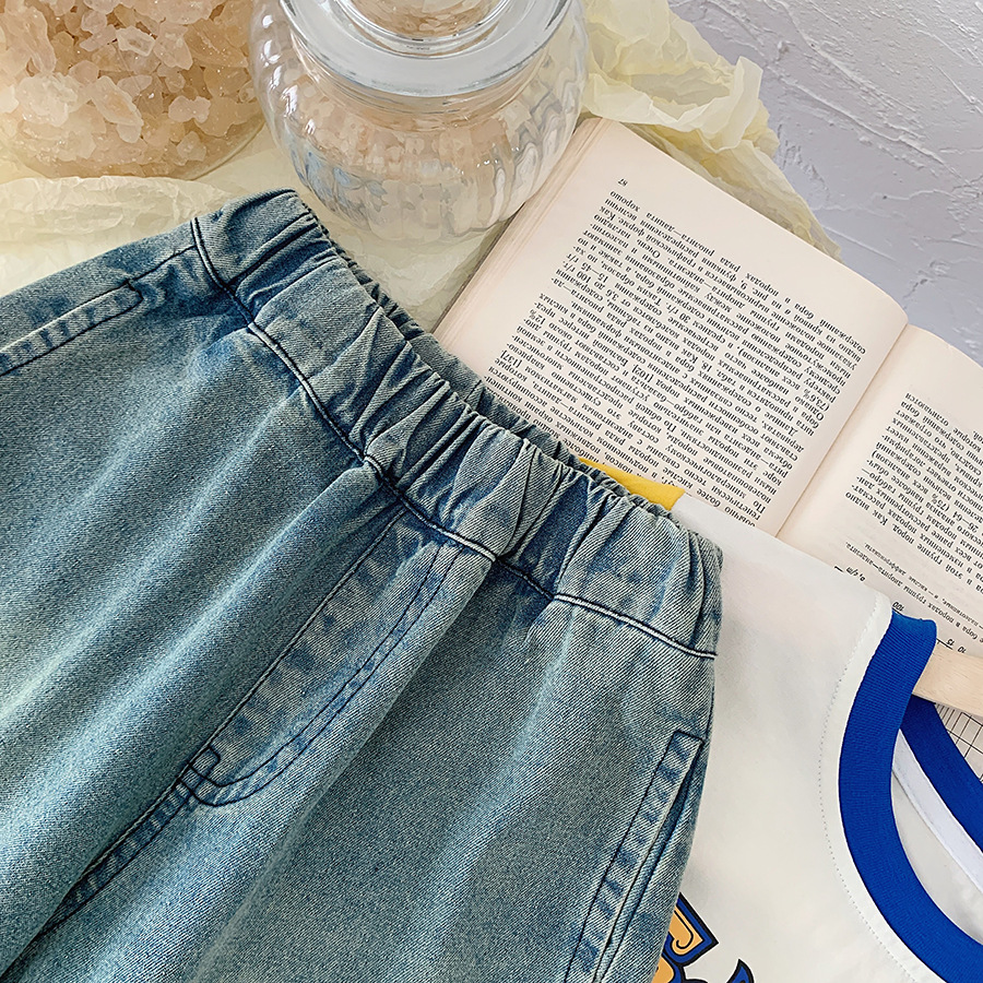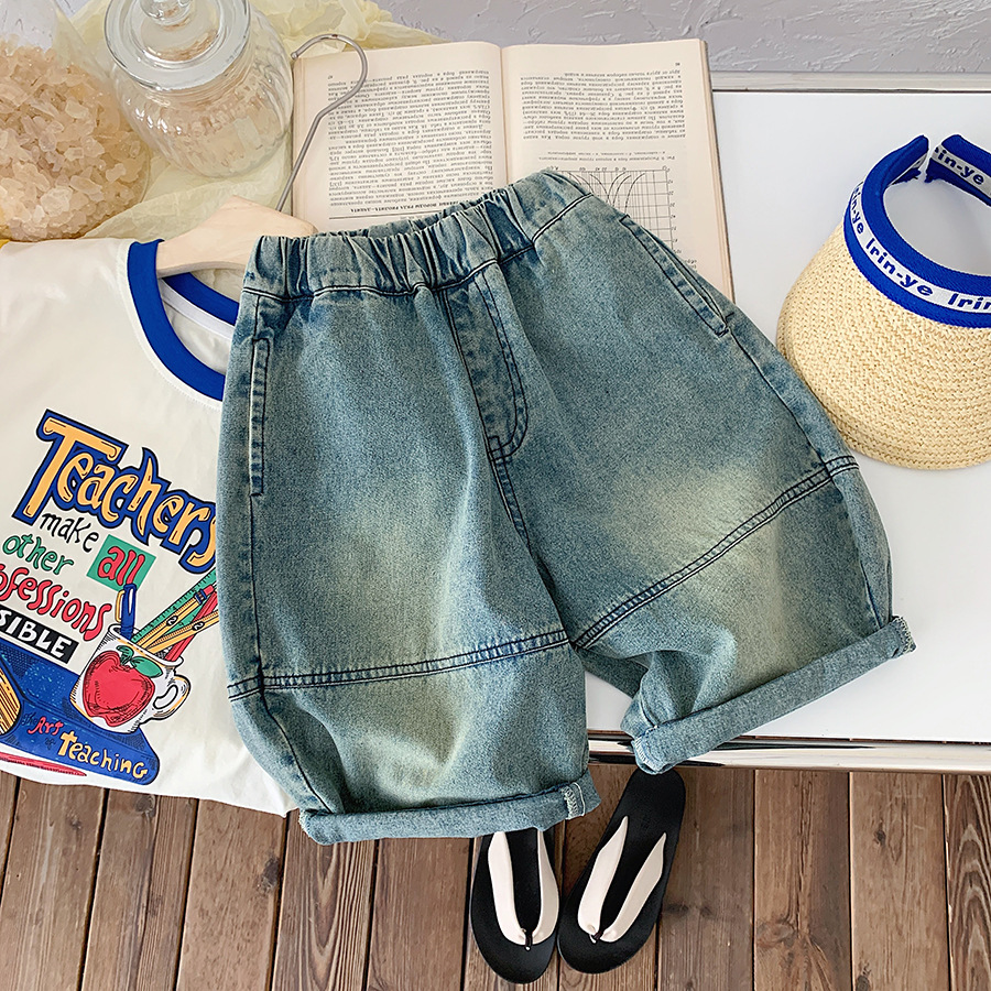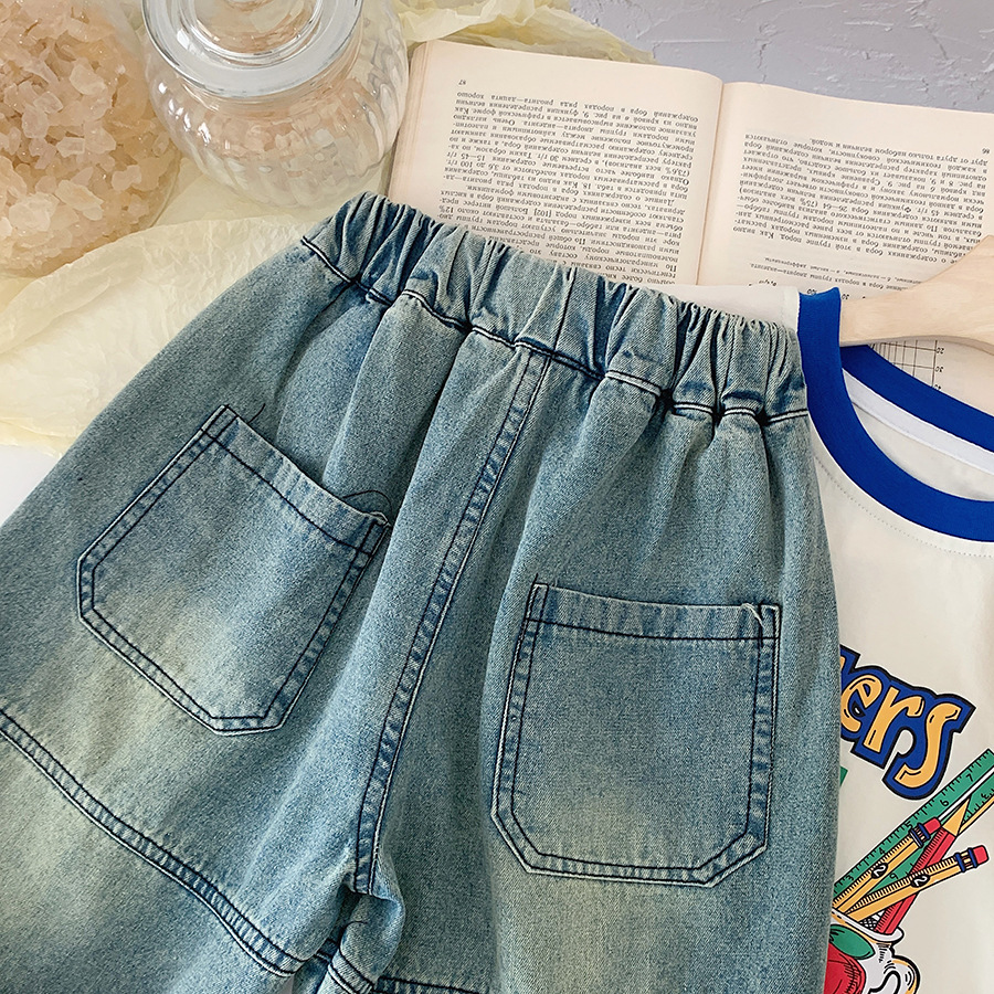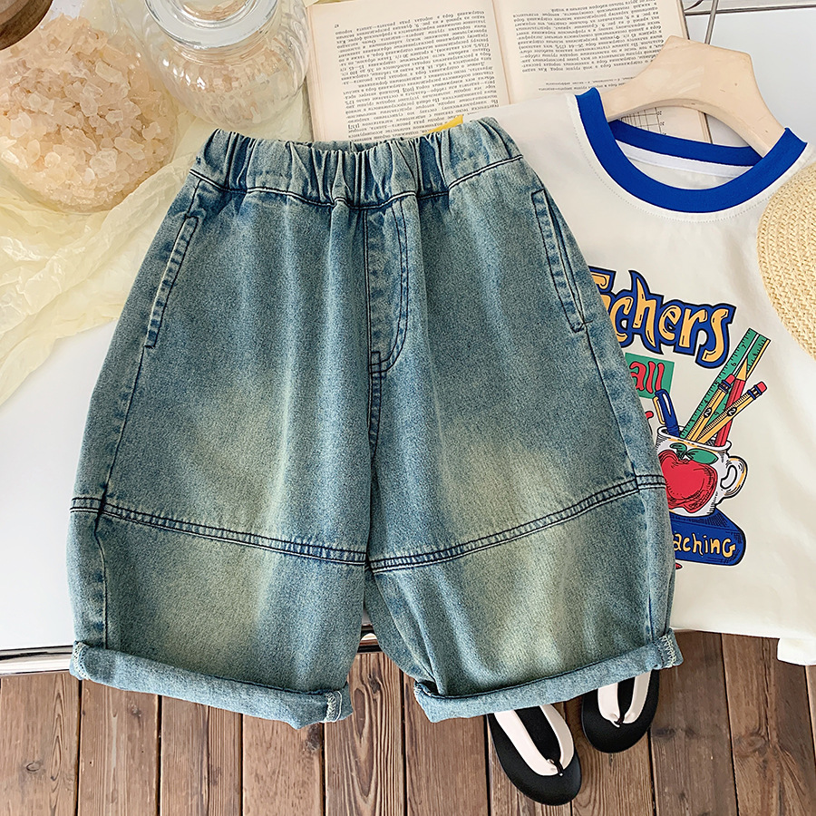 우드필드 아동 여름 청바지, 호주 직물로 제작된 아동복, 남아 여아 한국 스타일 스트레이트 팬츠, 유아용 7부 바지스토어 가기