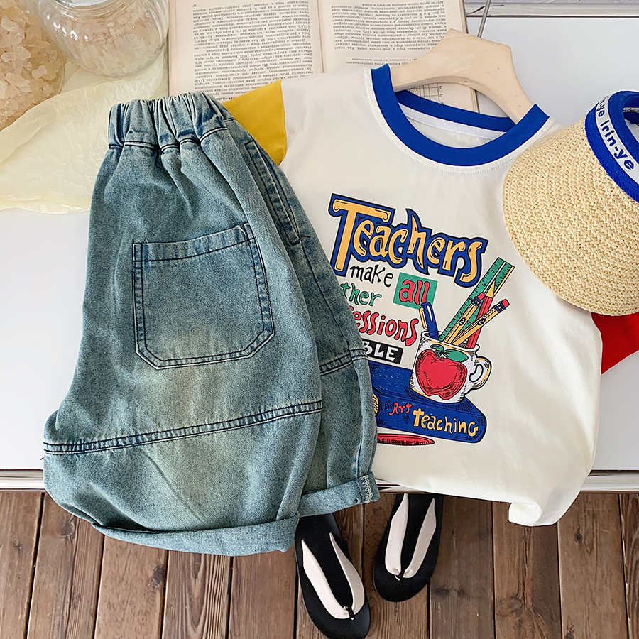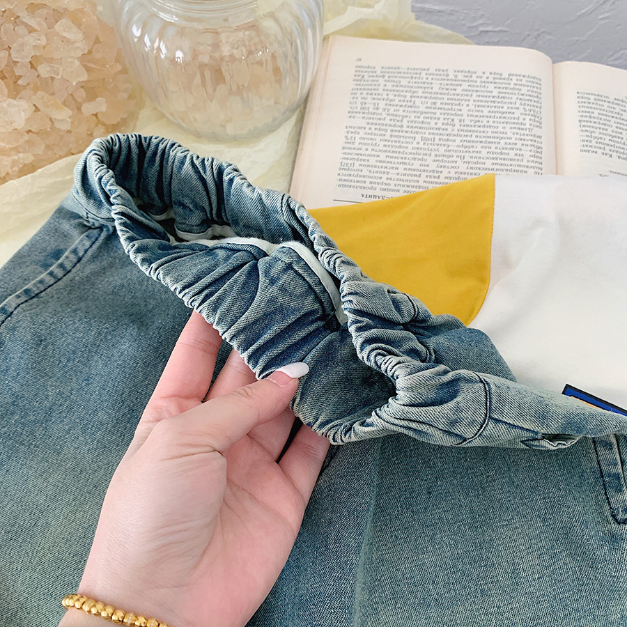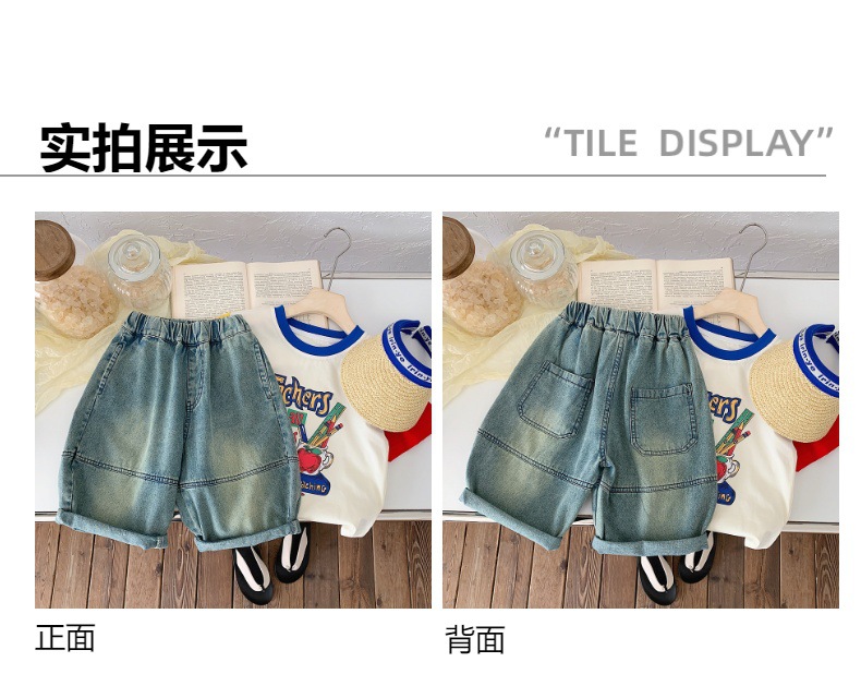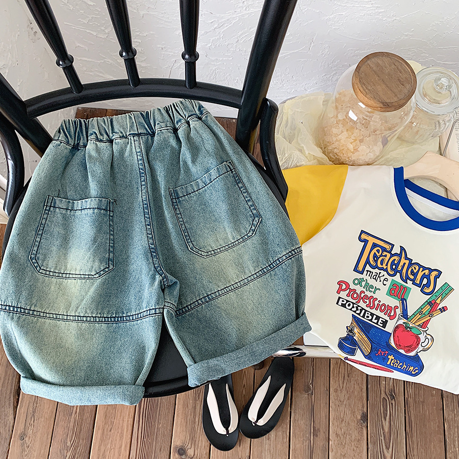 우드필드 아동 여름 청바지, 호주 직물로 제작된 아동복, 남아 여아 한국 스타일 스트레이트 팬츠, 유아용 7부 바지스토어 가기