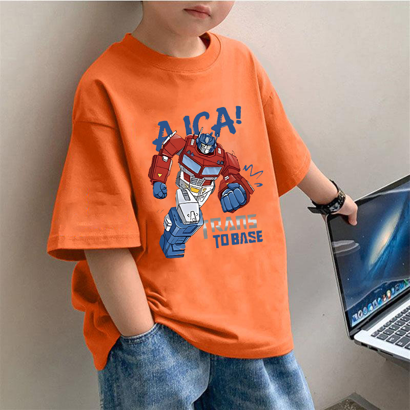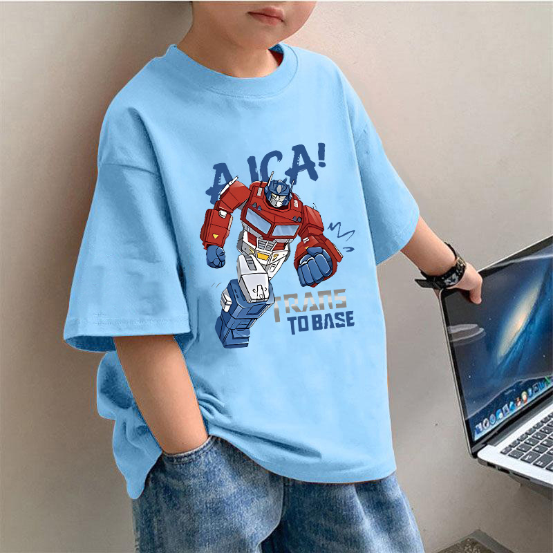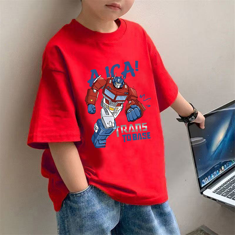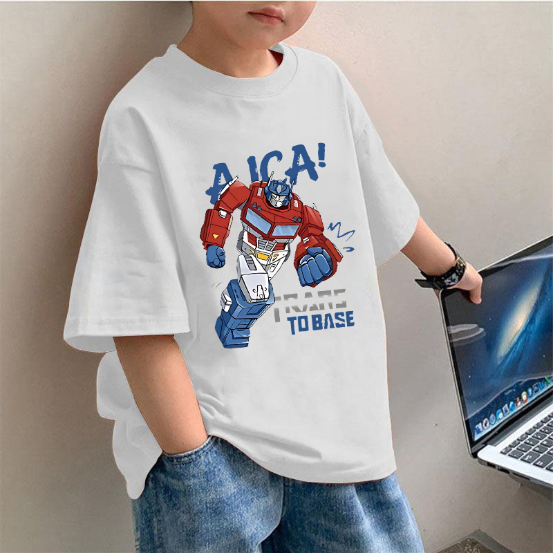 2034 # 아동복 소년 순면 반팔 티셔츠 라운드 넥 반팔 트렌디하고 멋진 아동용 중대형 아동용 탑 셔츠