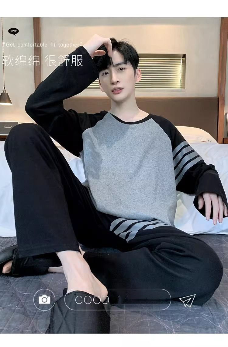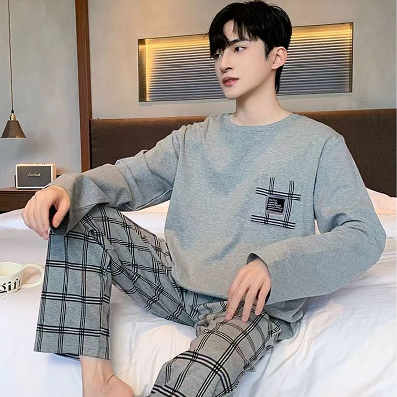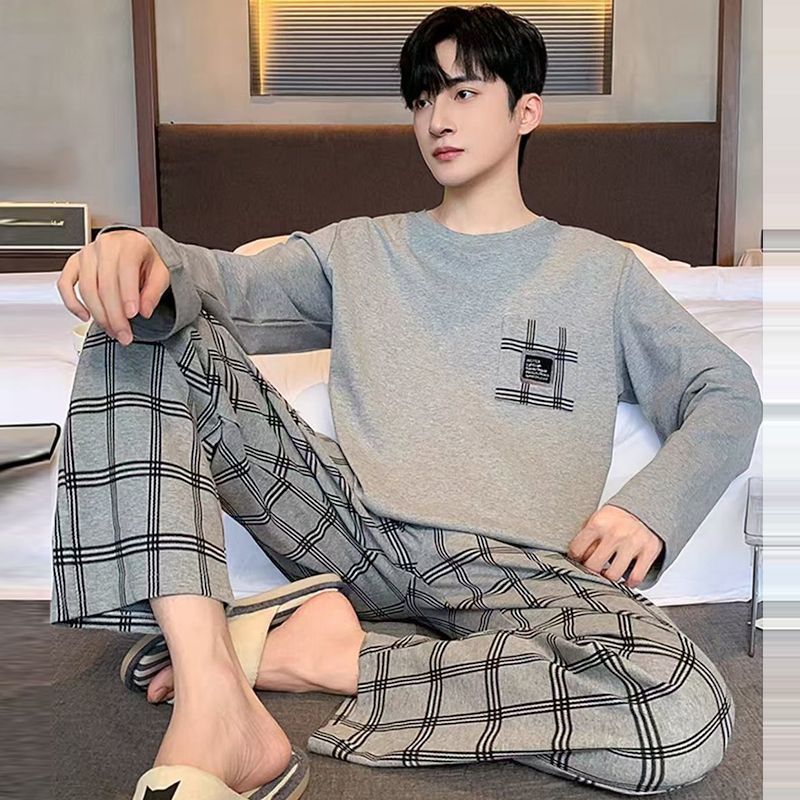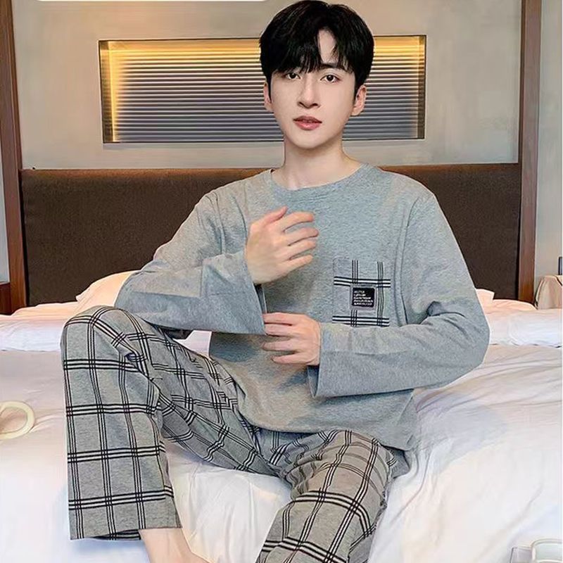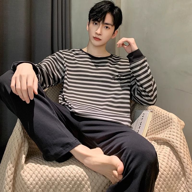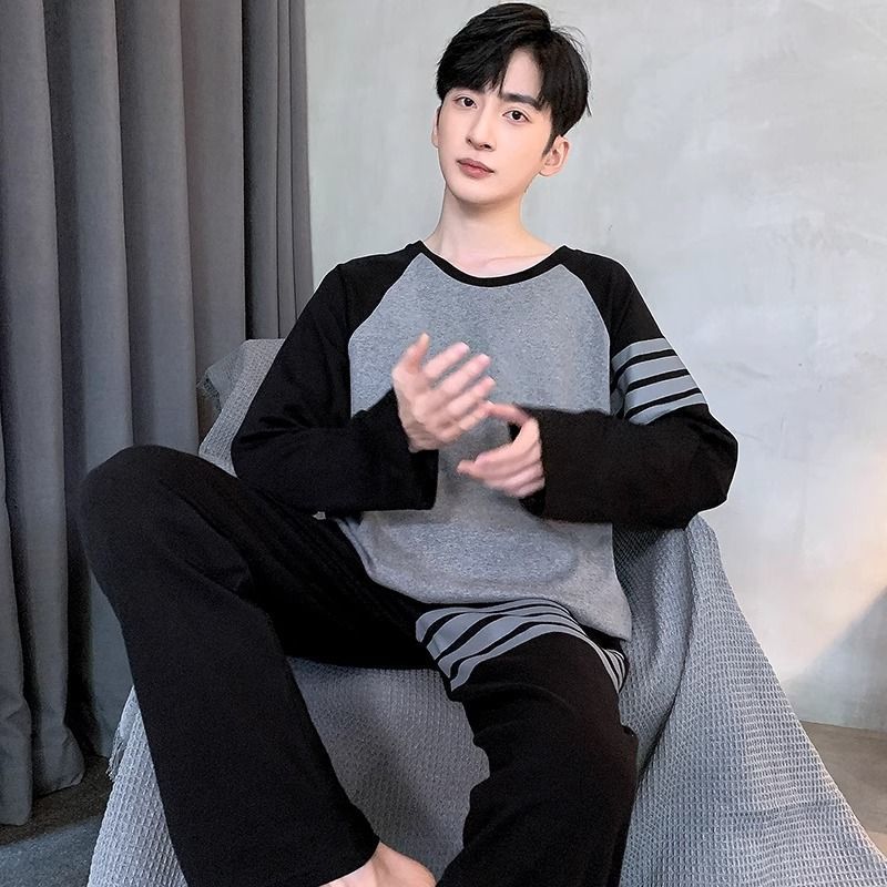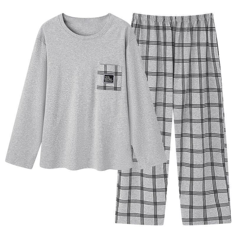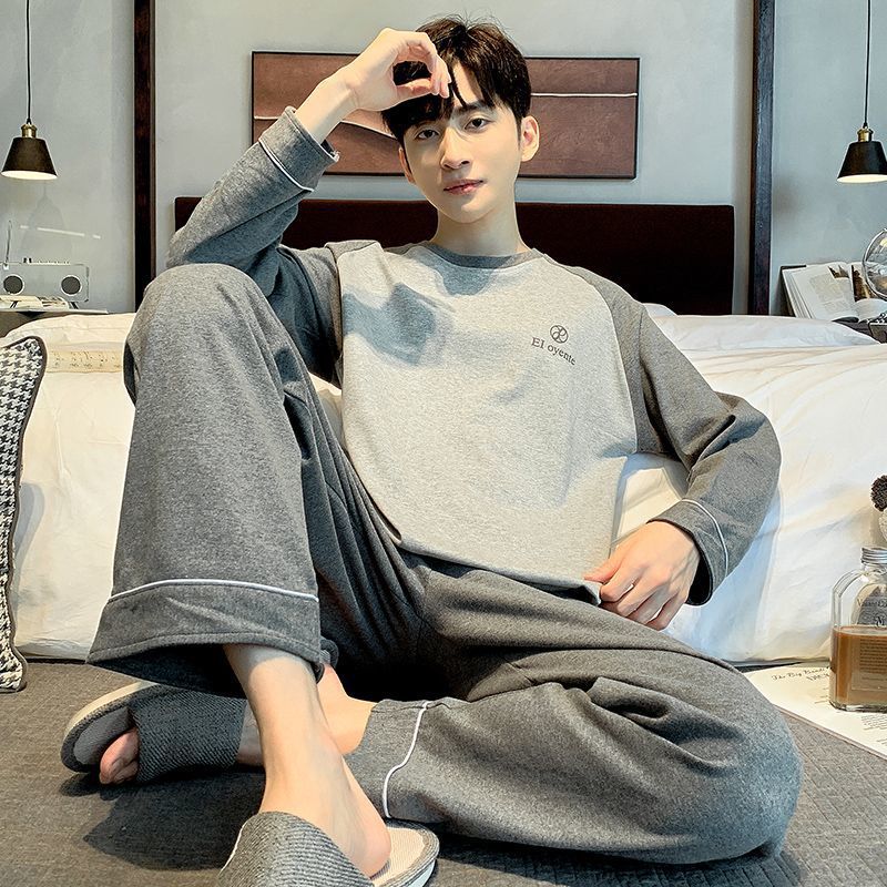 양면면 남성 고급 잠옷 봄 · 가을 긴팔 아웃웨어 느슨한 플러스 사이즈 청소년 홈 의류 세트