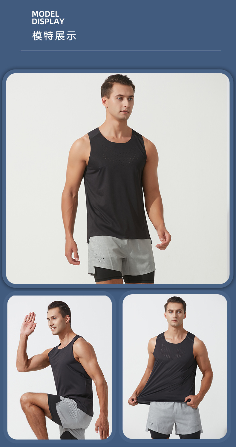 ⇞ 여름용 가볍고 얇은 민소매 속건 레이싱 마라톤 조끼, 야외 스포츠 피트니스 근육질 남성용 레이싱 조끼스토어 가기