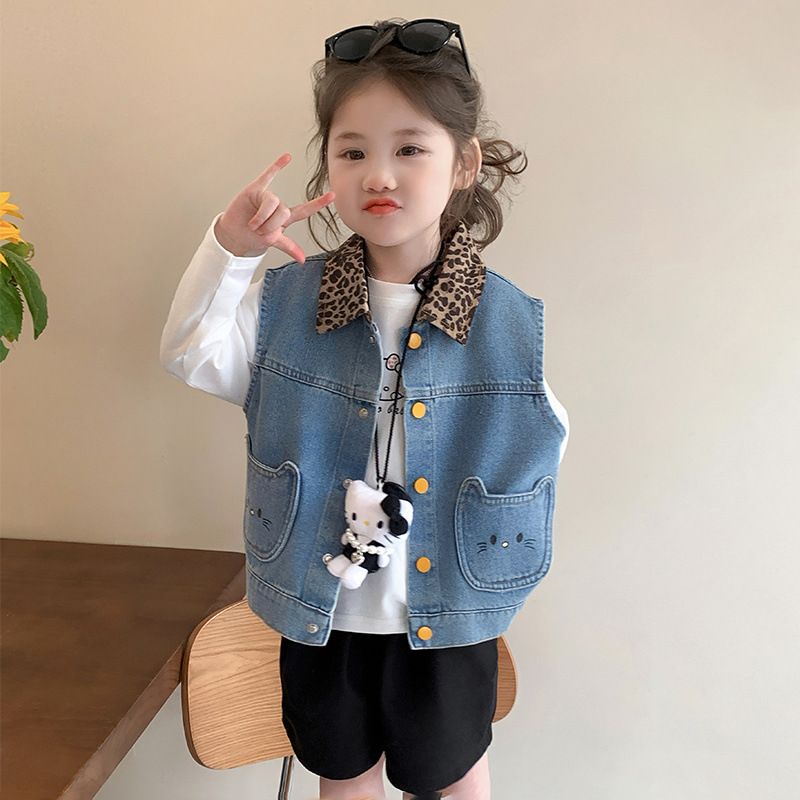 소녀의 데님 조끼 봄과 가을 2025 새로운 어린이 조끼 재킷 서양식 아기 소녀의 봄 조끼 외부 착용스토어 가기