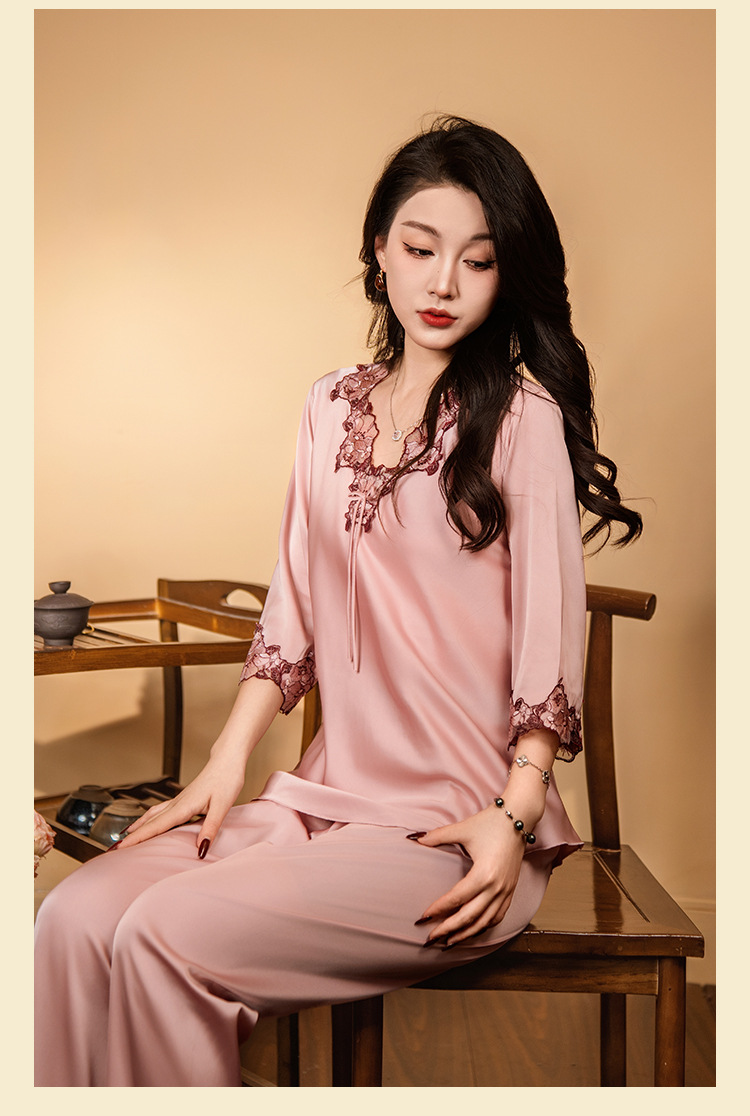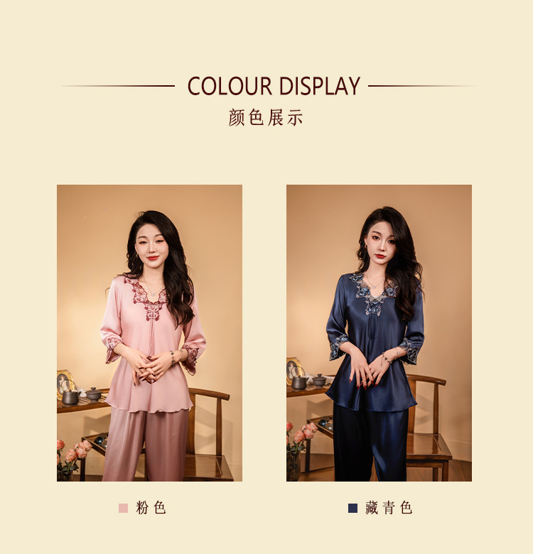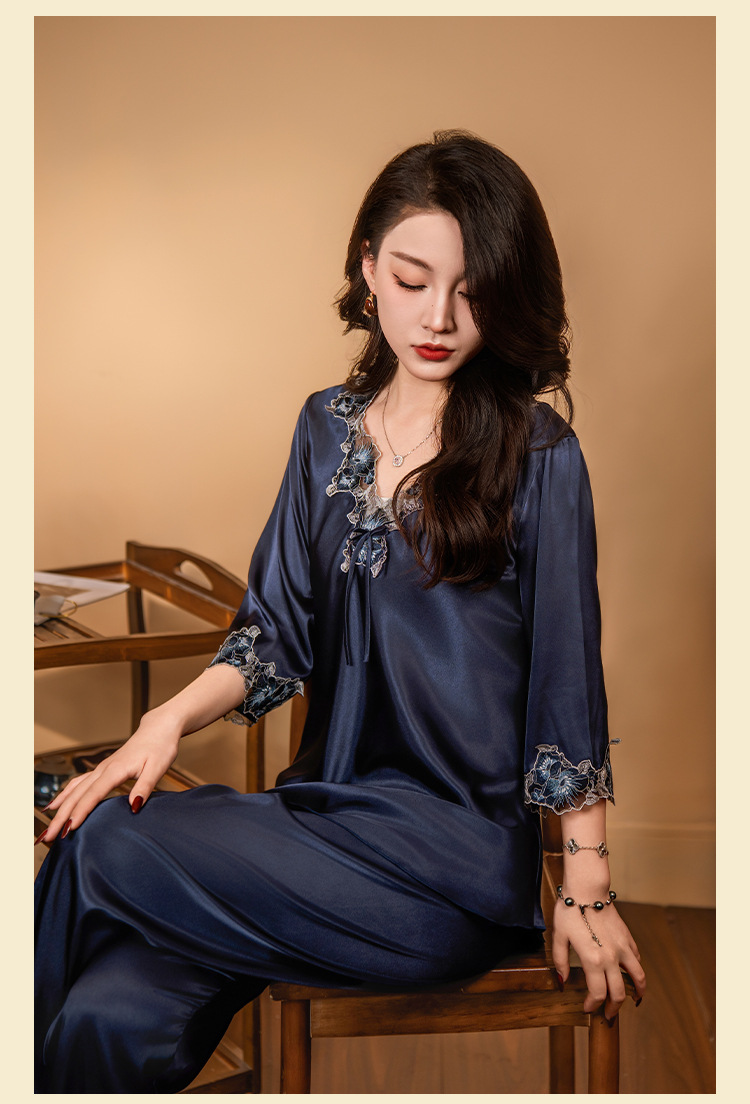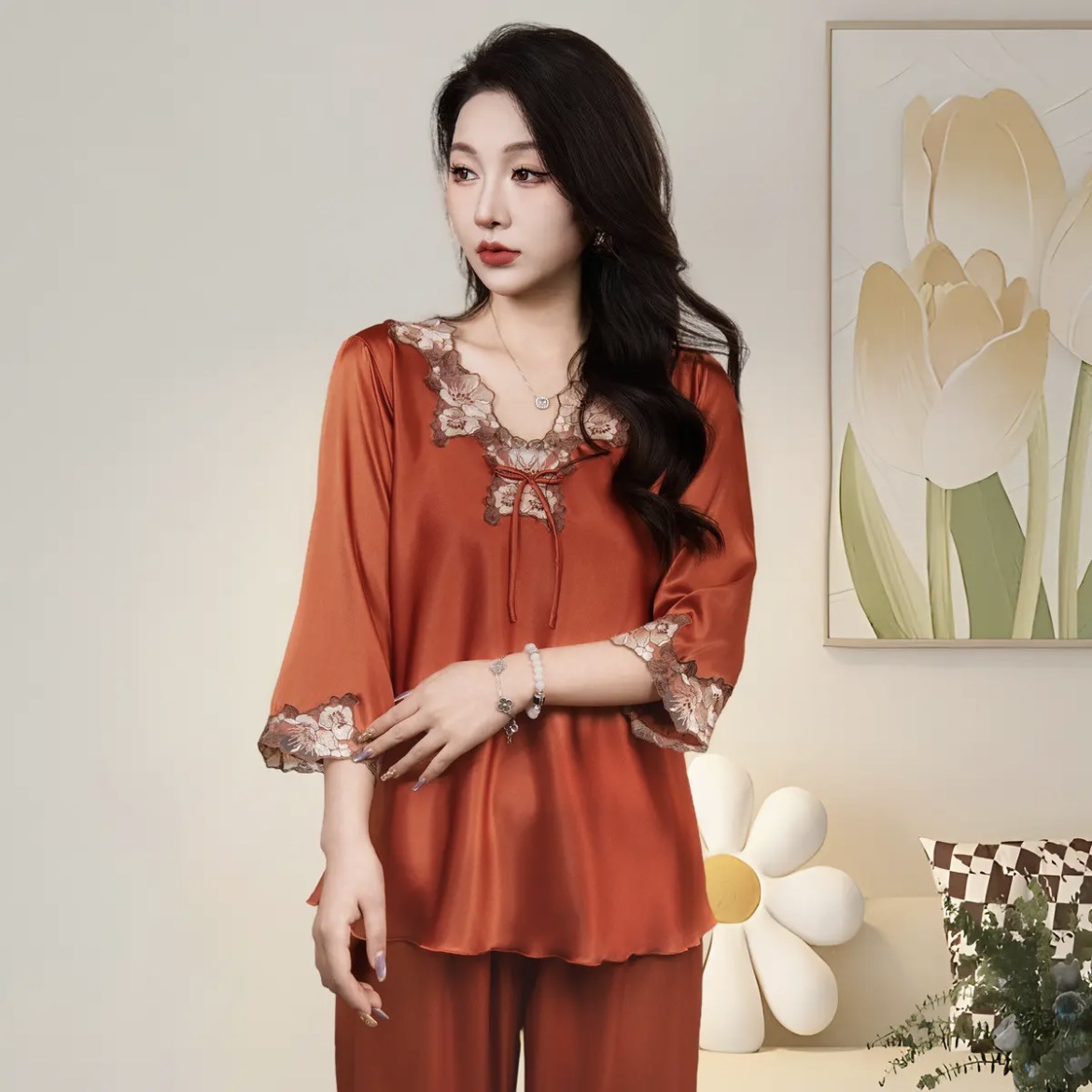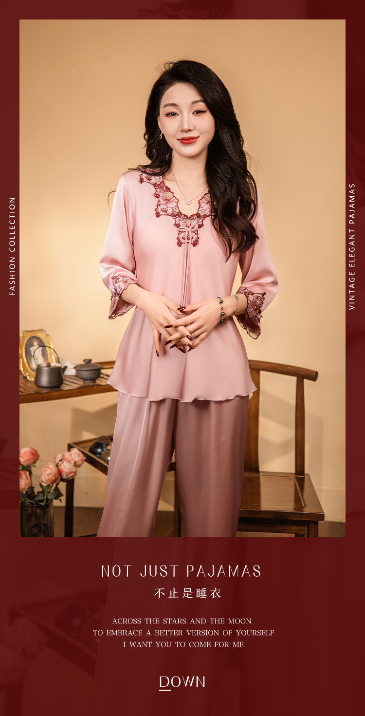상하이 스토리 잠옷 여성의 봄과 가을 2025 새로운 아이스 실크 섹시한 세트 플러스 사이즈 실크 홈 의류 빈티지스토어 가기