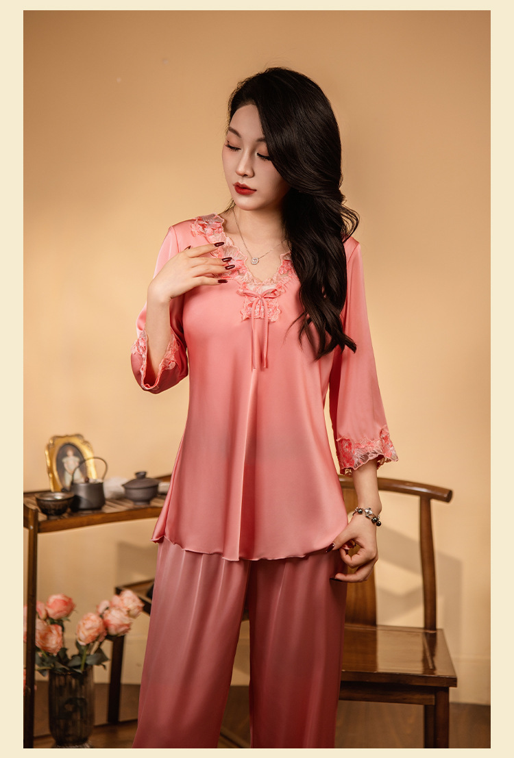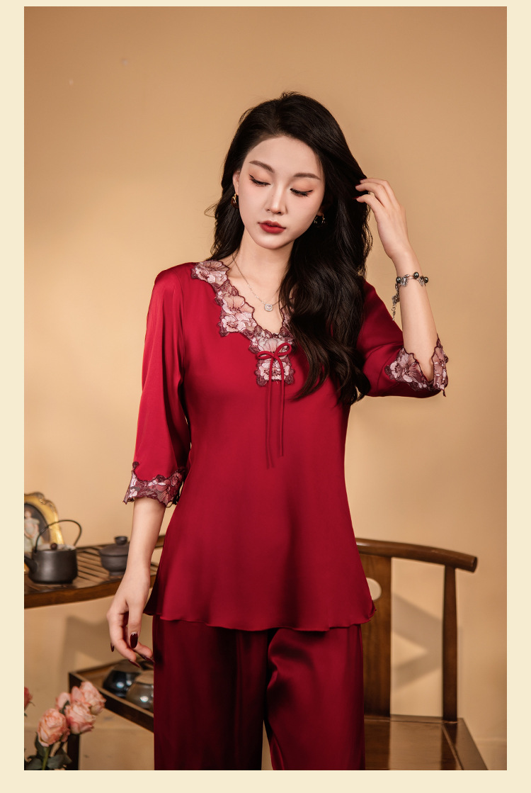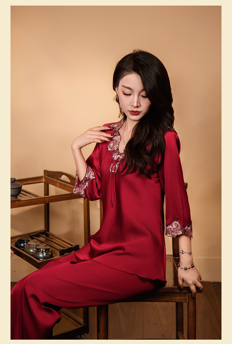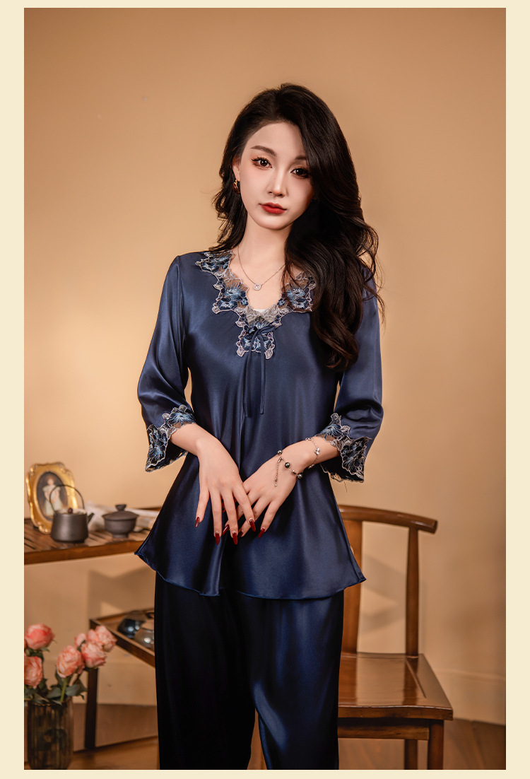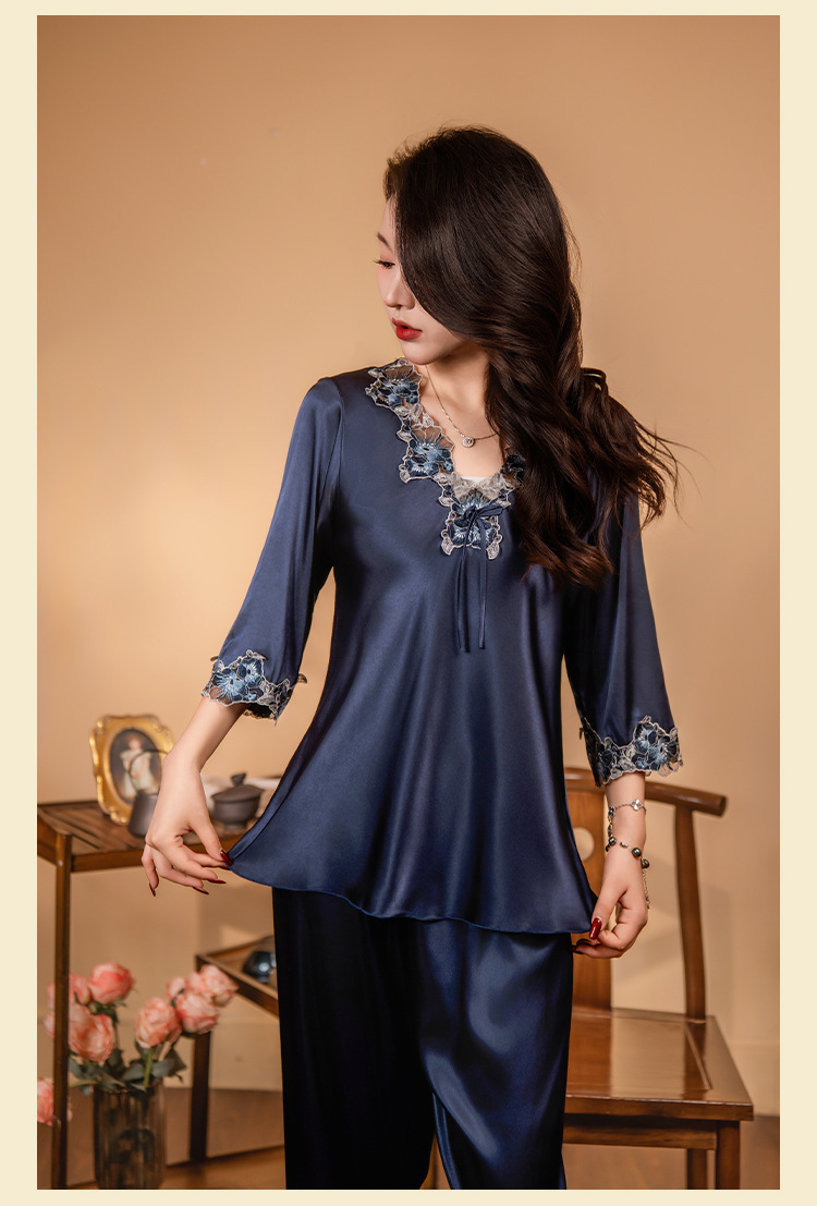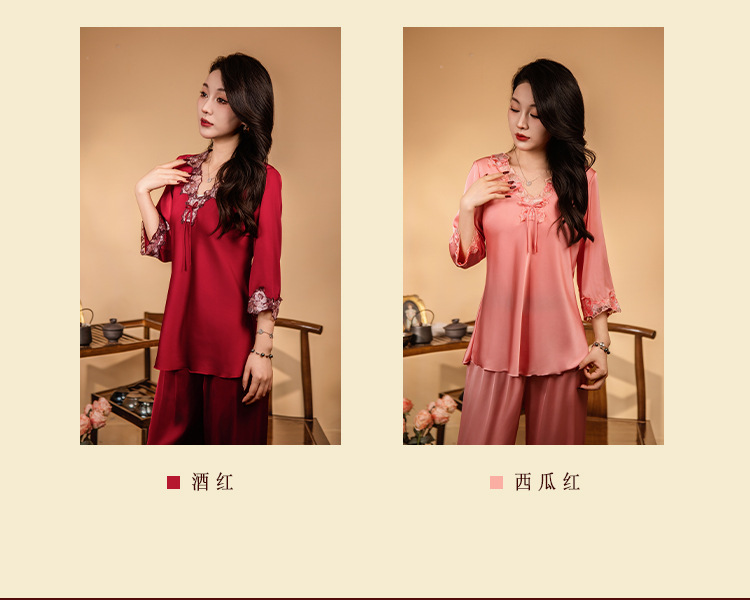 상하이 스토리 잠옷 여성의 봄과 가을 2025 새로운 아이스 실크 섹시한 세트 플러스 사이즈 실크 홈 의류 빈티지스토어 가기