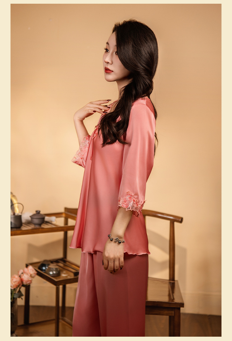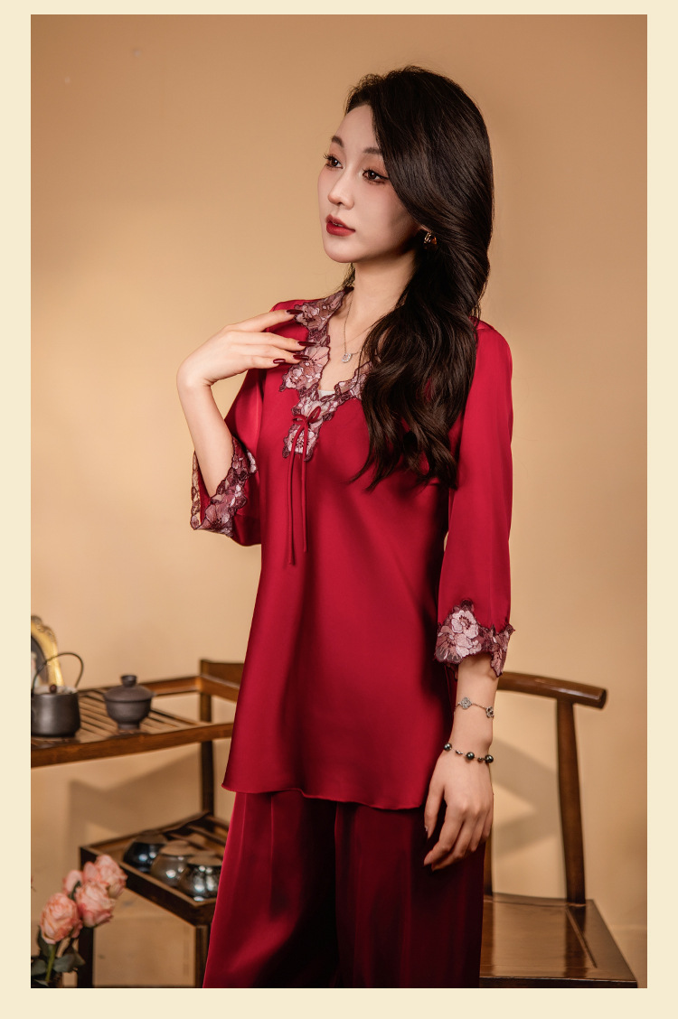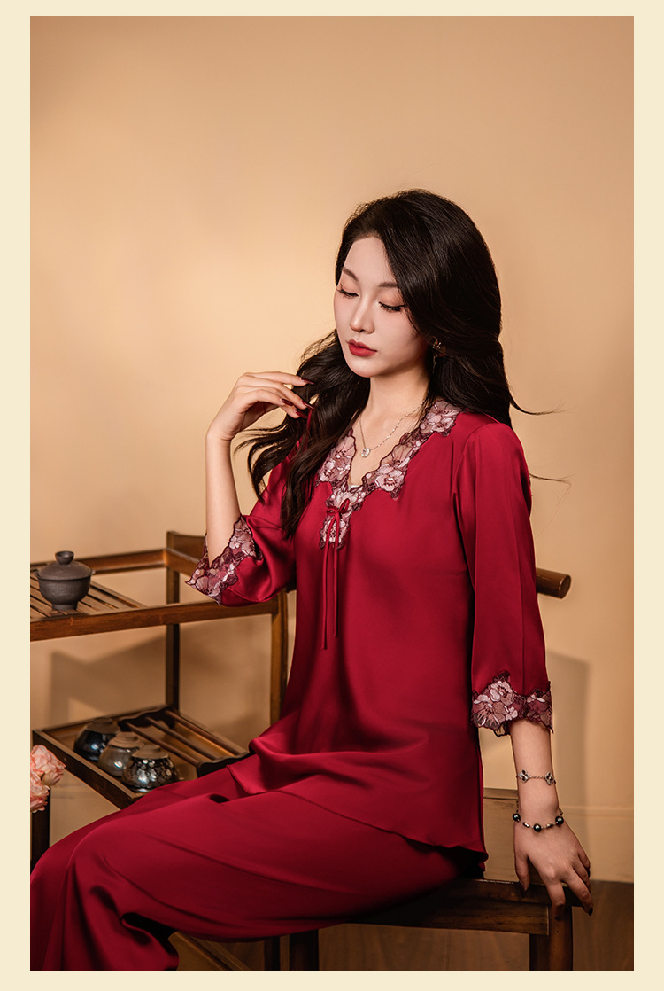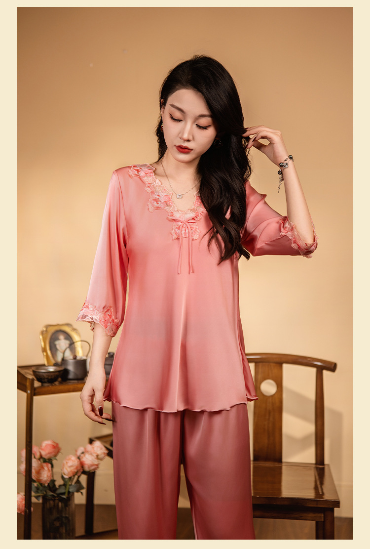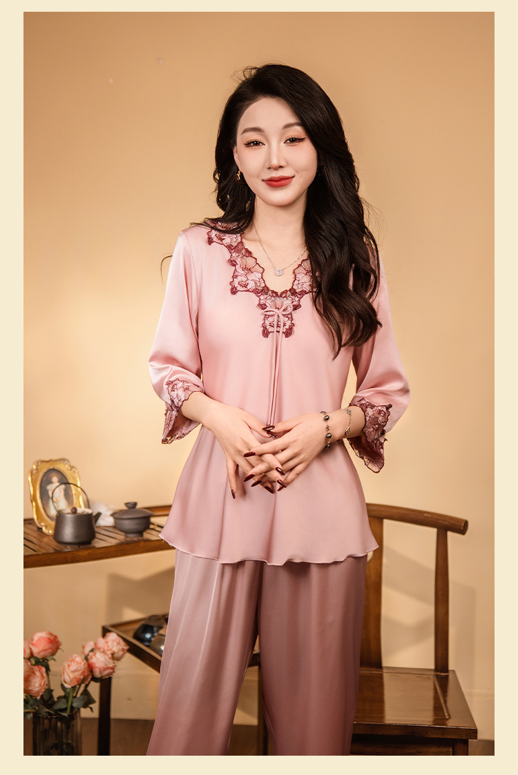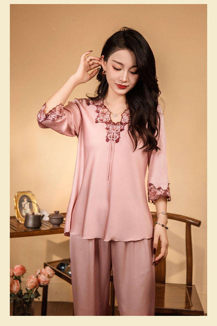 상하이 스토리 잠옷 여성의 봄과 가을 2025 새로운 아이스 실크 섹시한 세트 플러스 사이즈 실크 홈 의류 빈티지스토어 가기
