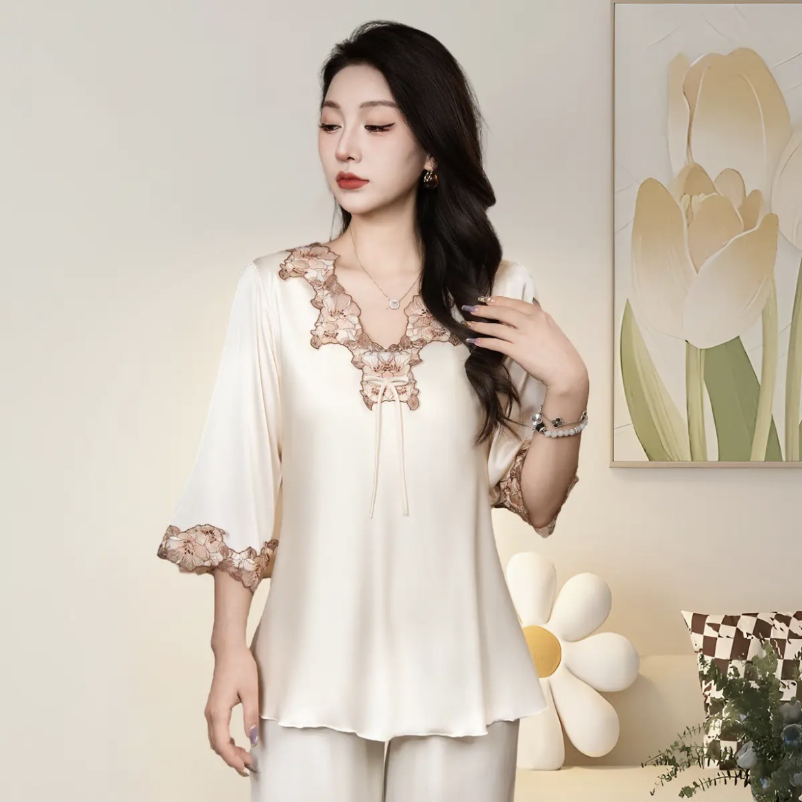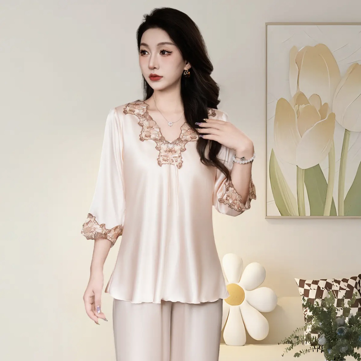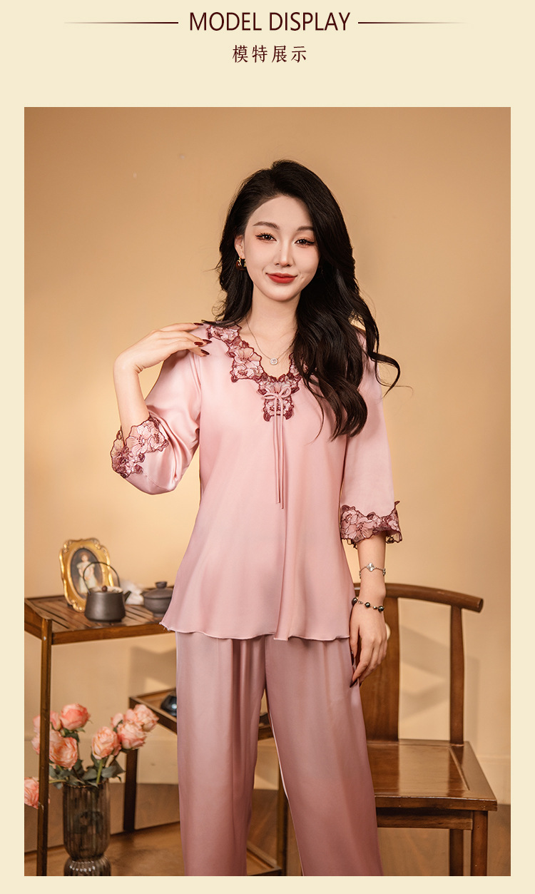 상하이 스토리 잠옷 여성의 봄과 가을 2025 새로운 아이스 실크 섹시한 세트 플러스 사이즈 실크 홈 의류 빈티지