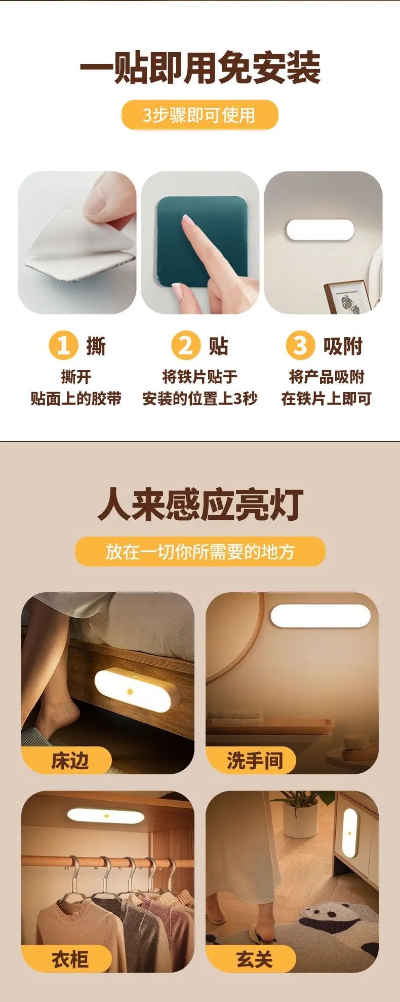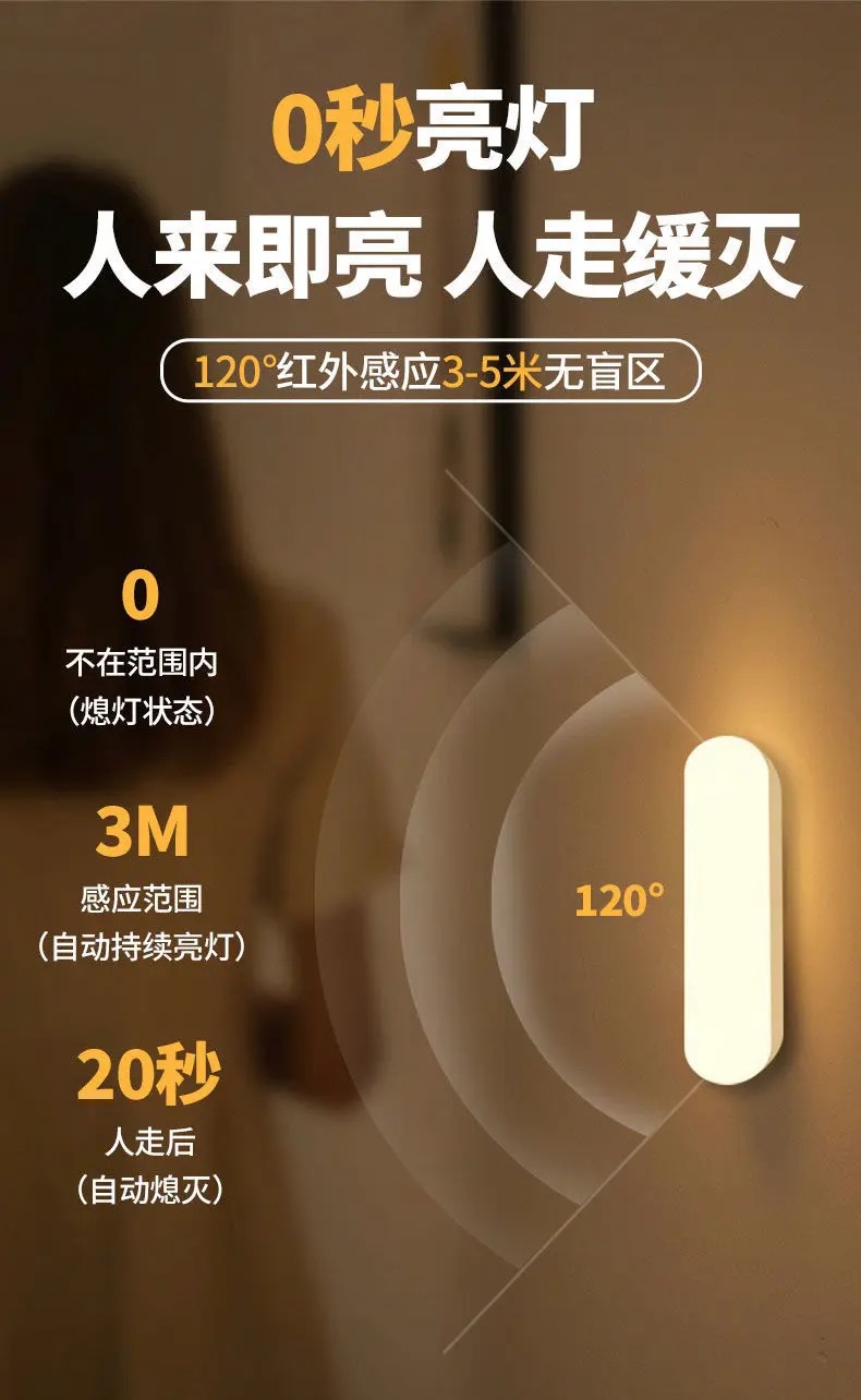 인체 감지등 복도 계단 야간 옷장 캐비닛 충전식 야간등 스마트 센서등 조광 가능