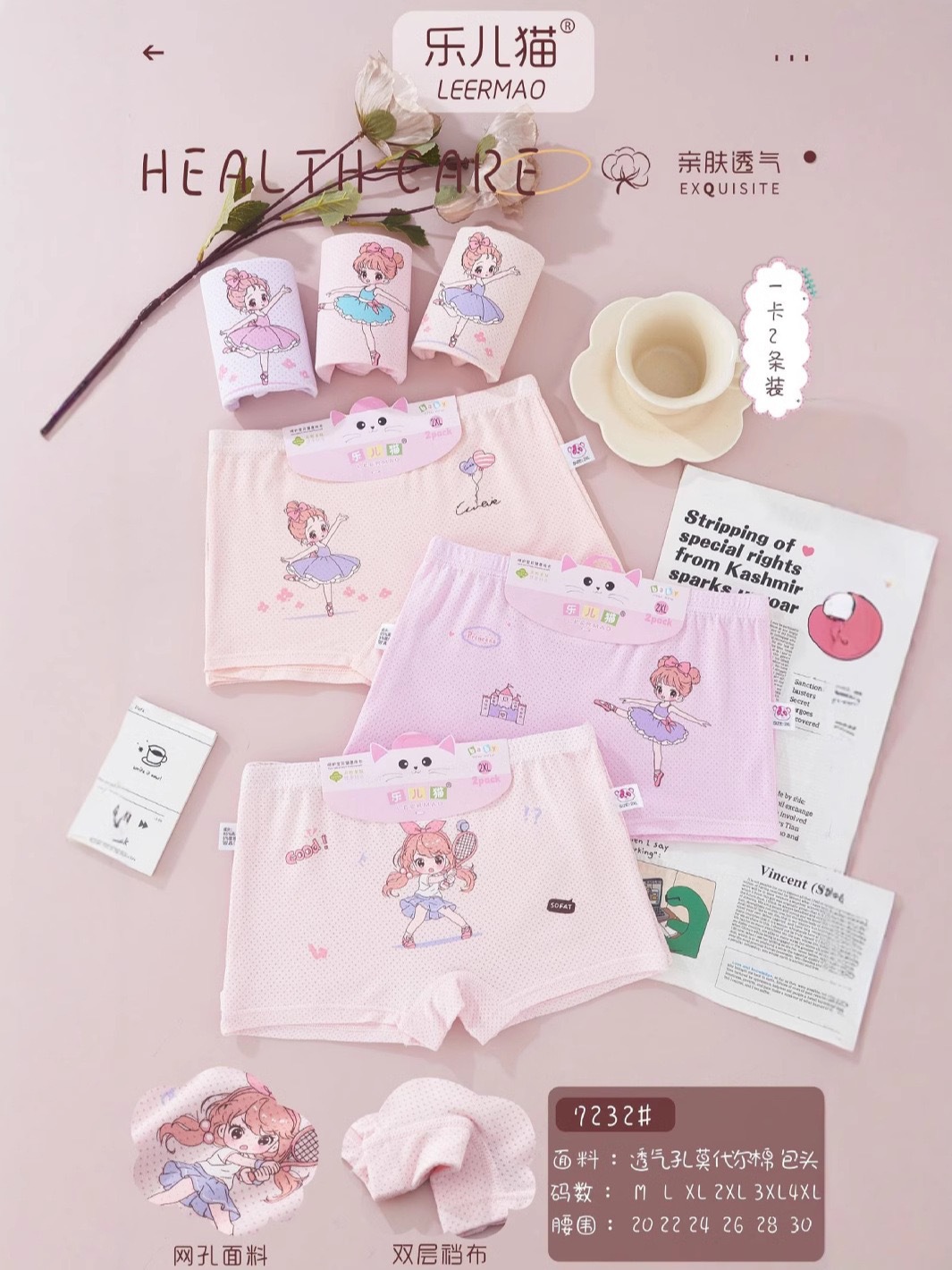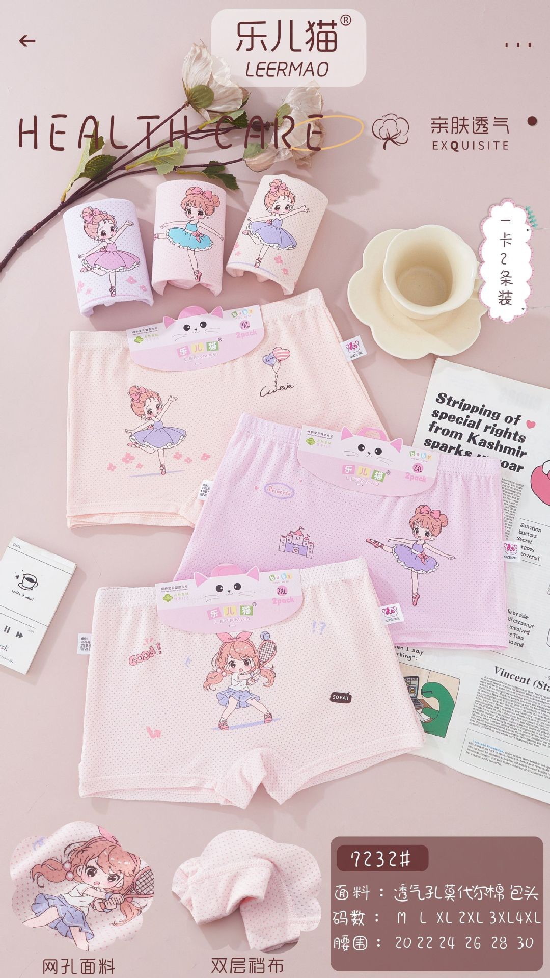 Leer 고양이 소녀 어린이 속옷 모달 통기성 피부 친화적 인 편안한 부드러운 만화 귀여운 인쇄 복서 바지스토어 가기