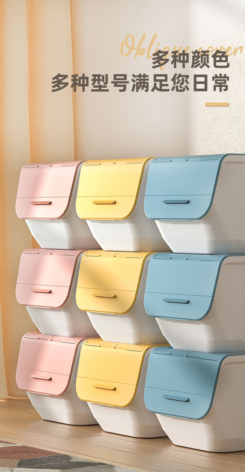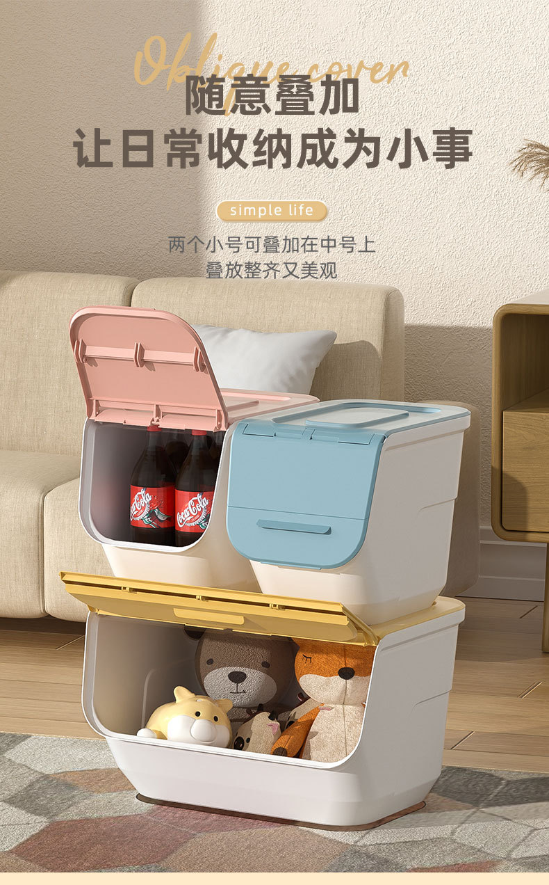 비스듬한 입 어린이 장난감 저장 상자 가정용 두꺼운 플라스틱 스낵 보관 상자 다기능 저장 상자를 구성