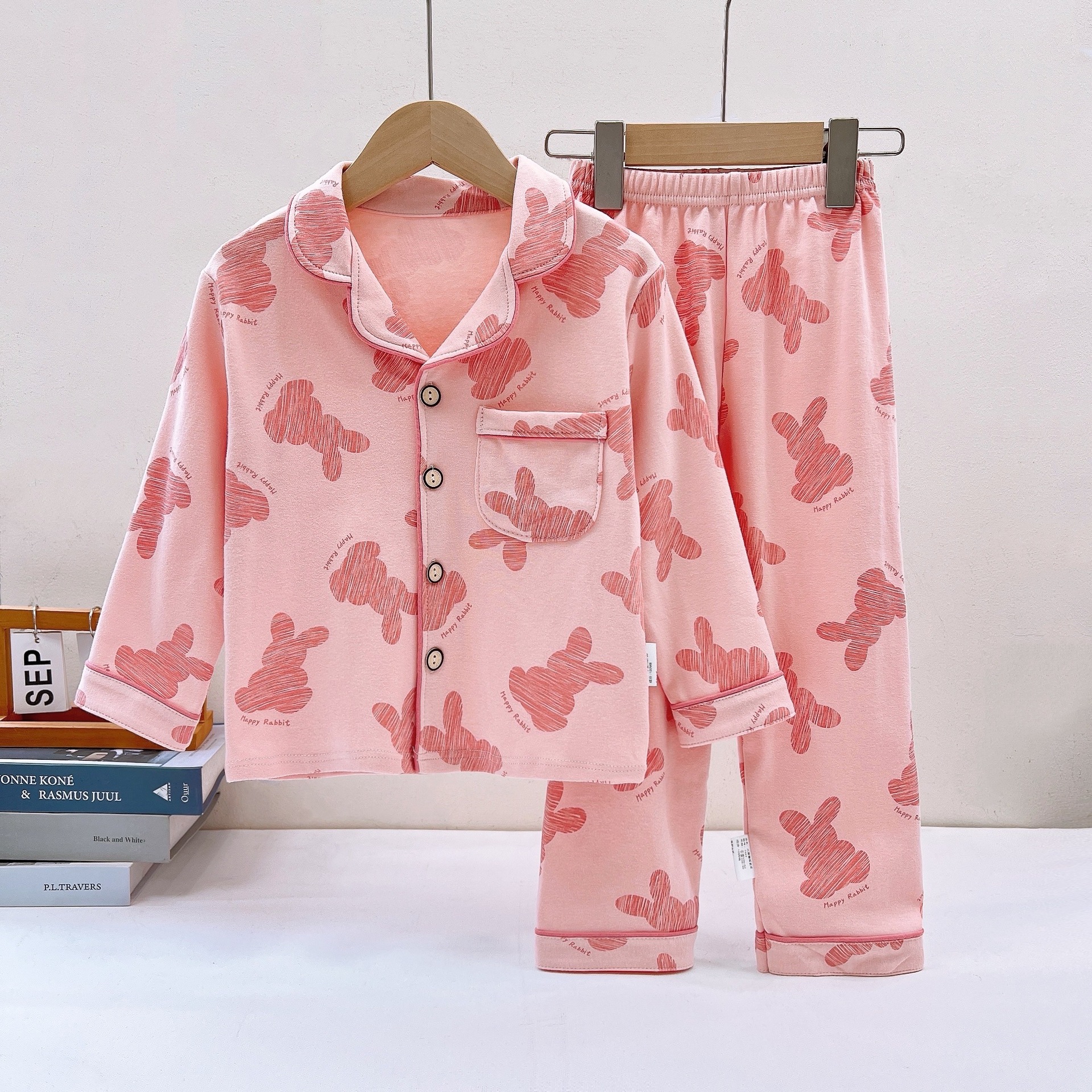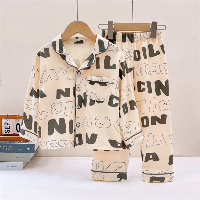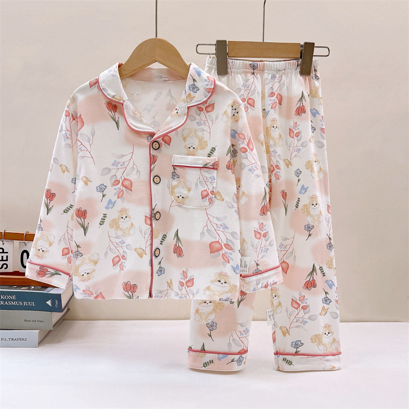 순면 라펠 홈웨어 세트 2026 가을 겨울 신상 A급 프린트 상의 아동 한국 스타일 캐주얼 홈웨어