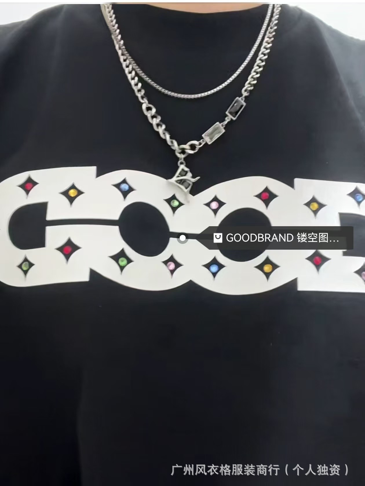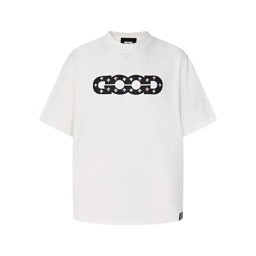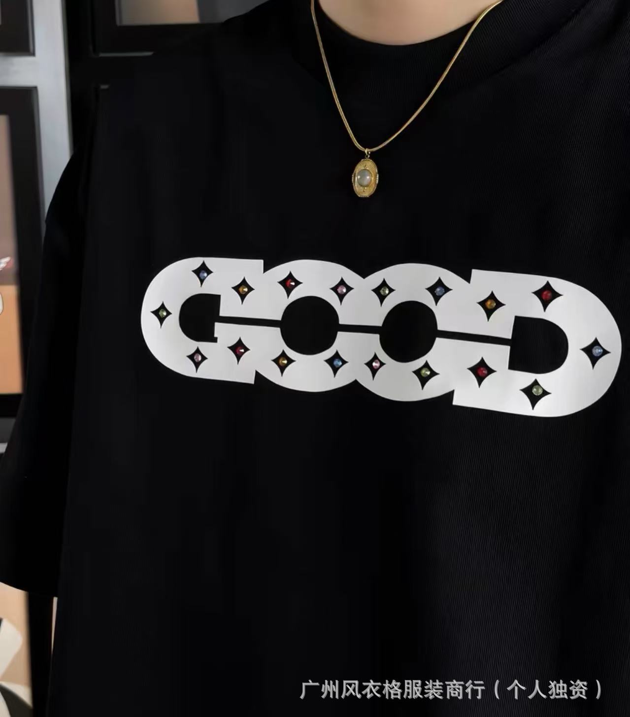 24 여름 Guochao Zhu Zhixin 같은 스타일 GOODBARAND 할로우 컬러 다이아몬드 폼 인쇄 남성과 여성의 티셔츠 짧은 소매스토어 가기