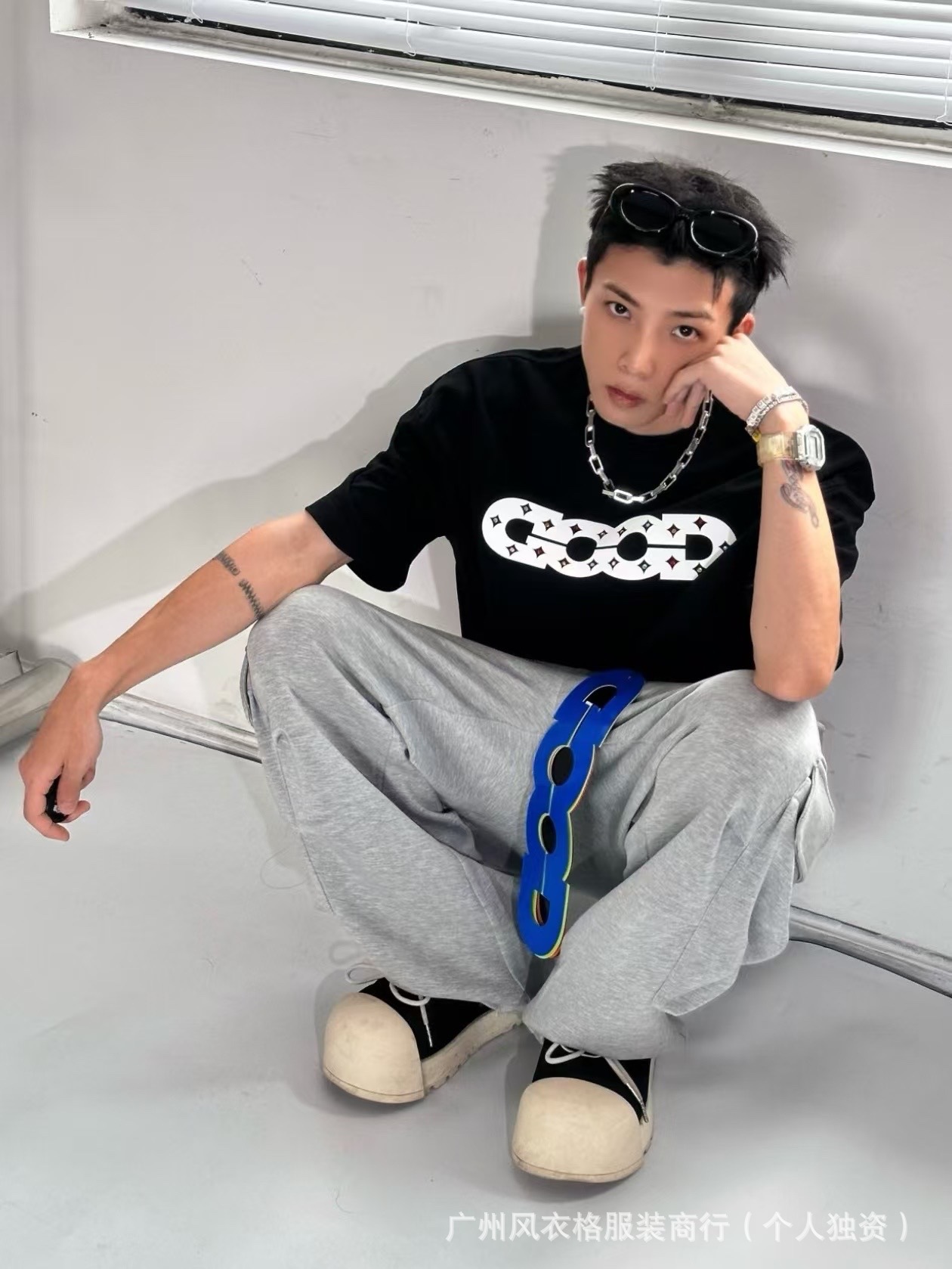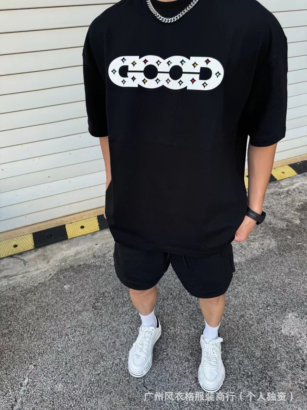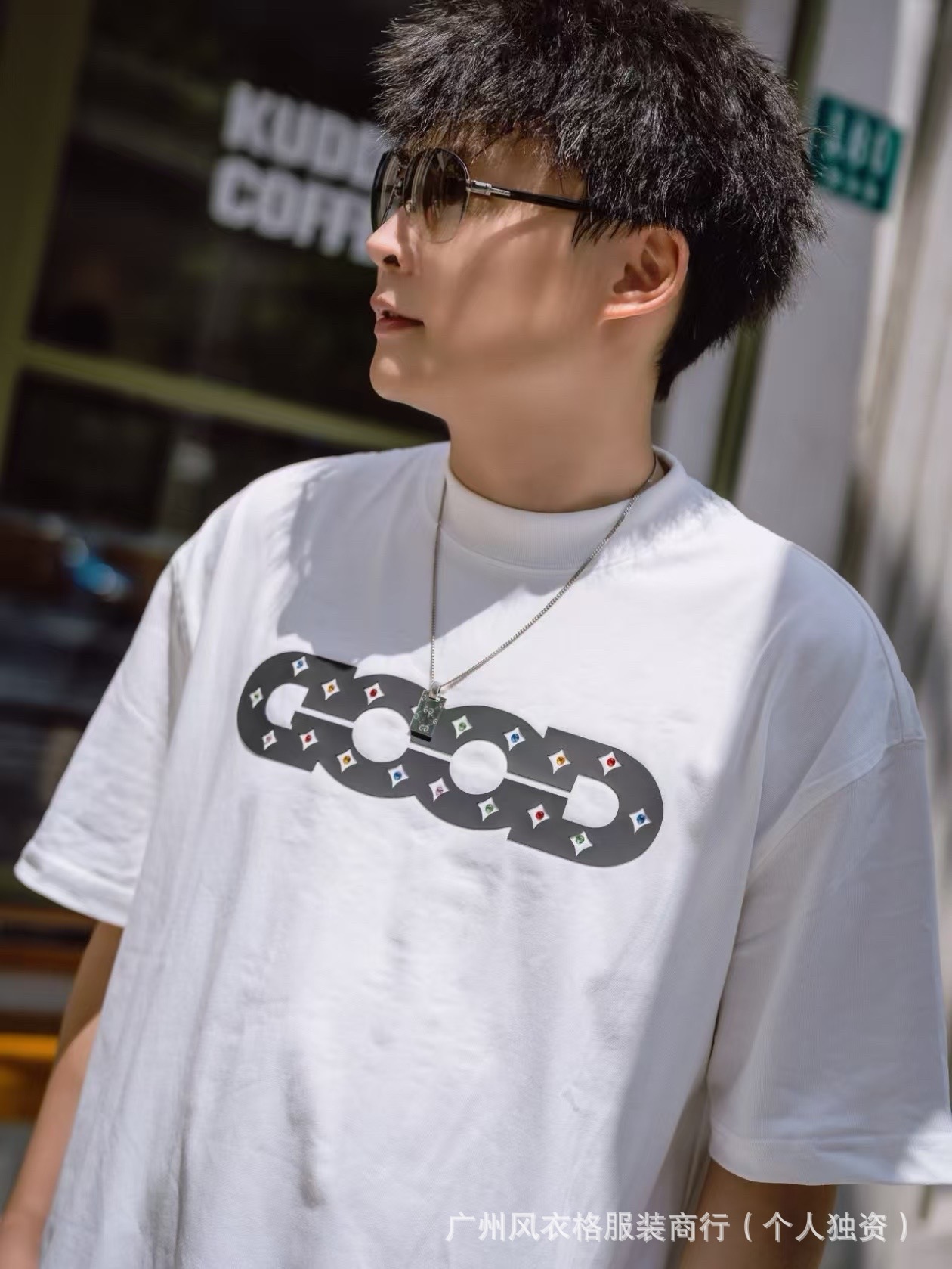 24 여름 Guochao Zhu Zhixin 같은 스타일 GOODBARAND 할로우 컬러 다이아몬드 폼 인쇄 남성과 여성의 티셔츠 짧은 소매