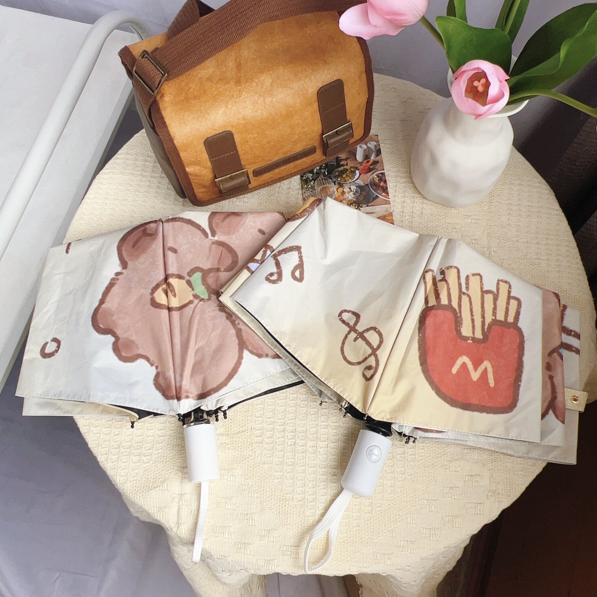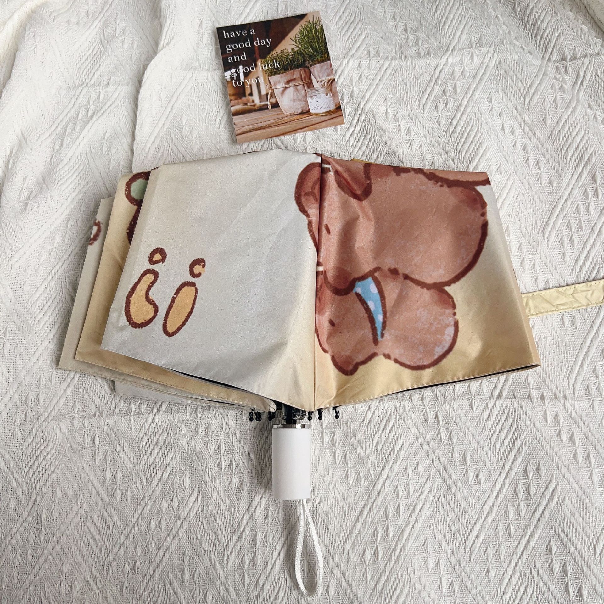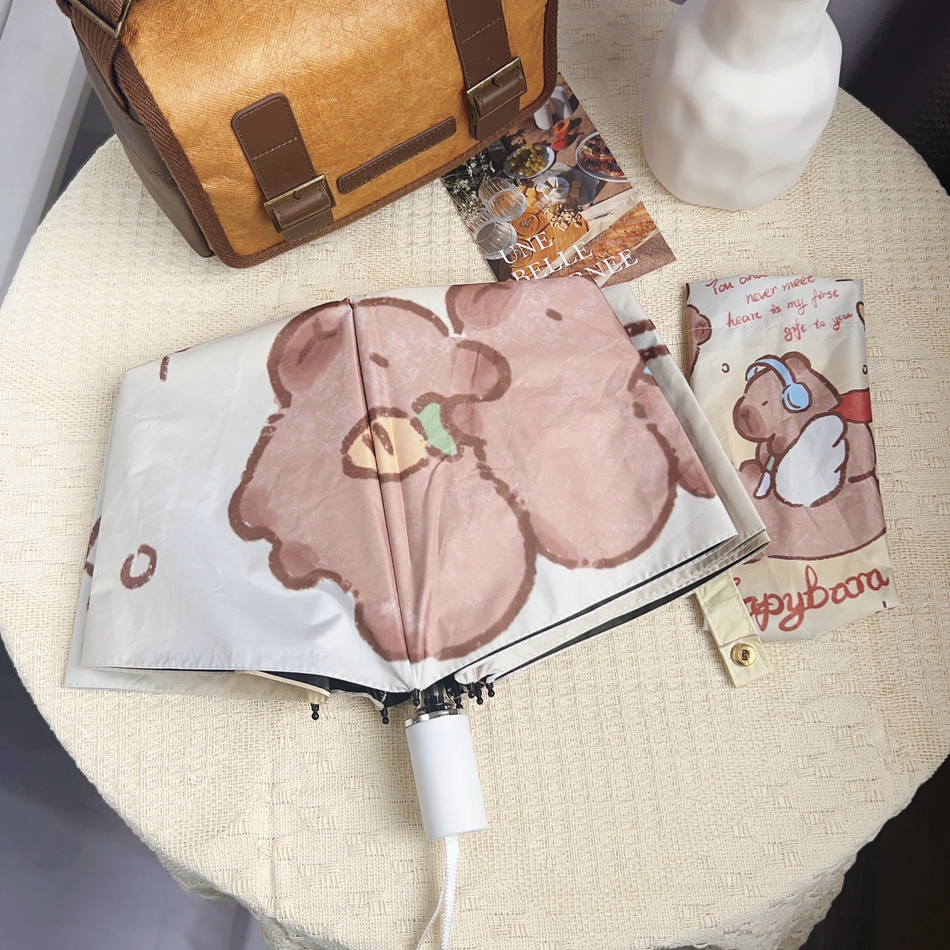 Capibala 자동 우산 Ins 틈새 만화 Capybara Sunny와 비오는 이중 사용 바람 저항하는 내구성있는 양산 여학생스토어 가기