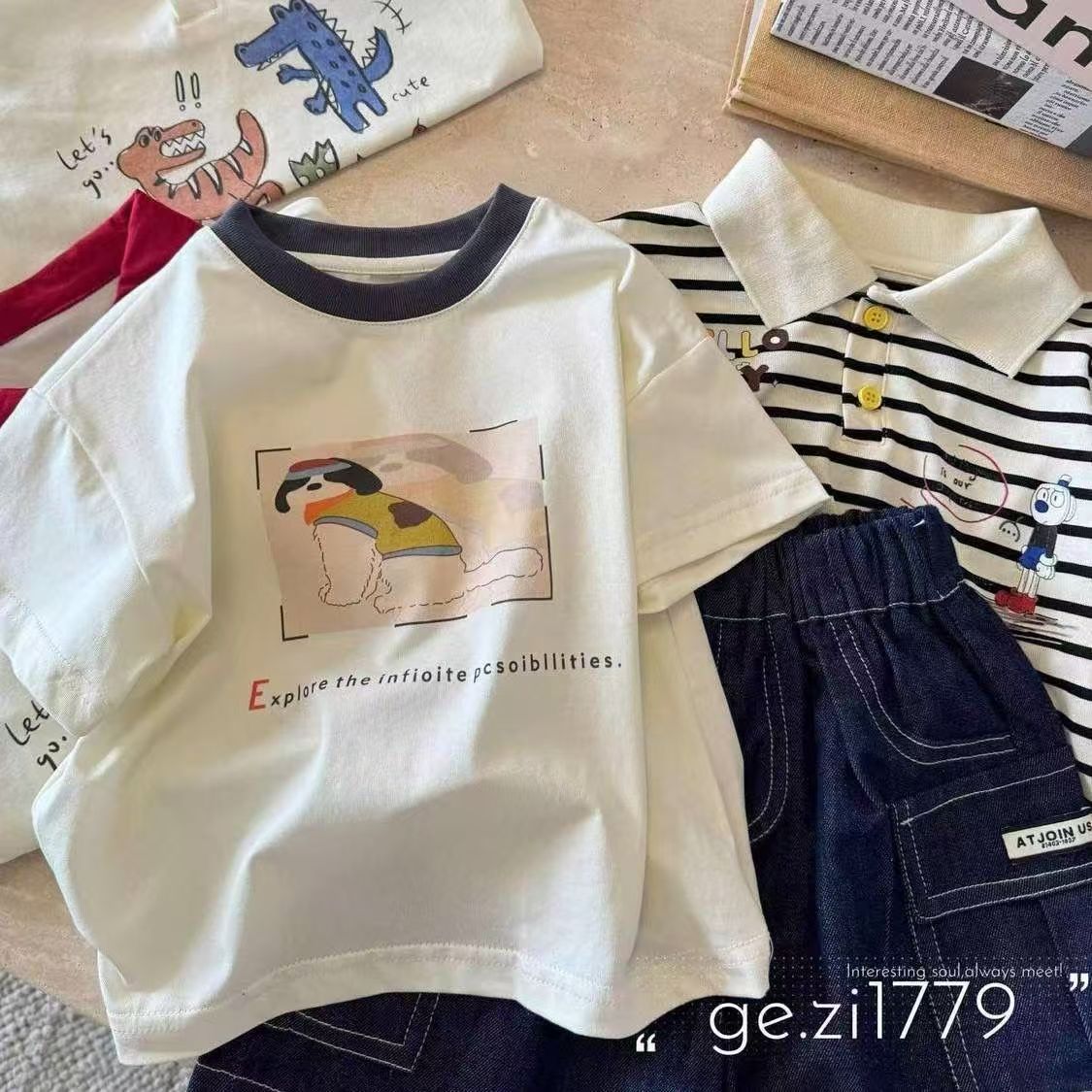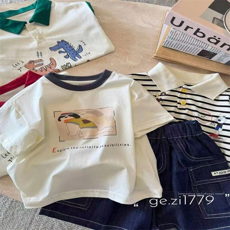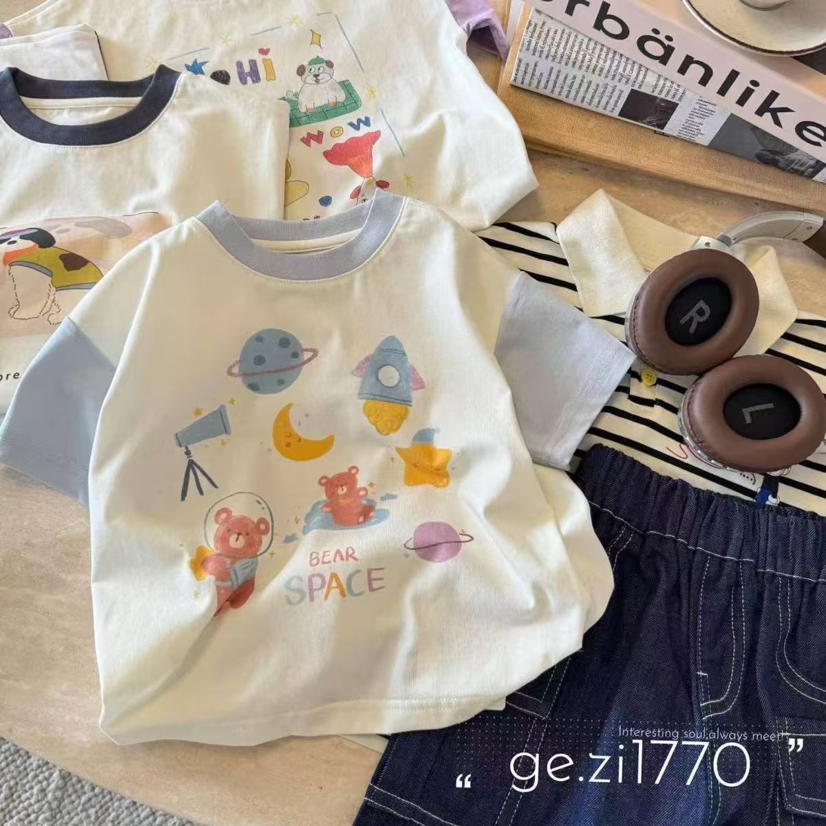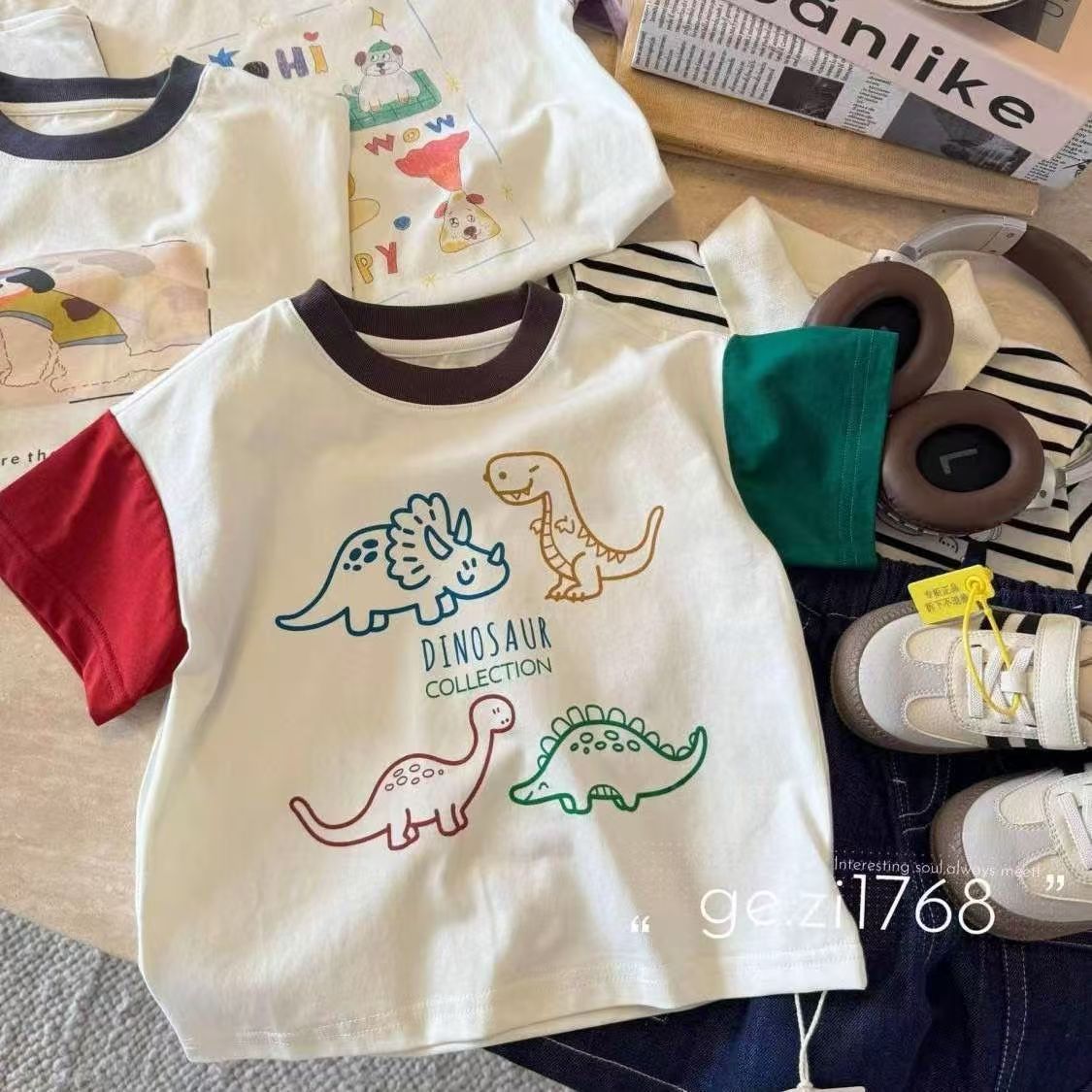 어린이 새 소년과 소녀 여름 만화 컬러 매칭 아기의 반소매 코튼 서양식 티셔츠 반소매 어린이 탑스토어 가기