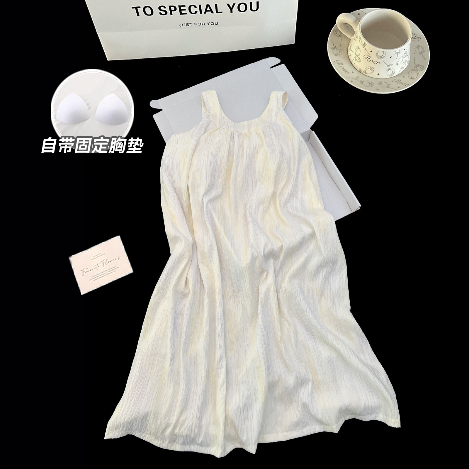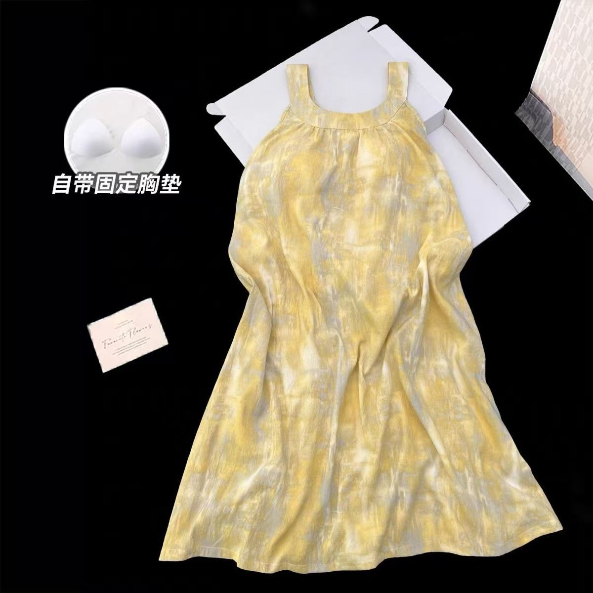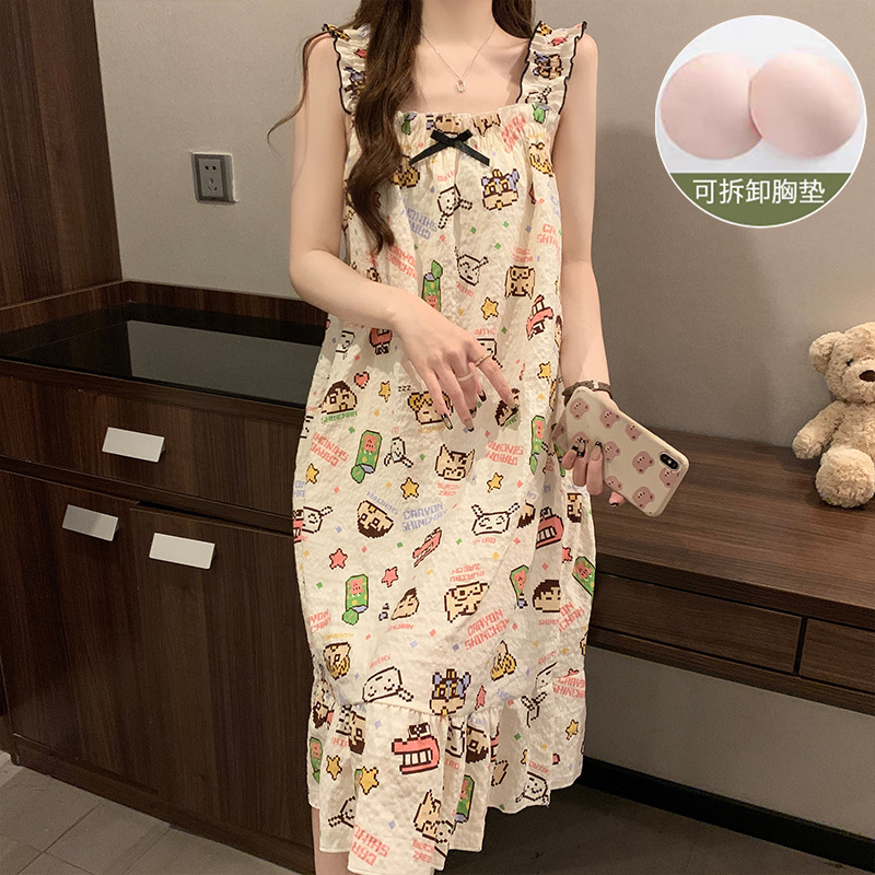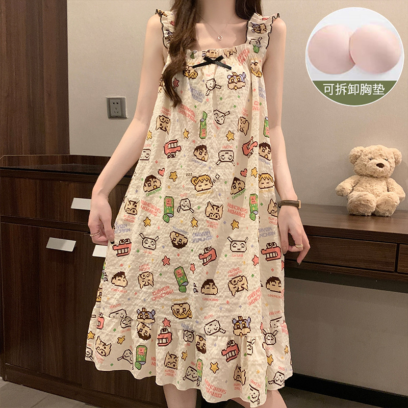 여자 여름 가슴 패드와 얇은 민소매 나이트 드레스 일본 스타일 귀여운 달콤한 소녀의 슬링 중간 길이 원피스 홈 옷스토어 가기