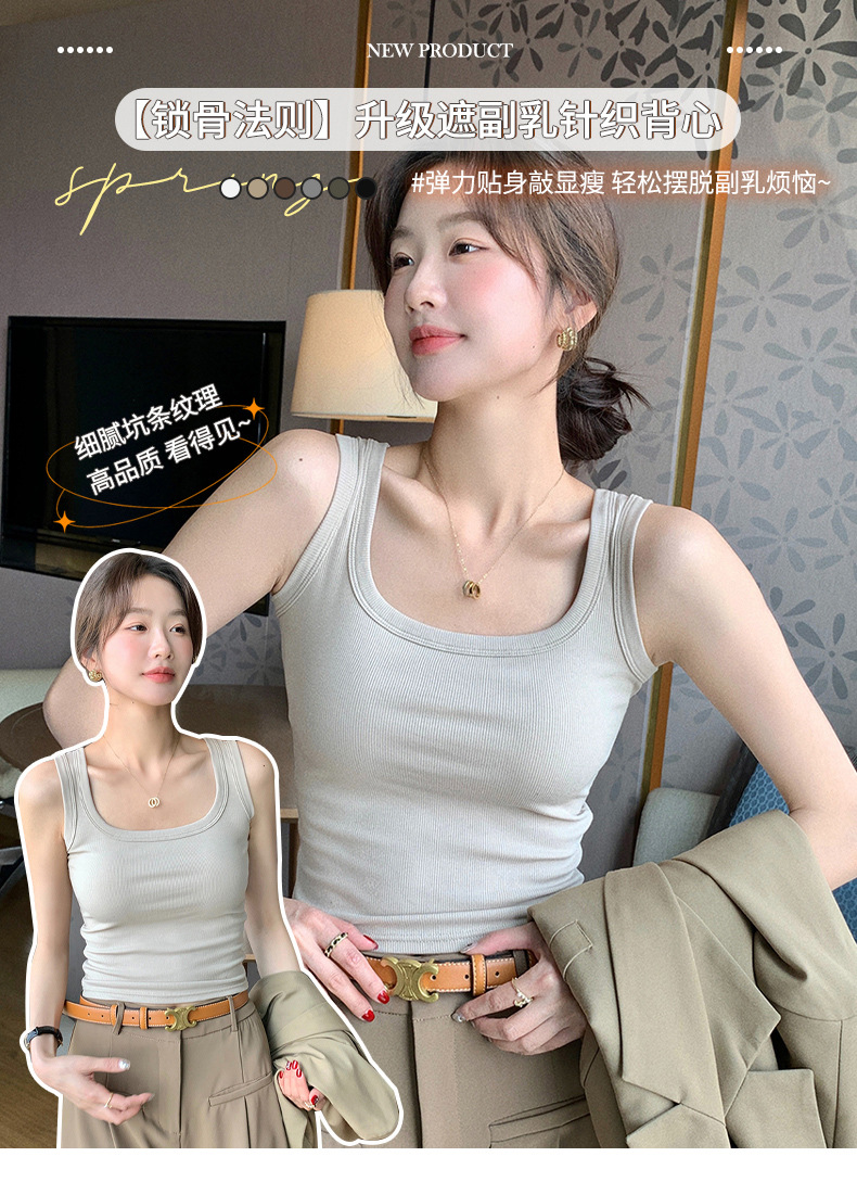 손 세 조각 ~ 2025 여름 조커 조끼 어깨 U 칼라 커버 액세서리 가슴 스레드 넓은 어깨 끈베이스 캐미솔