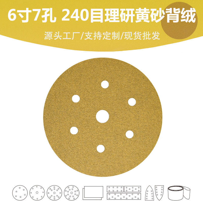 6 인치 7 홀 코팅 노란색 모래 P240 메쉬 차단 방지 AP33 연구 브러시 시트 연마 품질 사포