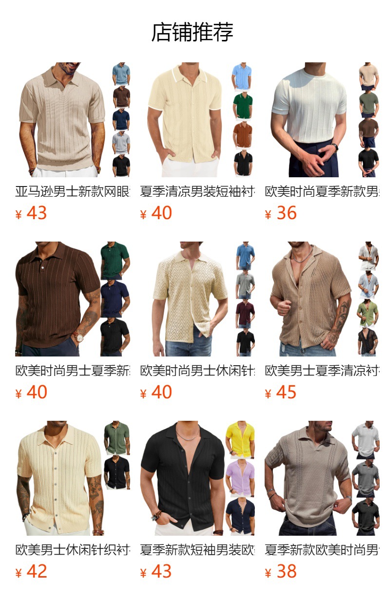 아마존 니트 반팔 남성 최고 여름 중공 통기성 니트 셔츠 라운드 넥 반팔 단색 티셔츠 남성복스토어 가기