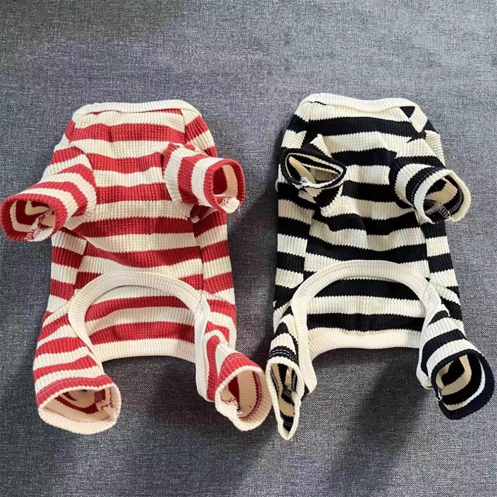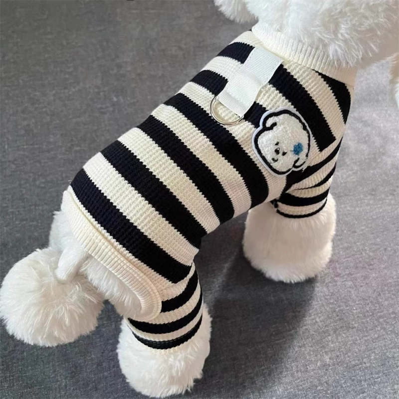 애완견 개 옷 가을과 겨울 견인 따뜻한 줄무늬 네 다리 안티 헤어 테디 베어 작은 강아지