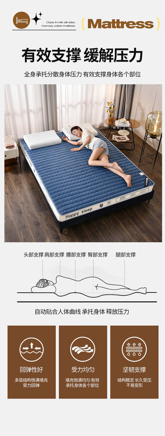 xKW 두꺼운 베이비 벨벳 메모리 안티 스트레스 면 매트리스 가정용 부드러운 쿠션 싱글 매트리스 학생 기숙사 특별 더블스토어 가기