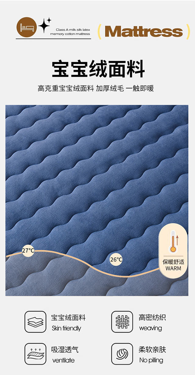 xKW 두꺼운 베이비 벨벳 메모리 안티 스트레스 면 매트리스 가정용 부드러운 쿠션 싱글 매트리스 학생 기숙사 특별 더블