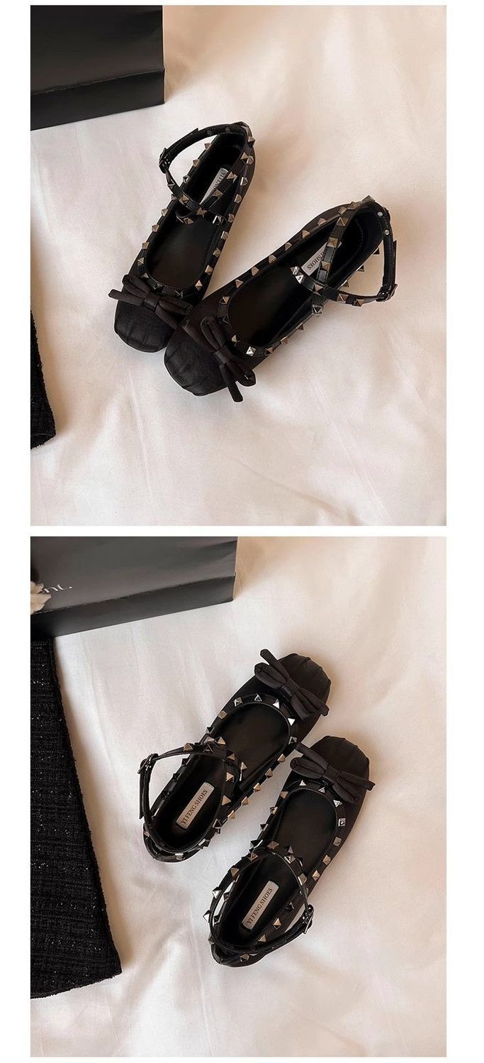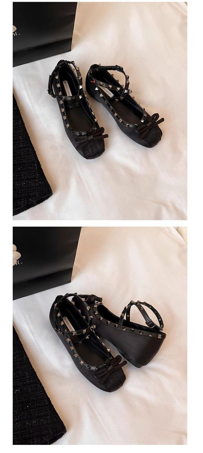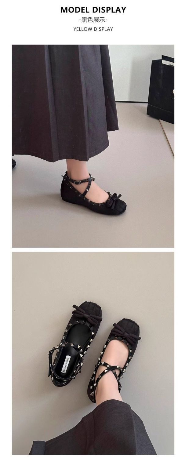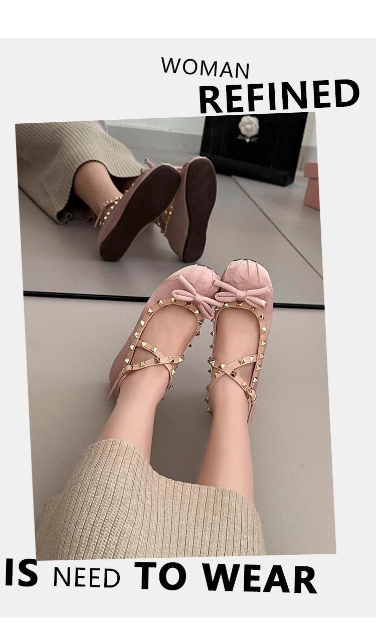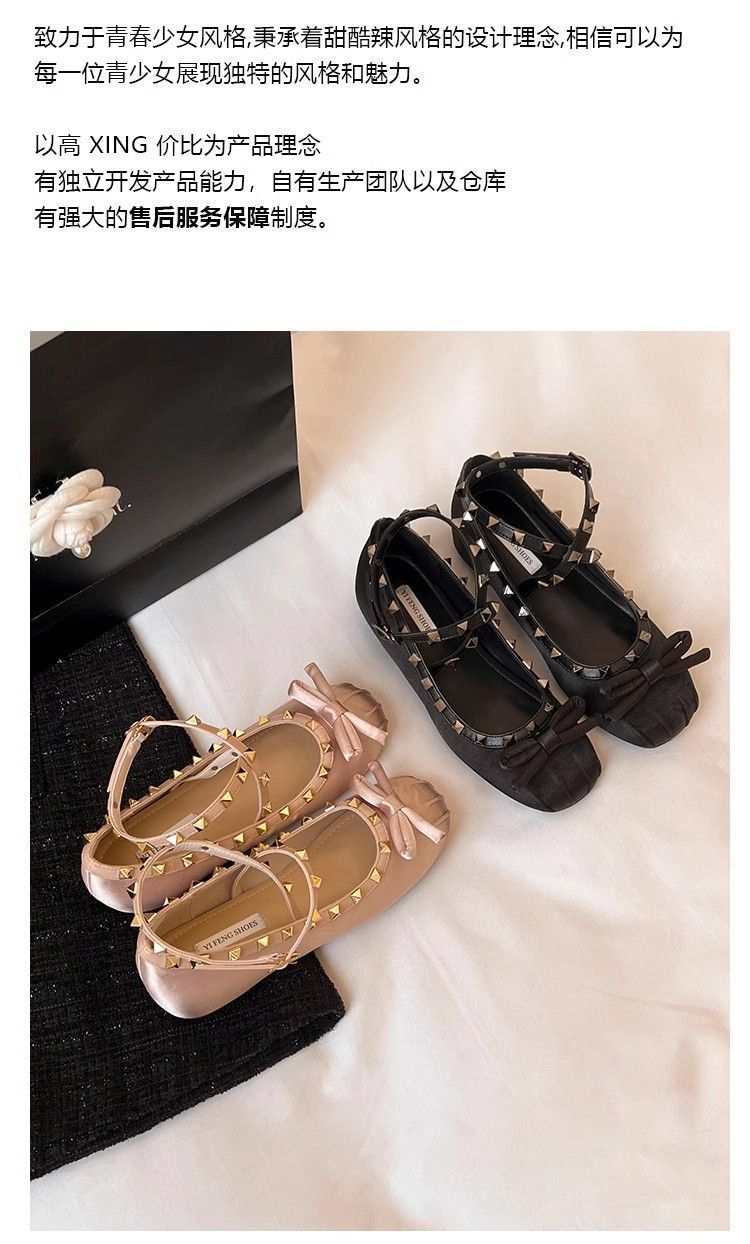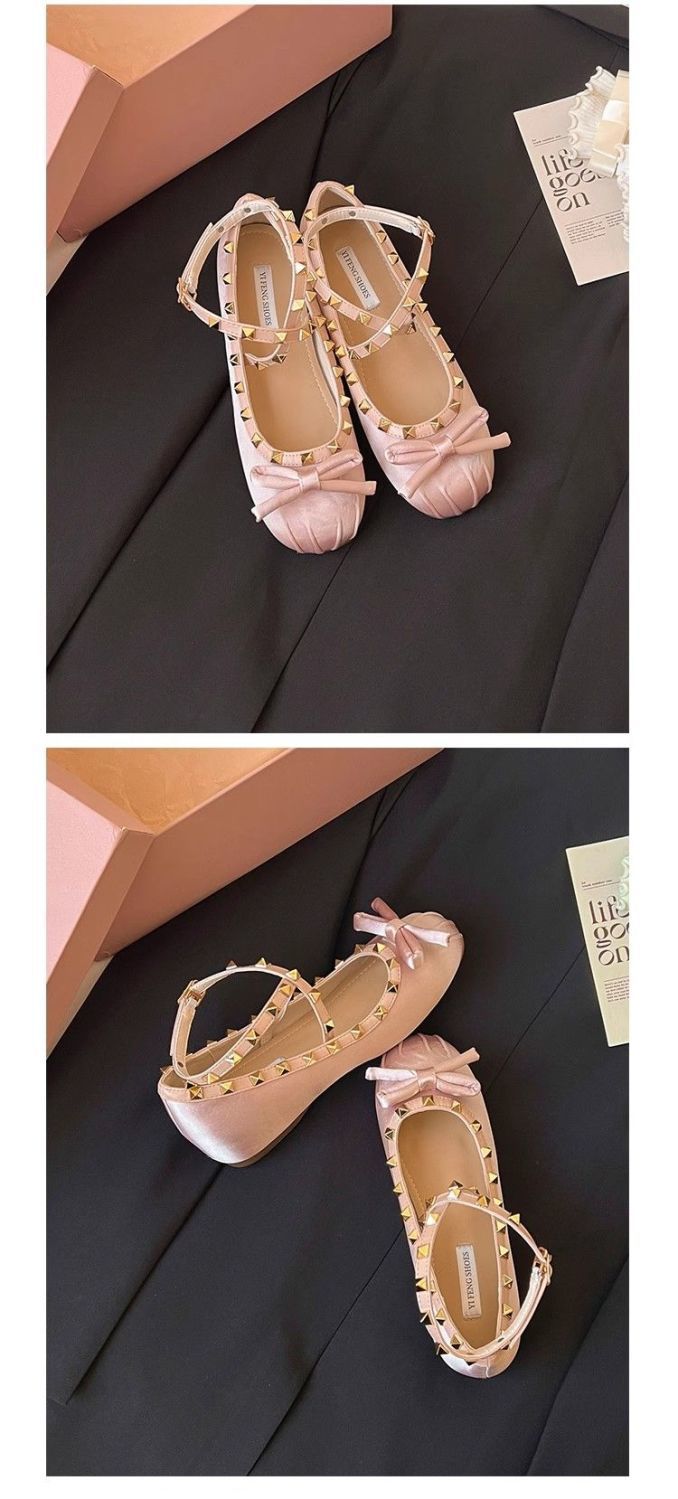 양가죽 버전 ~ 5CM 고층 평평한 바닥 메리 제인 신발 활 얕은 새틴 리벳 크로스 스트랩 발레 슈즈스토어 가기