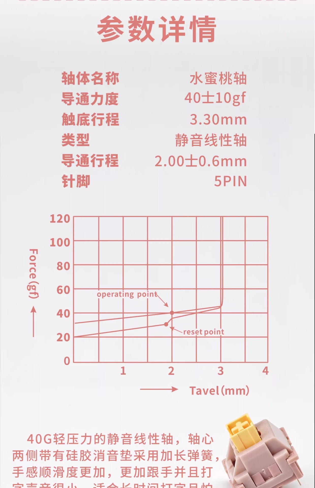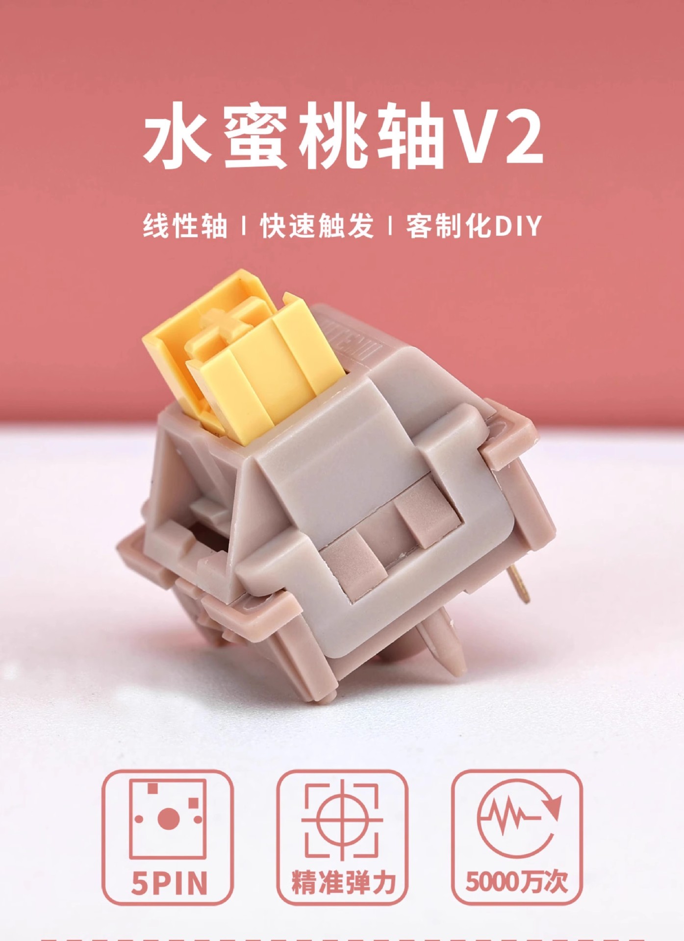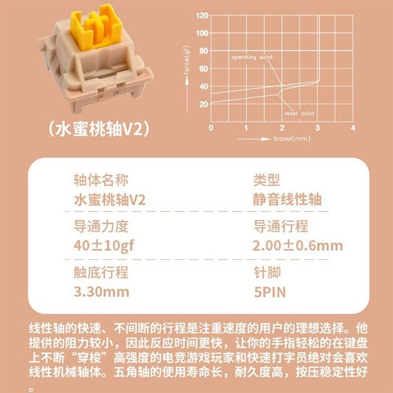 Gaute 침묵 선형 축 복숭아 축 V2 단락 석회 축 v1 맞춤형 기계 키보드 핫 플러그 스위치