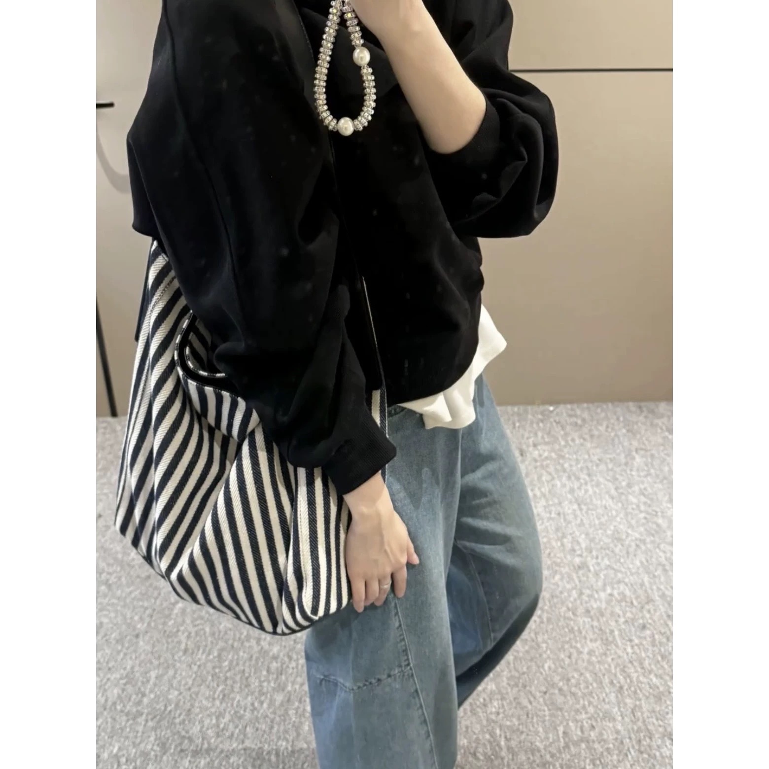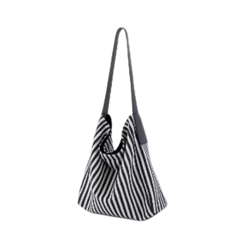대용량 토트 백 여자 2025 새로운 올 매치 캔버스 스트라이프 통근 어깨 가방 여성용 캐주얼 언더암 가방스토어 가기