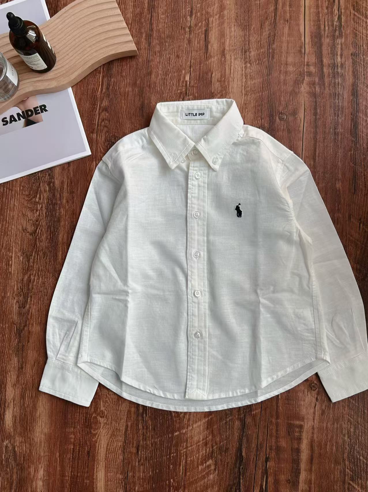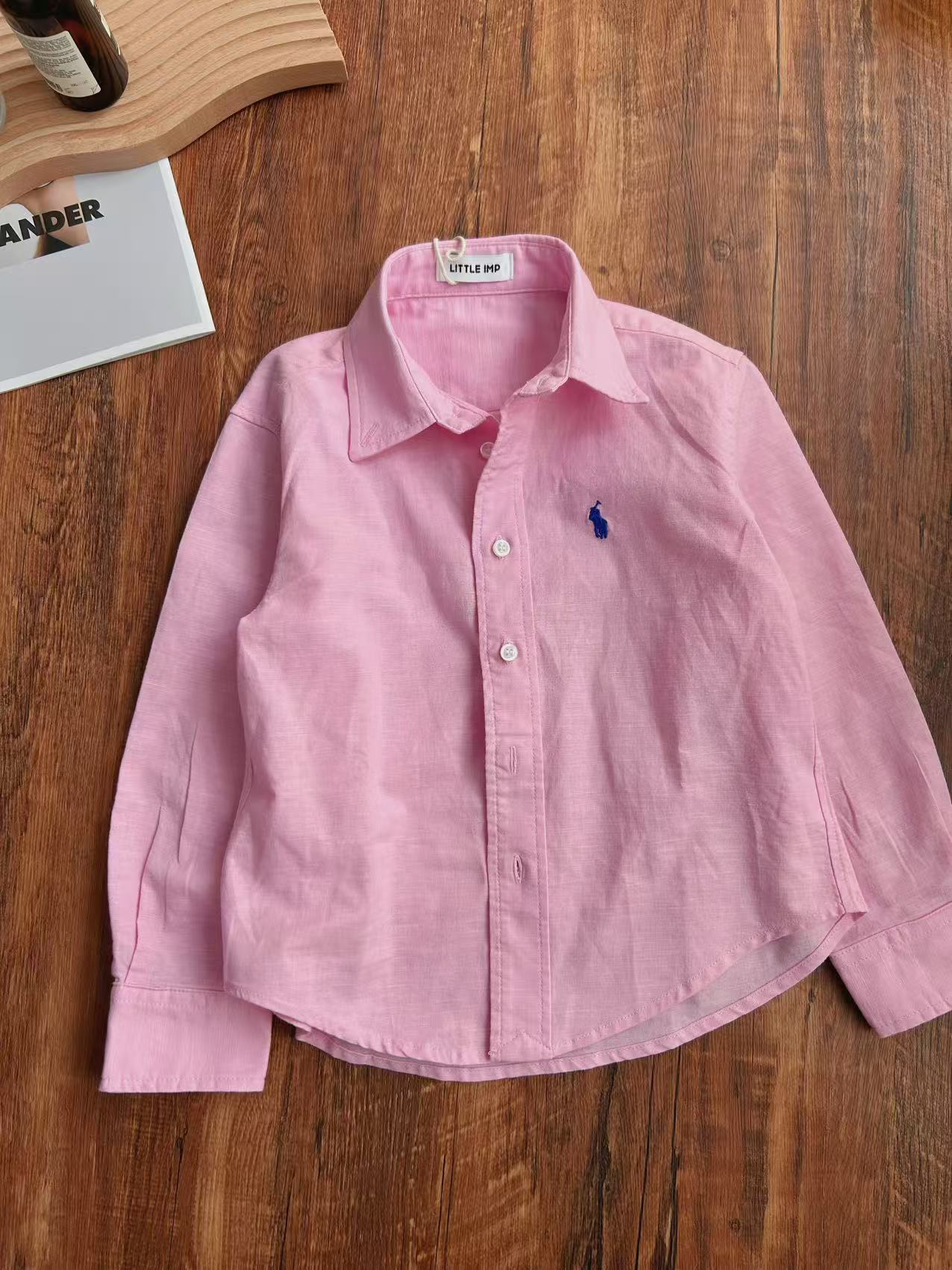 SD0305 2025 봄과 여름 남성과 여성의 중대 어린이 부모-자식 면화 및 리넨 땀 흡수 통기성 포니 자수 캐주얼 셔츠