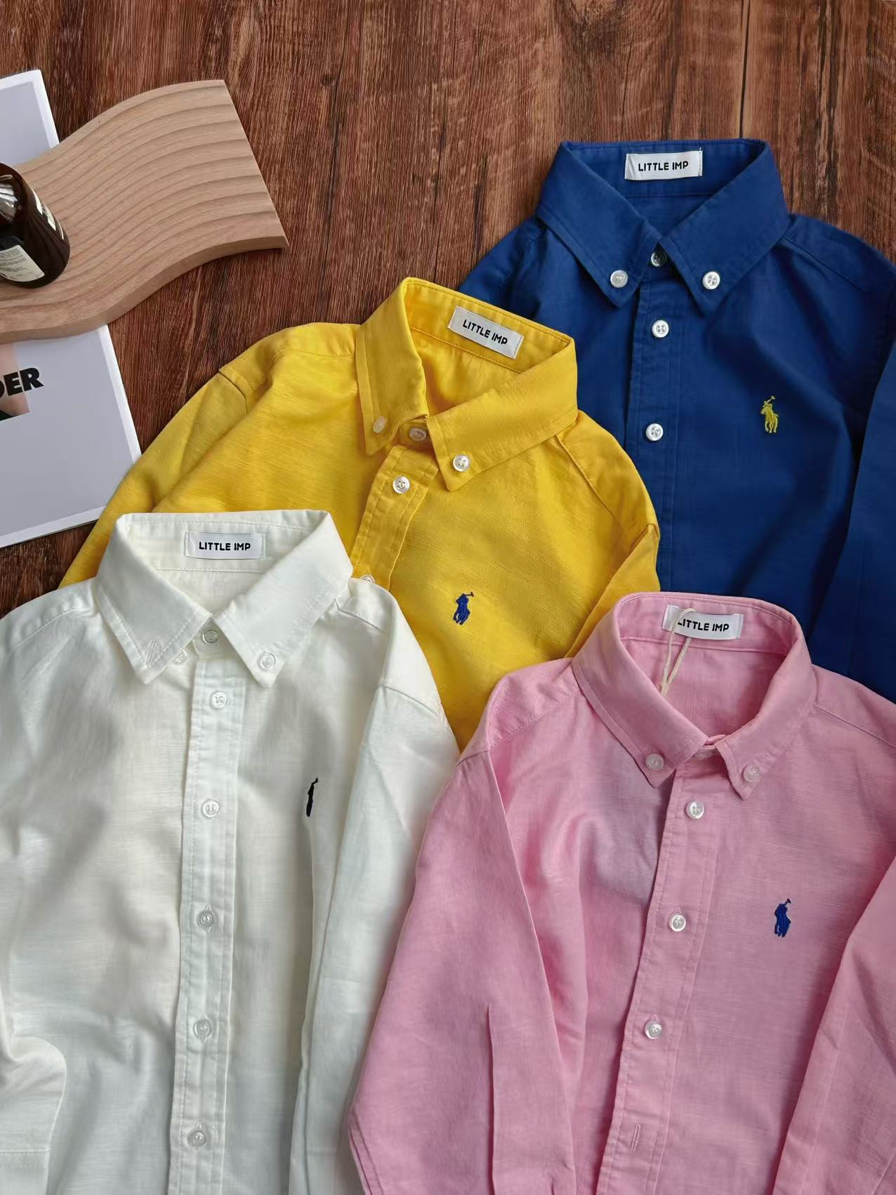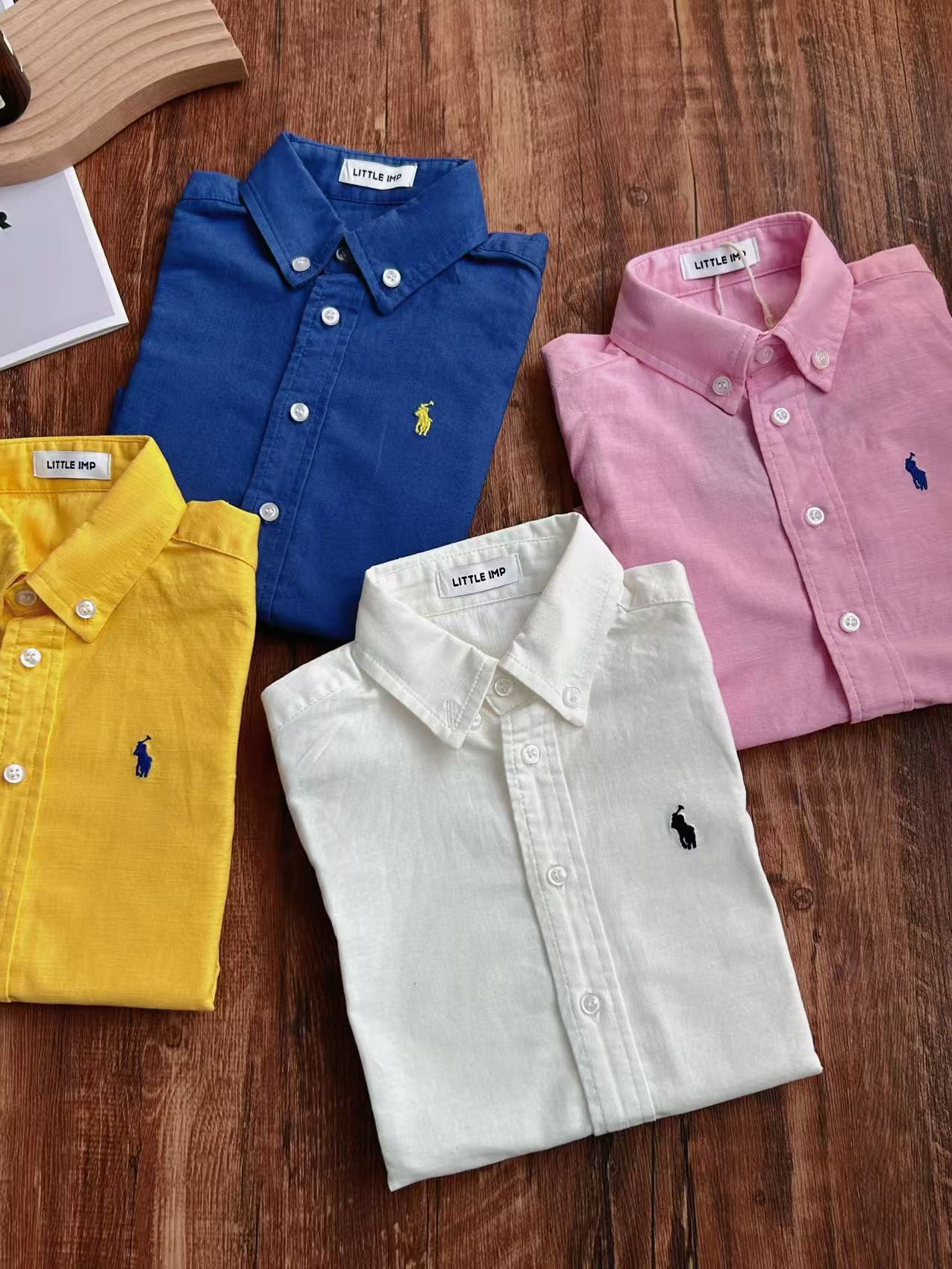 SD0305 2025 봄과 여름 남성과 여성의 중대 어린이 부모-자식 면화 및 리넨 땀 흡수 통기성 포니 자수 캐주얼 셔츠스토어 가기
