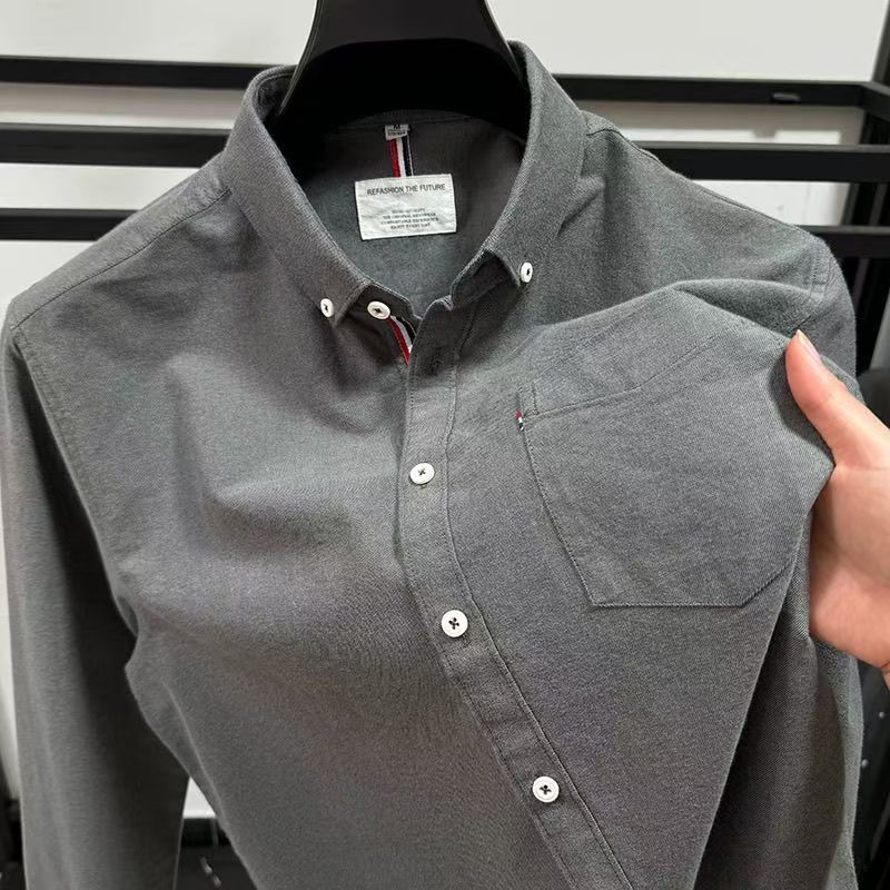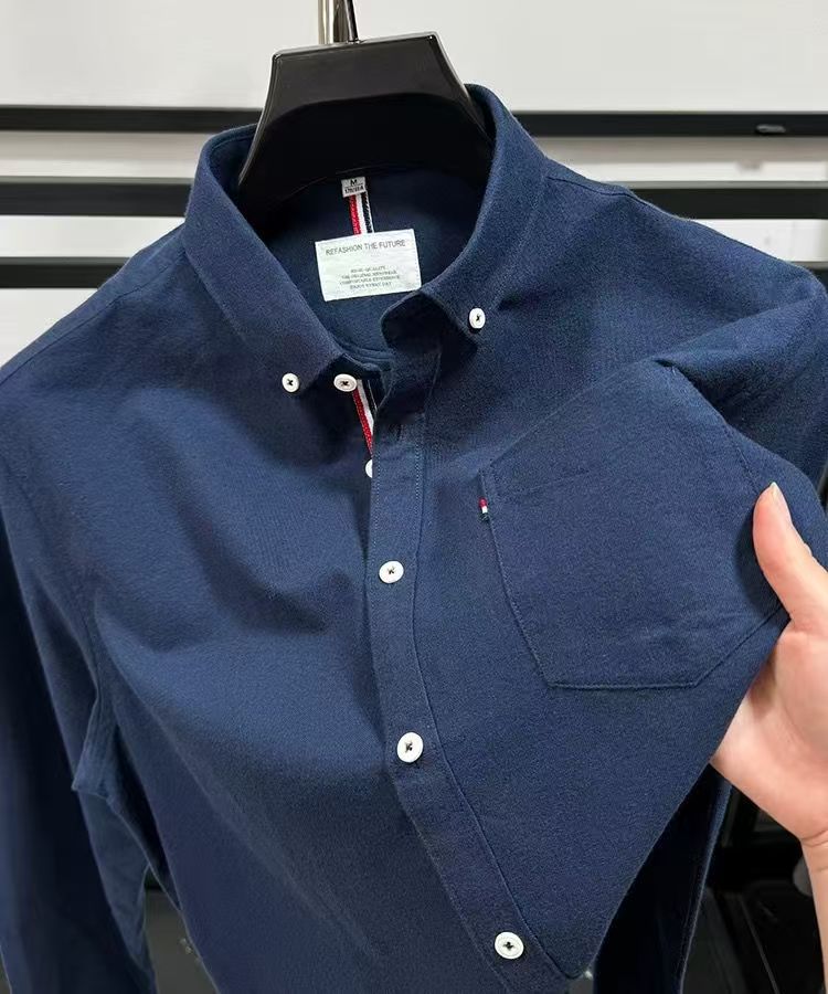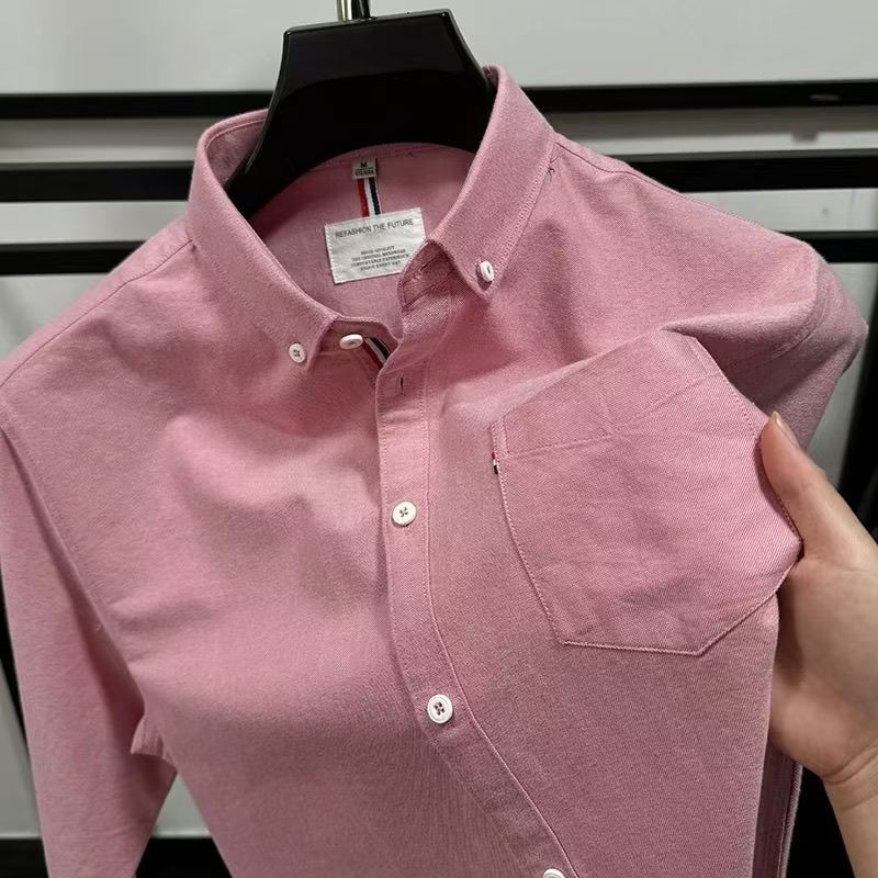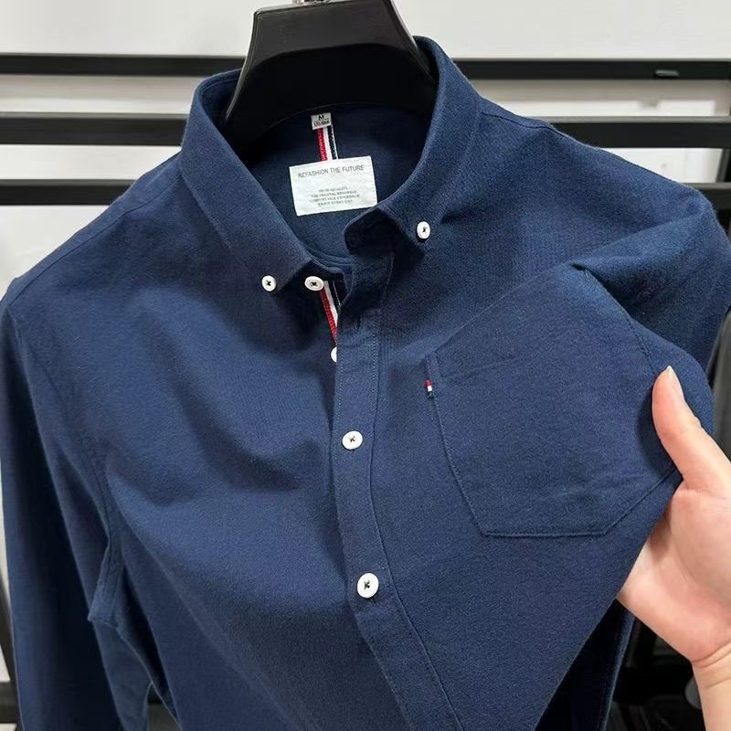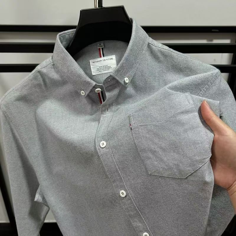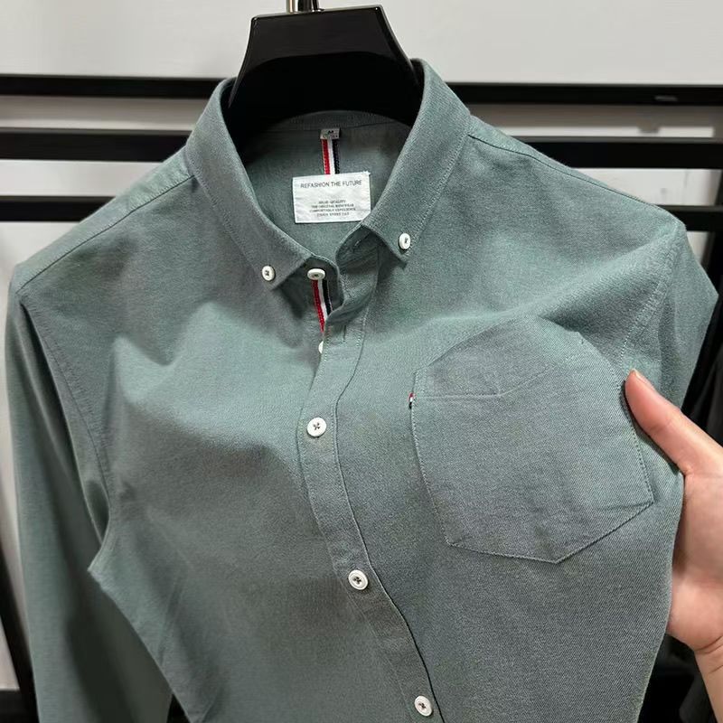 100 면 긴 소매 셔츠 남성 봄과 가을 단색 블라우스 포켓 샌딩 비즈니스 캐주얼 베이스 탑스토어 가기