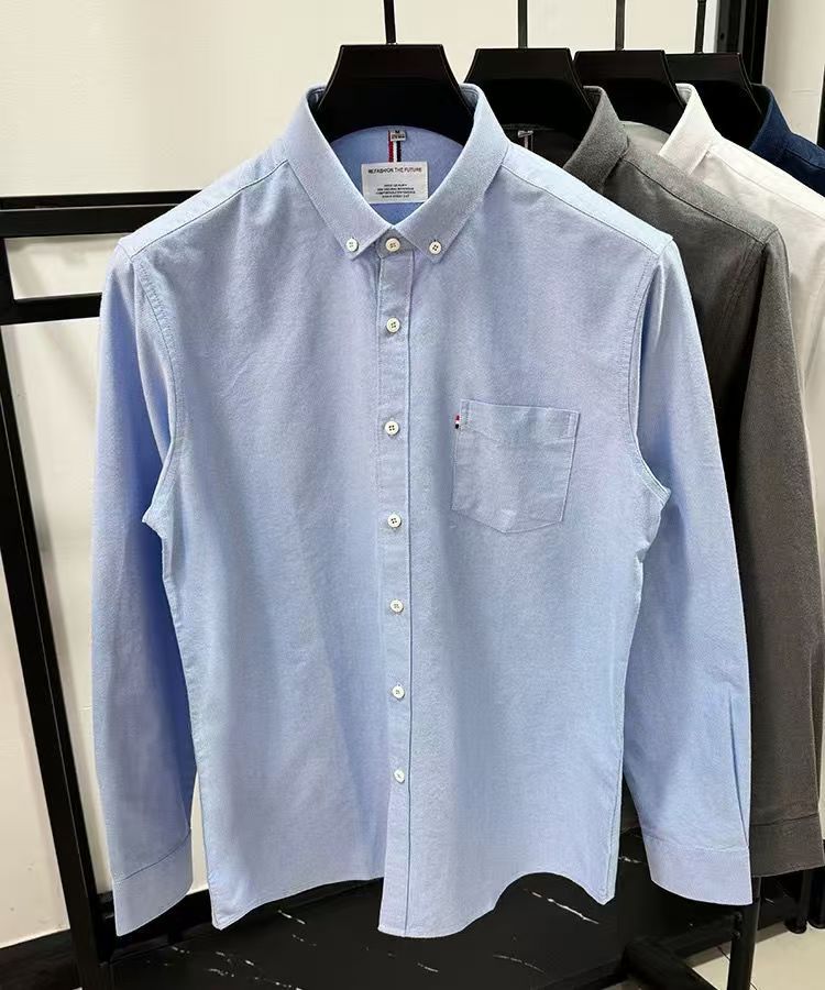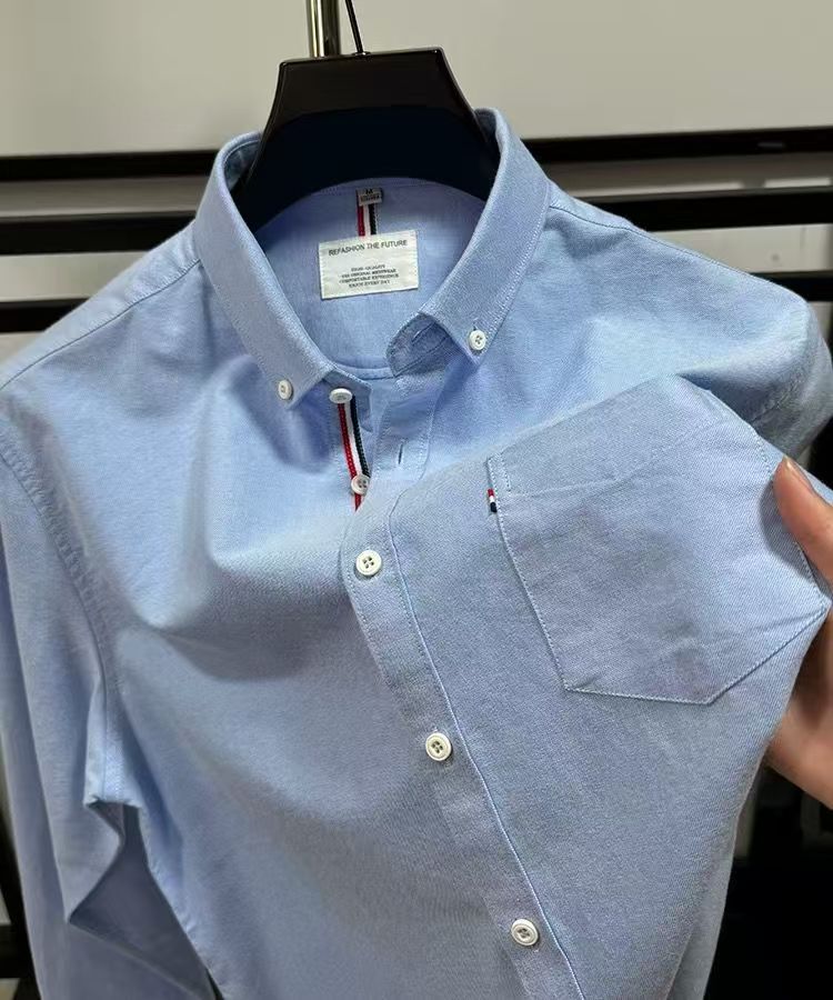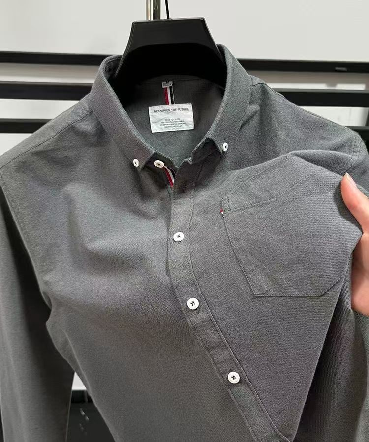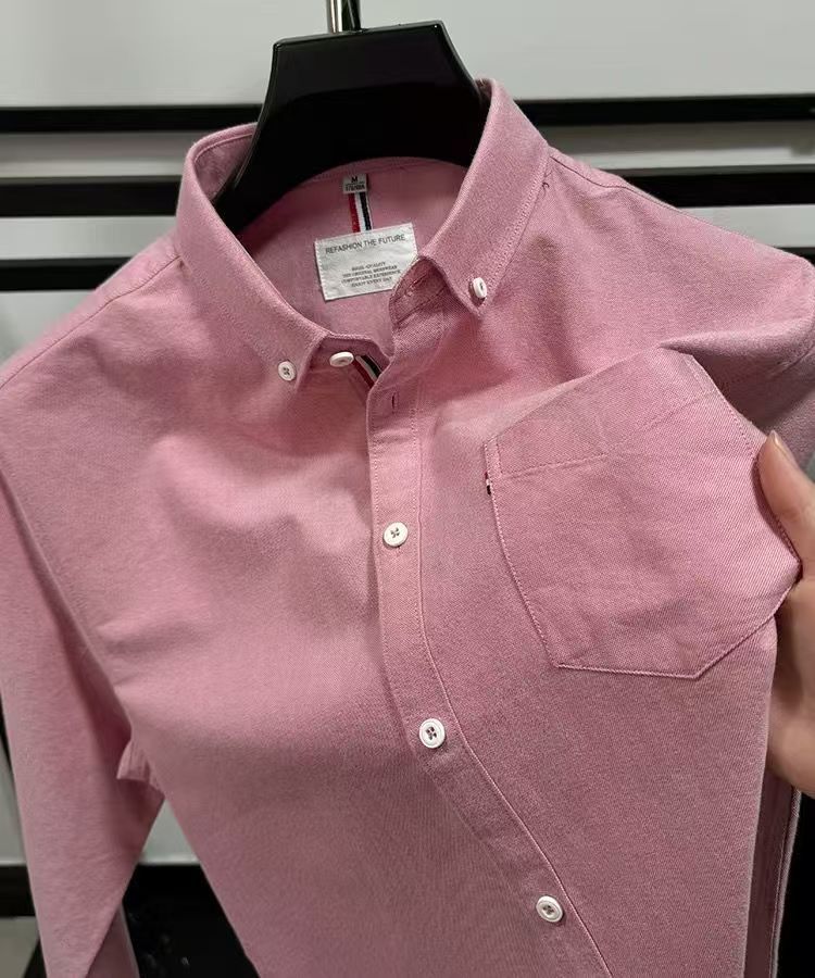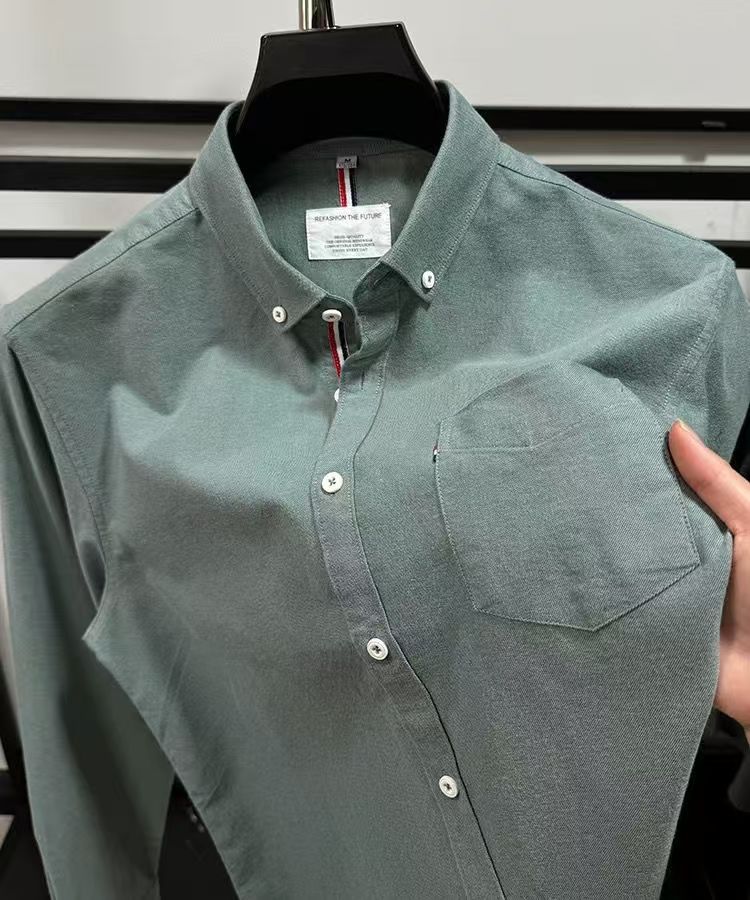 100 면 긴 소매 셔츠 남성 봄과 가을 단색 블라우스 포켓 샌딩 비즈니스 캐주얼 베이스 탑스토어 가기