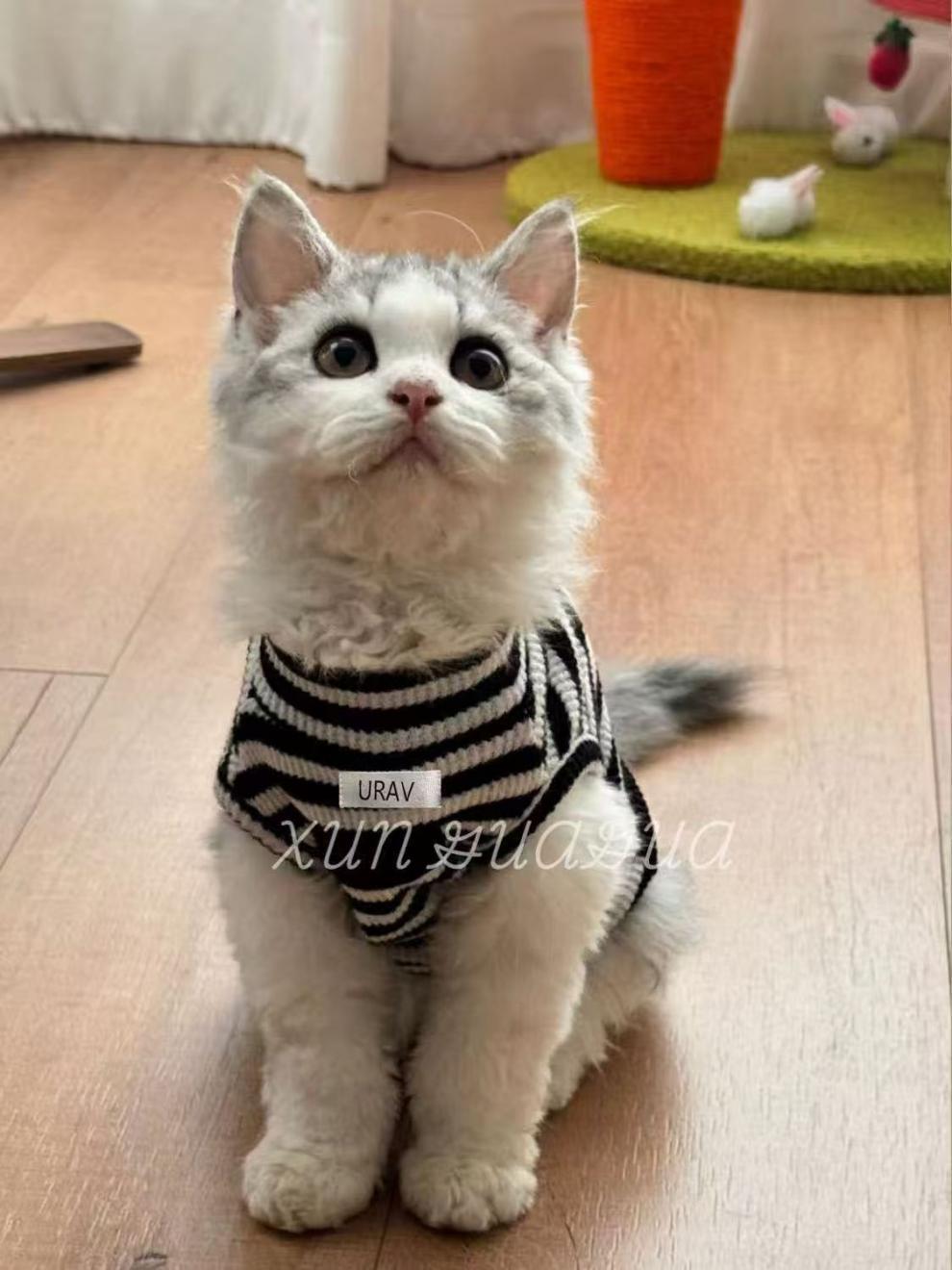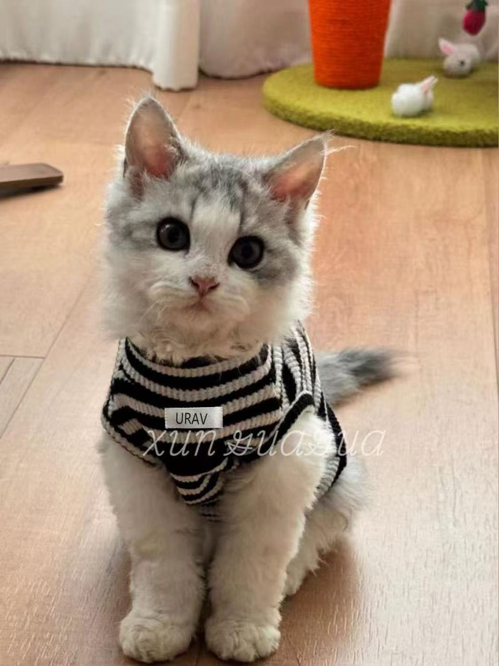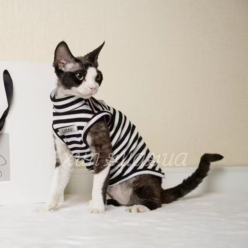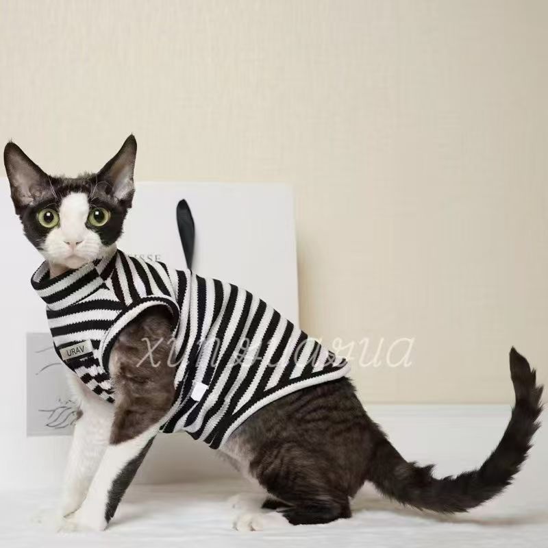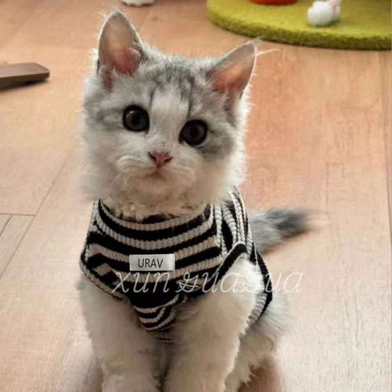 독일 고양이 옷 통기성 새끼 고양이 봄과 여름 얇은 머리 방지 finx 새끼 고양이 민소매 애완 동물 나들이 두 다리 옷스토어 가기