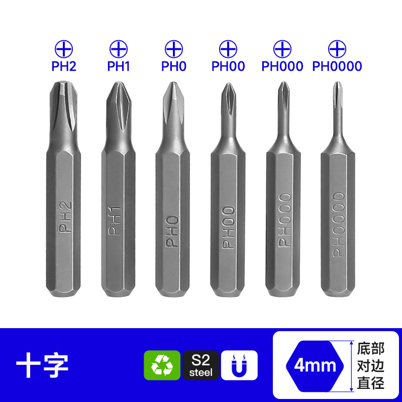 十字尖度:PH1 PH2 PH3(主图和详情有图片对比)选择合适的尖度,一般螺丝PH2是的尖度,PH1用于十字位较深的螺丝,PH3用于十字位较宽大的螺丝。