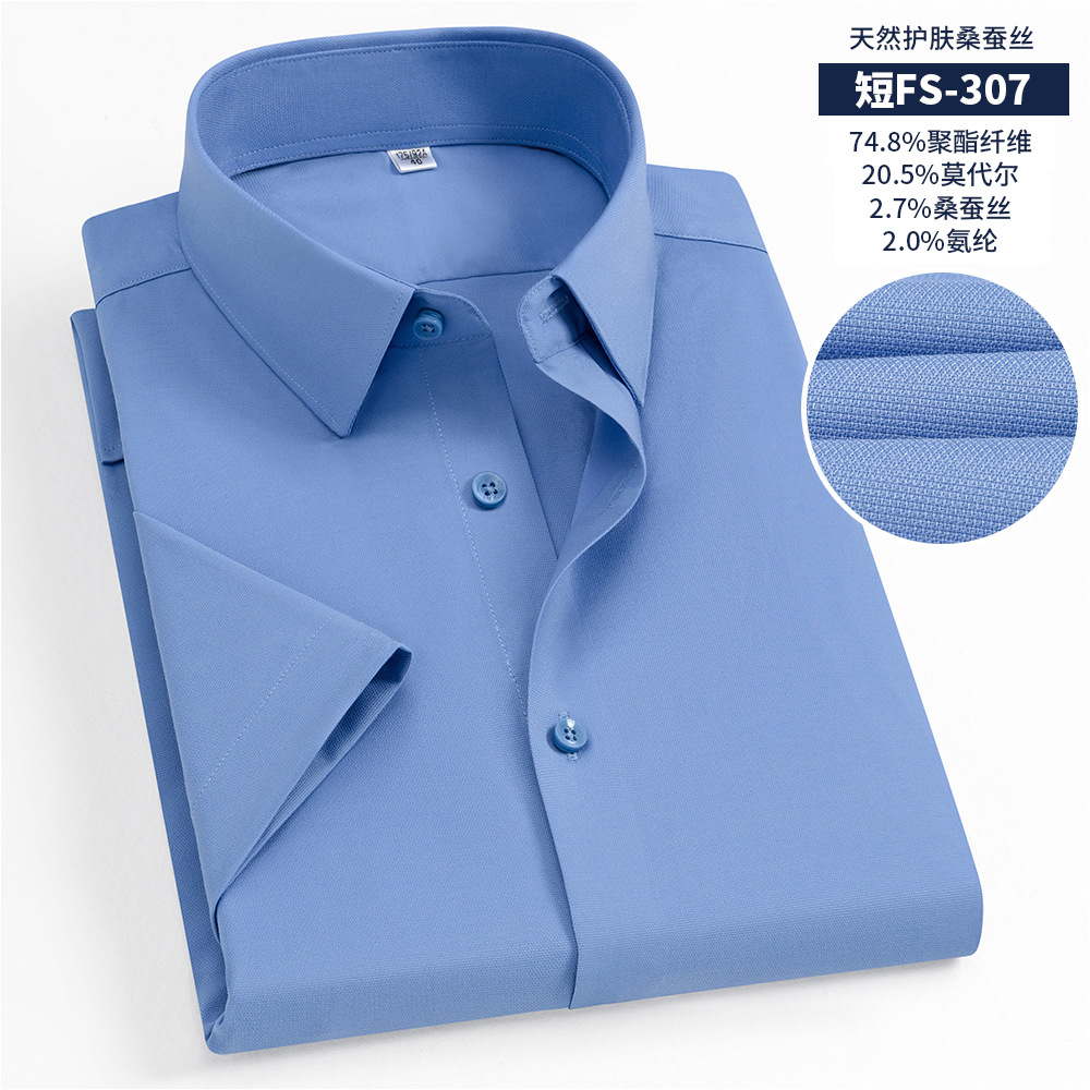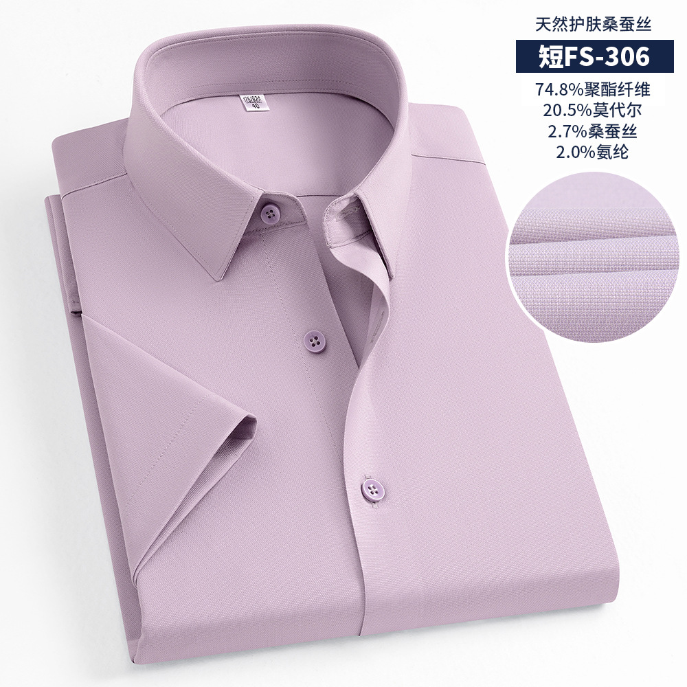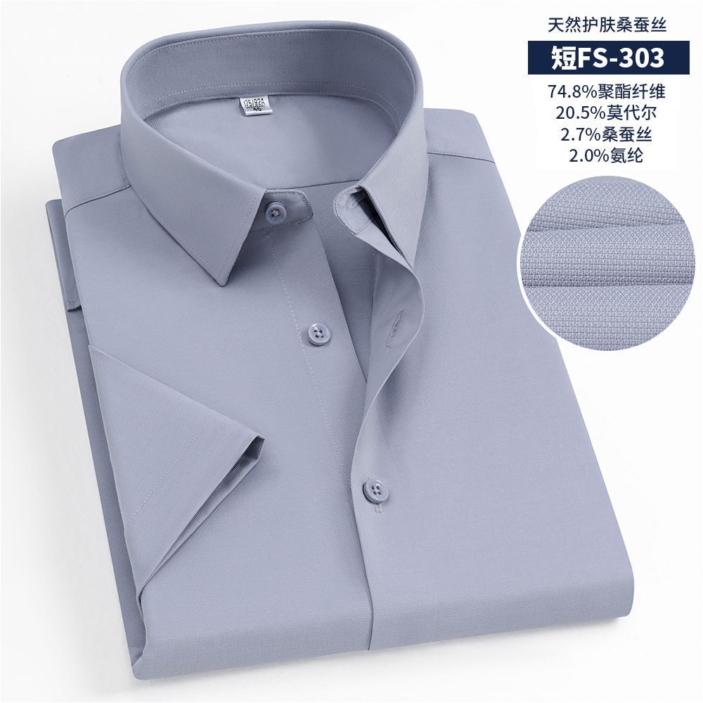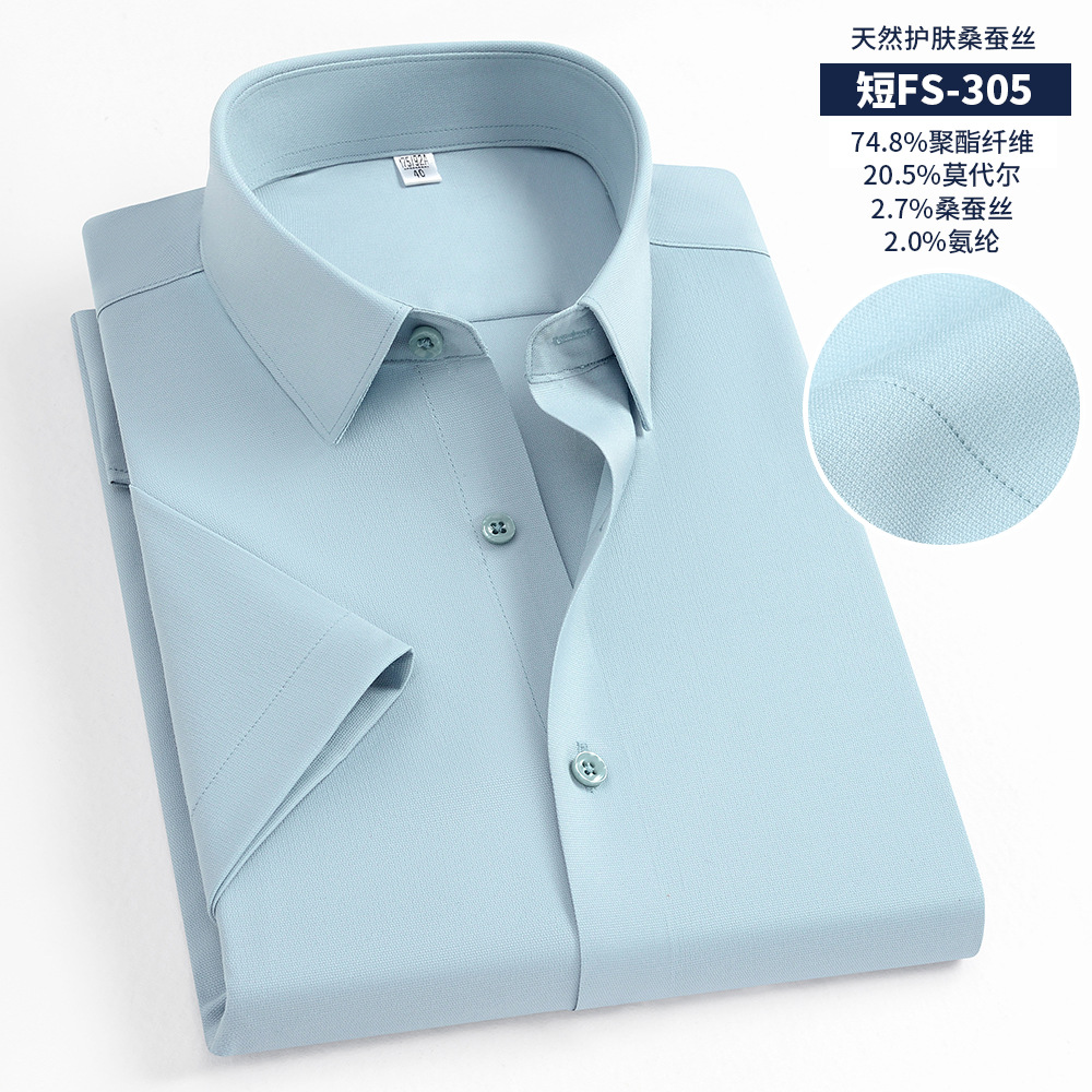 멀버리 실크 여름 하이엔드 남성 셔츠, 반팔 작업복, 기성 캐주얼 긴팔 셔츠, 모달 다용도스토어 가기