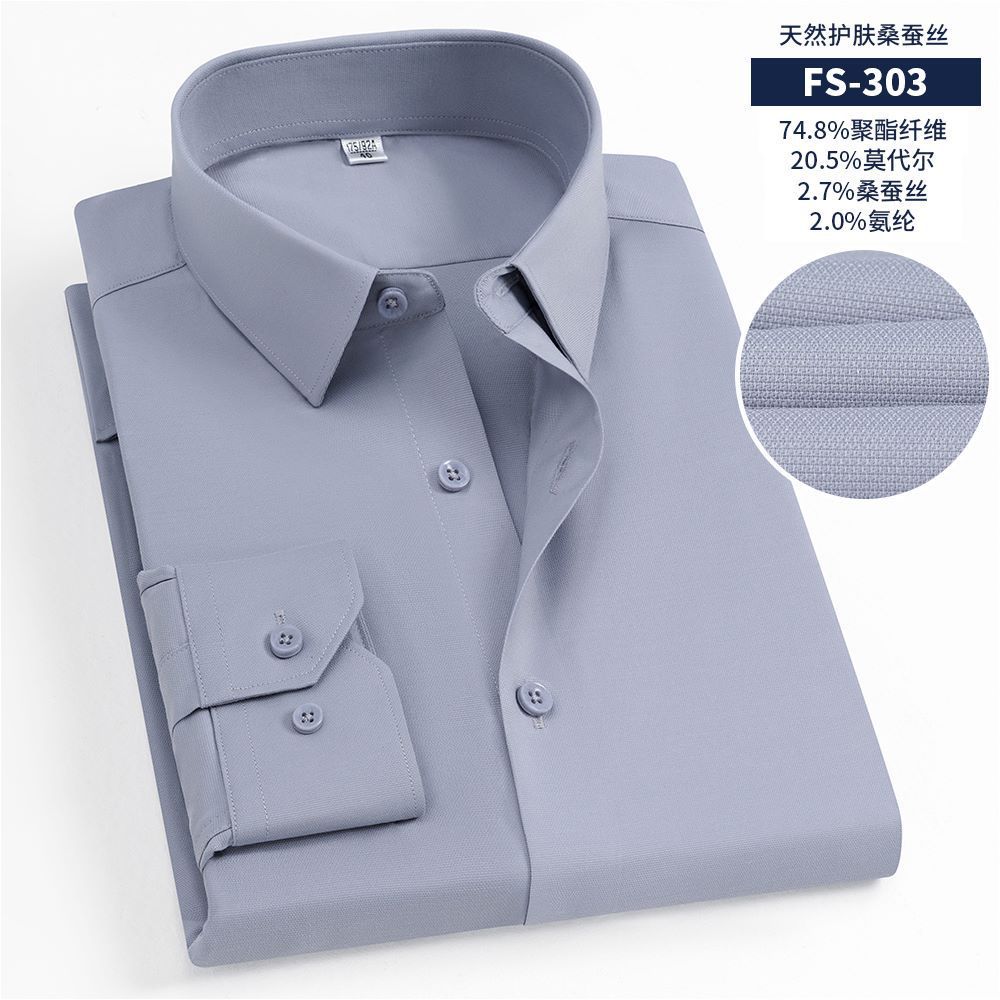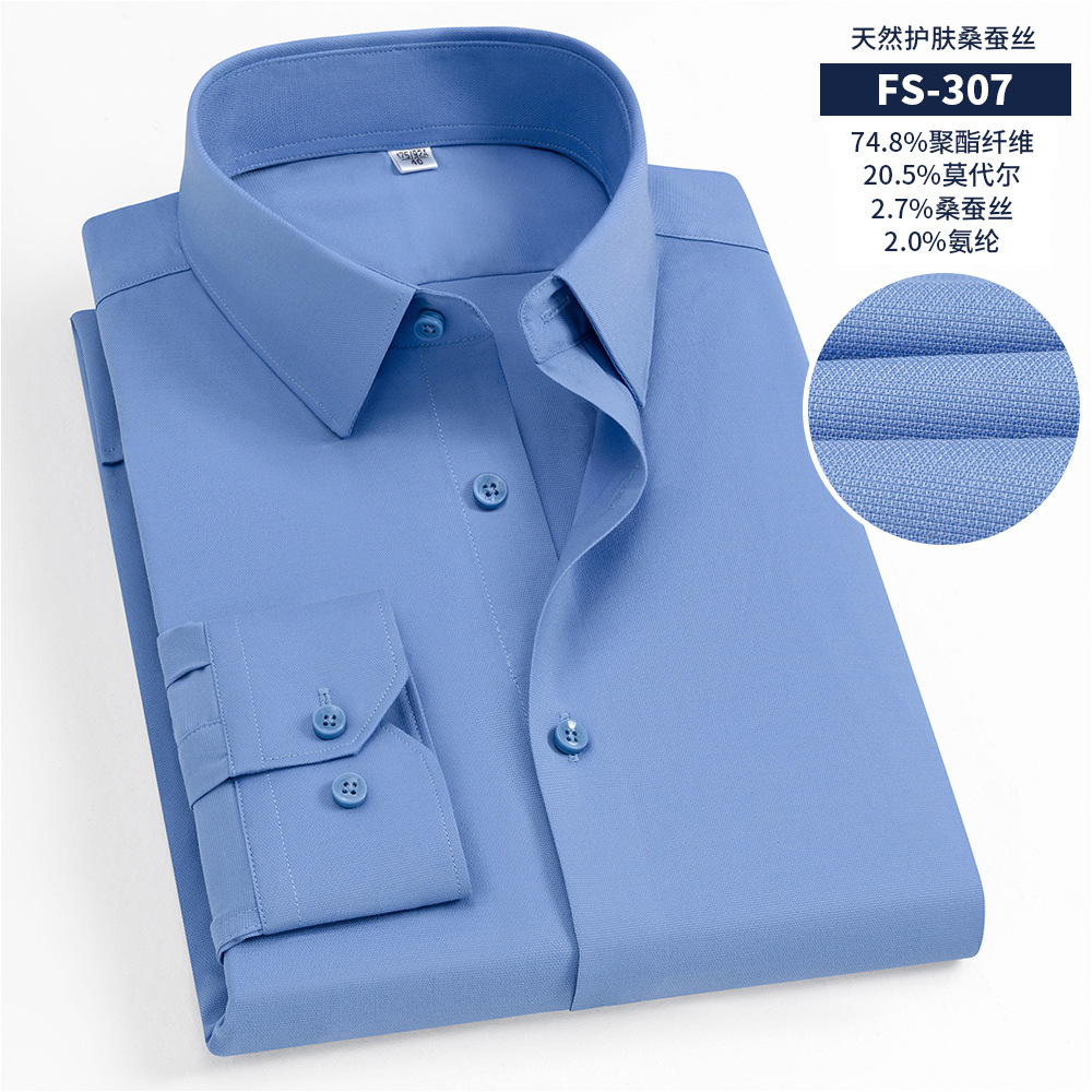 멀버리 실크 여름 하이엔드 남성 셔츠, 반팔 작업복, 기성 캐주얼 긴팔 셔츠, 모달 다용도