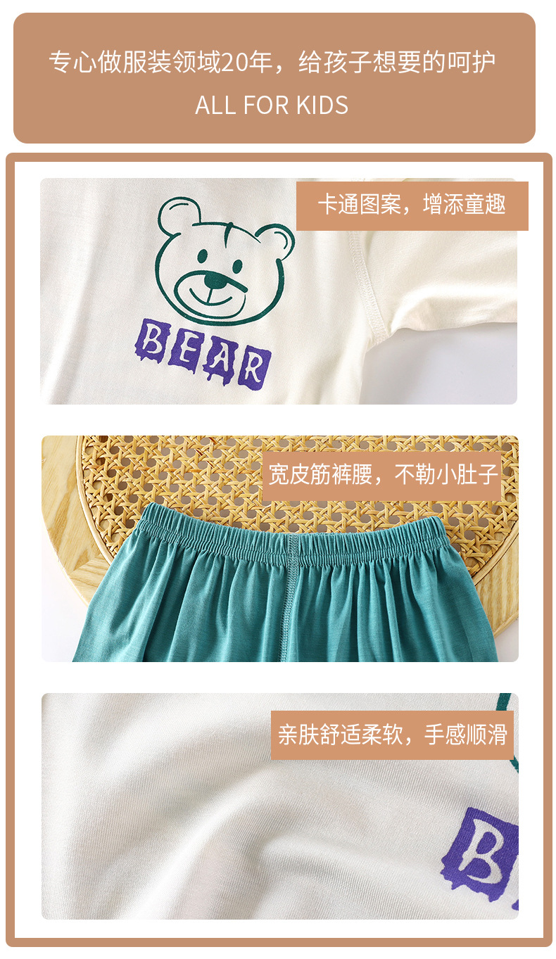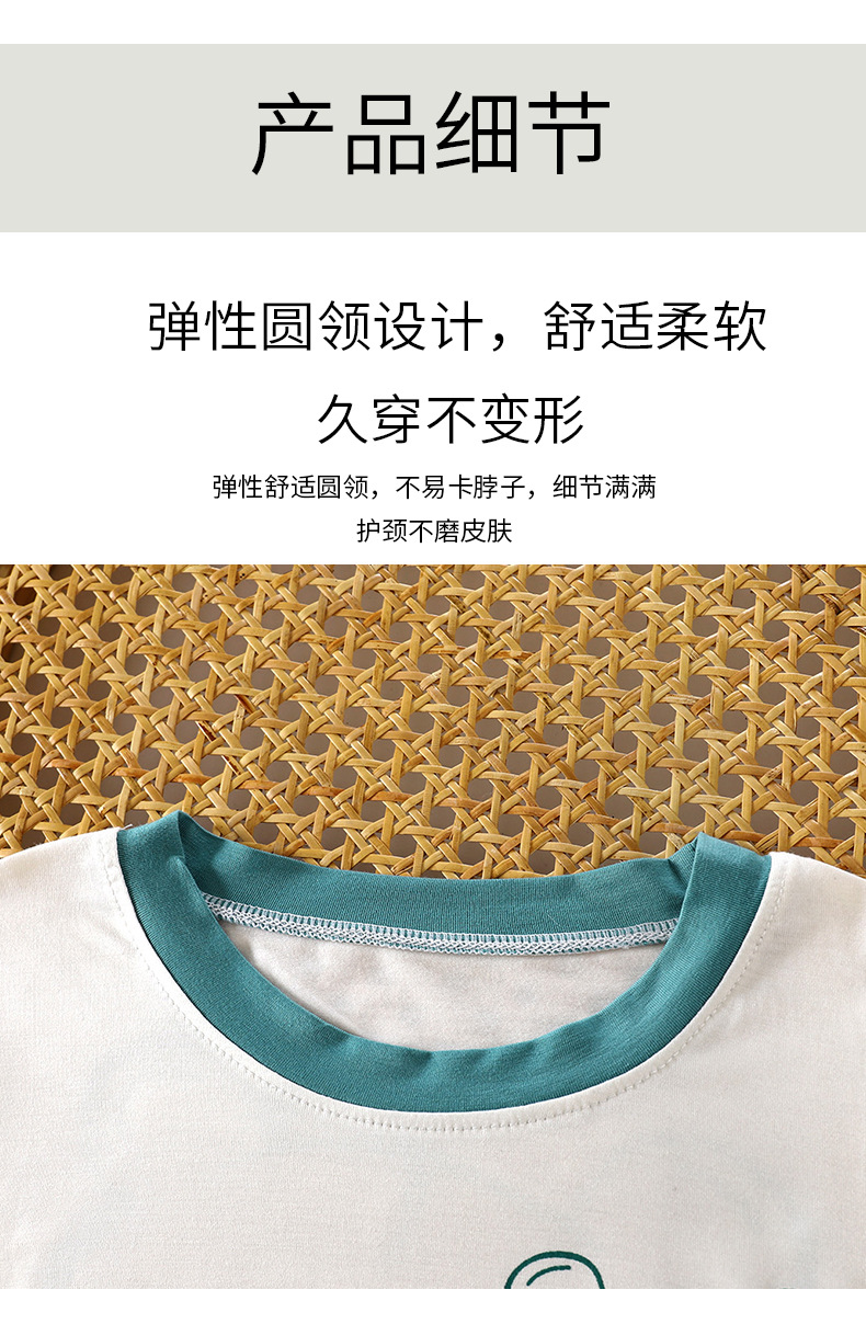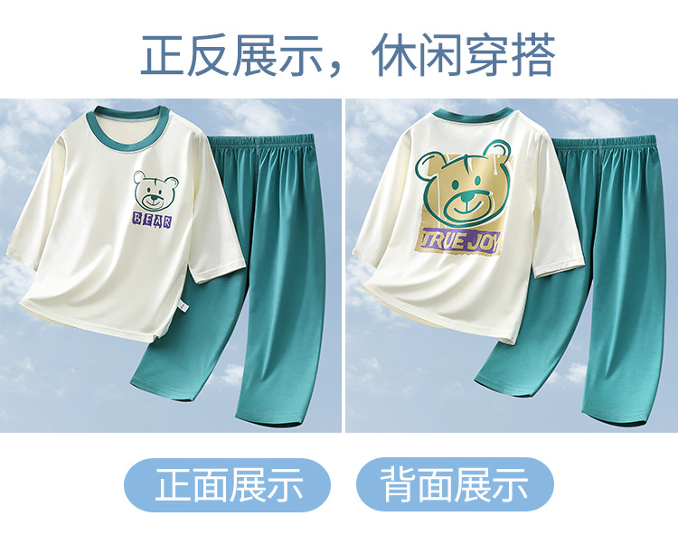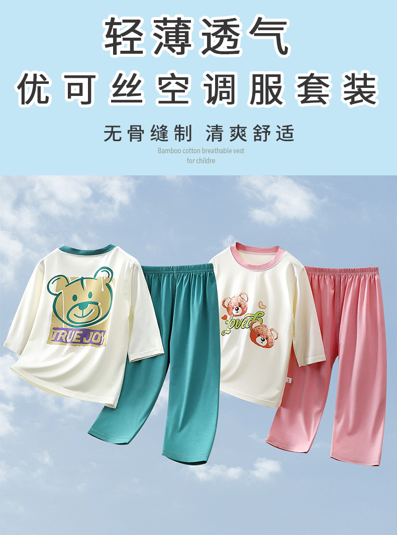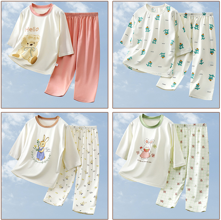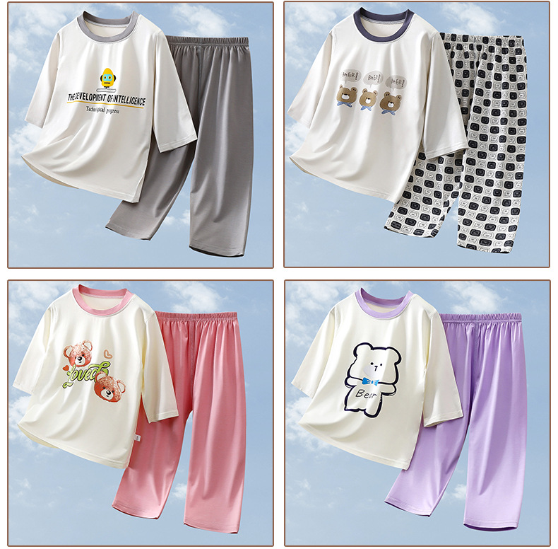 2025 여름 새 소년 소녀 7 점 슬리브 홈 옷 땀 흡수성 통기성 어린이 7 점 슬리브 에어컨 세트스토어 가기
