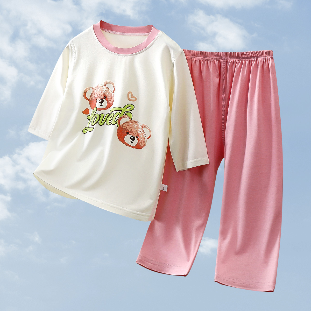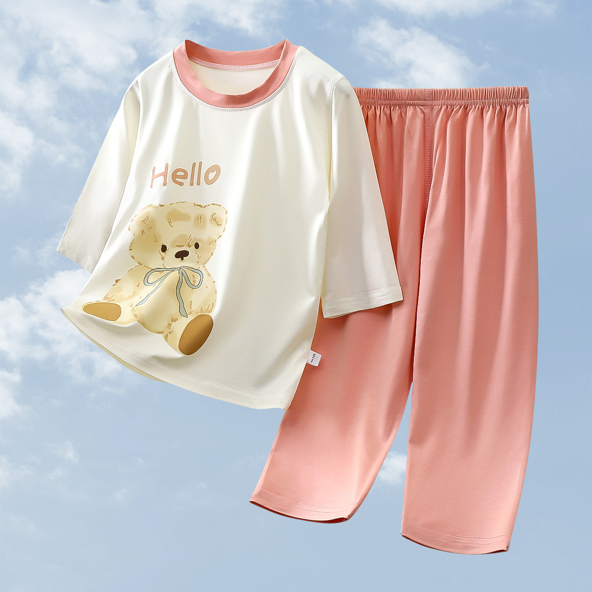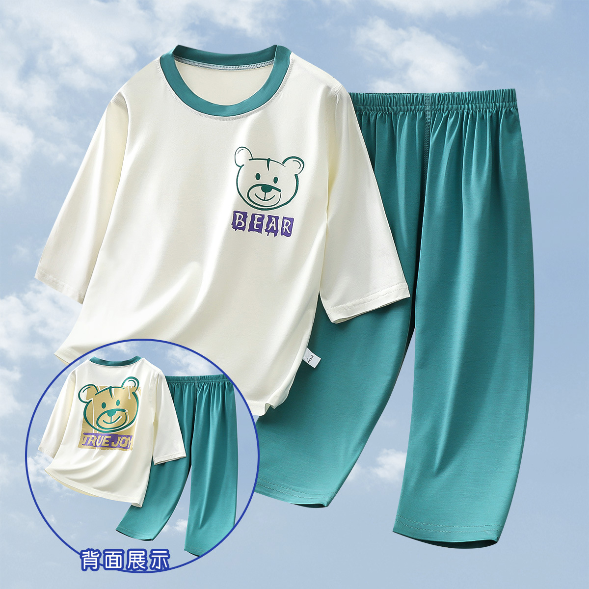 2025 여름 새 소년 소녀 7 점 슬리브 홈 옷 땀 흡수성 통기성 어린이 7 점 슬리브 에어컨 세트스토어 가기