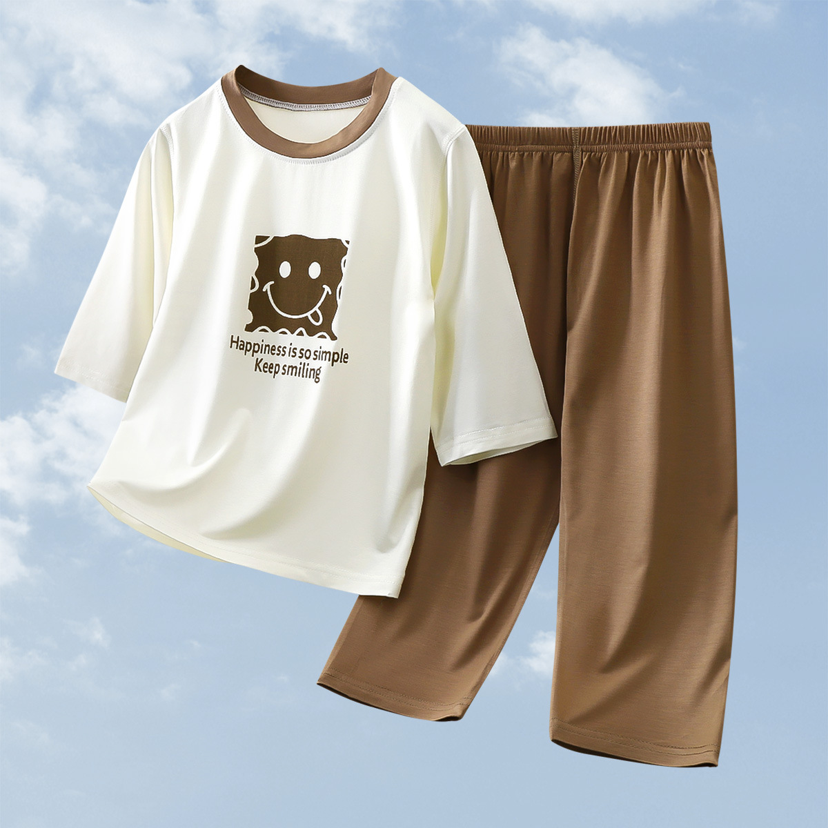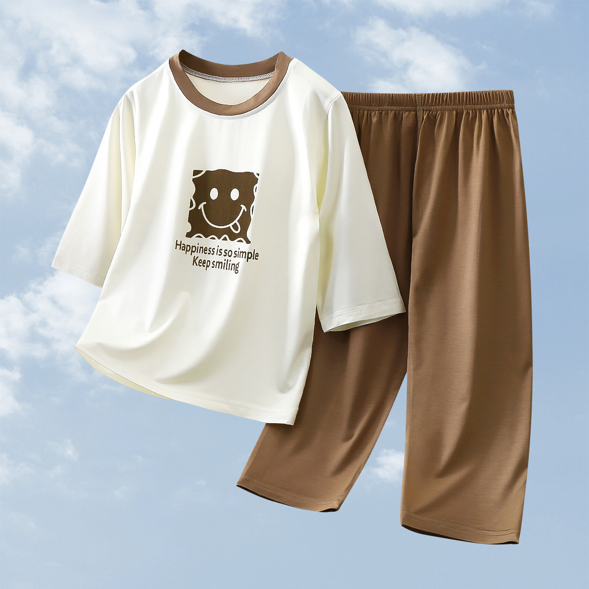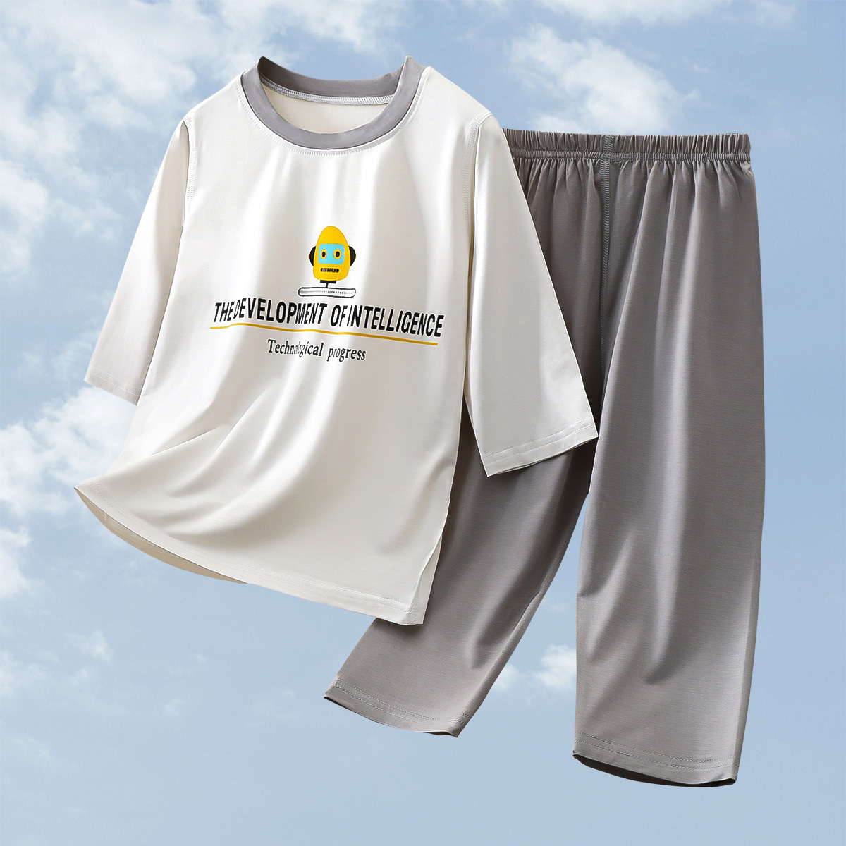 2025 여름 새 소년 소녀 7 점 슬리브 홈 옷 땀 흡수성 통기성 어린이 7 점 슬리브 에어컨 세트