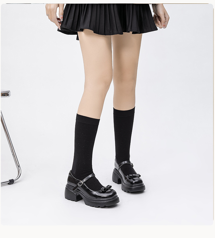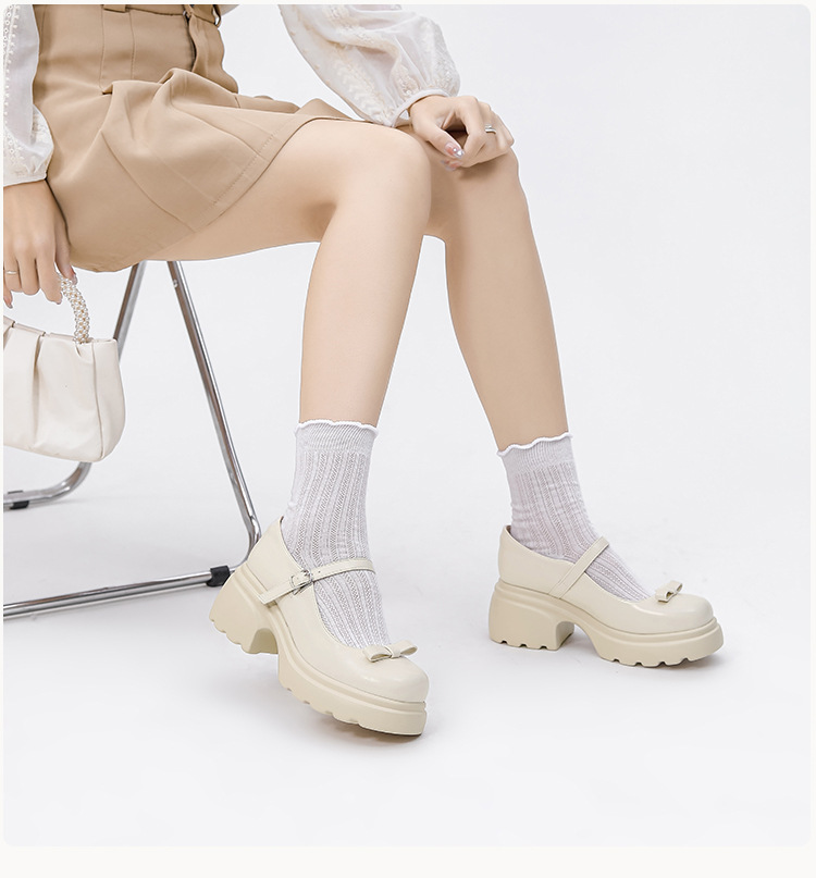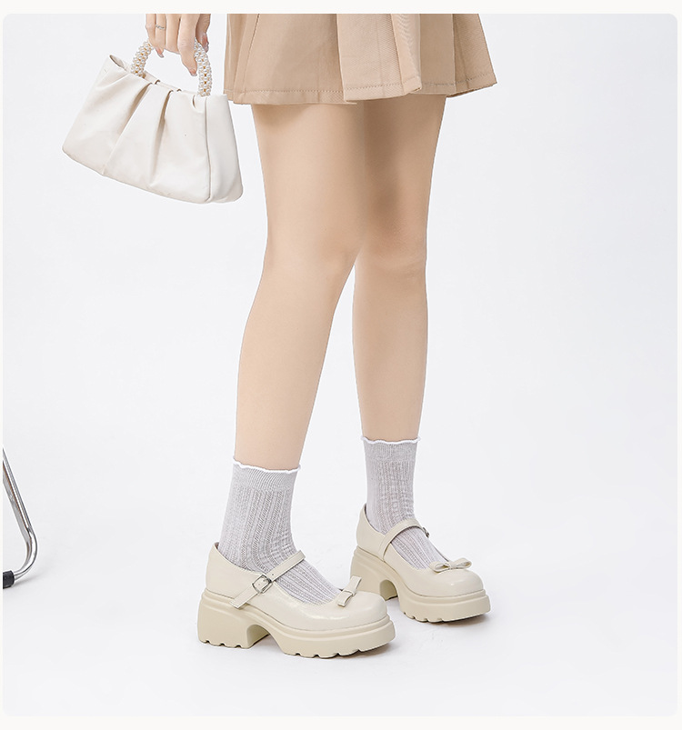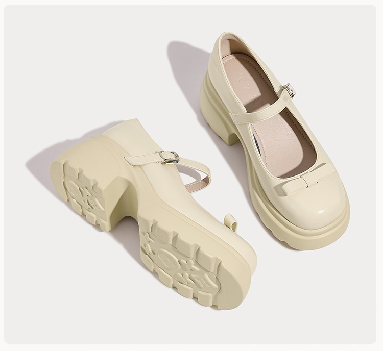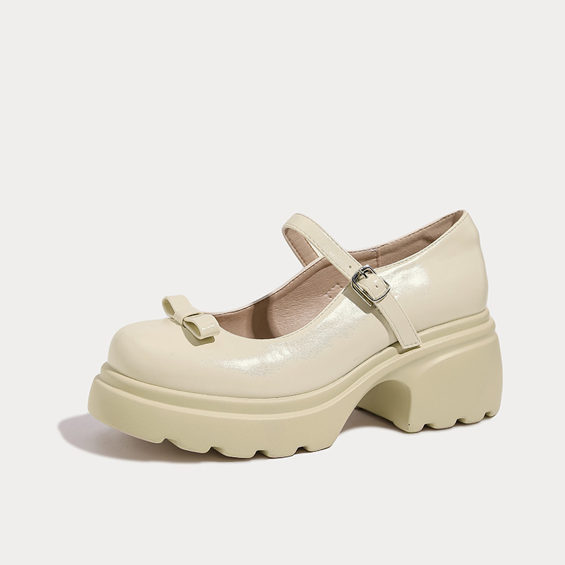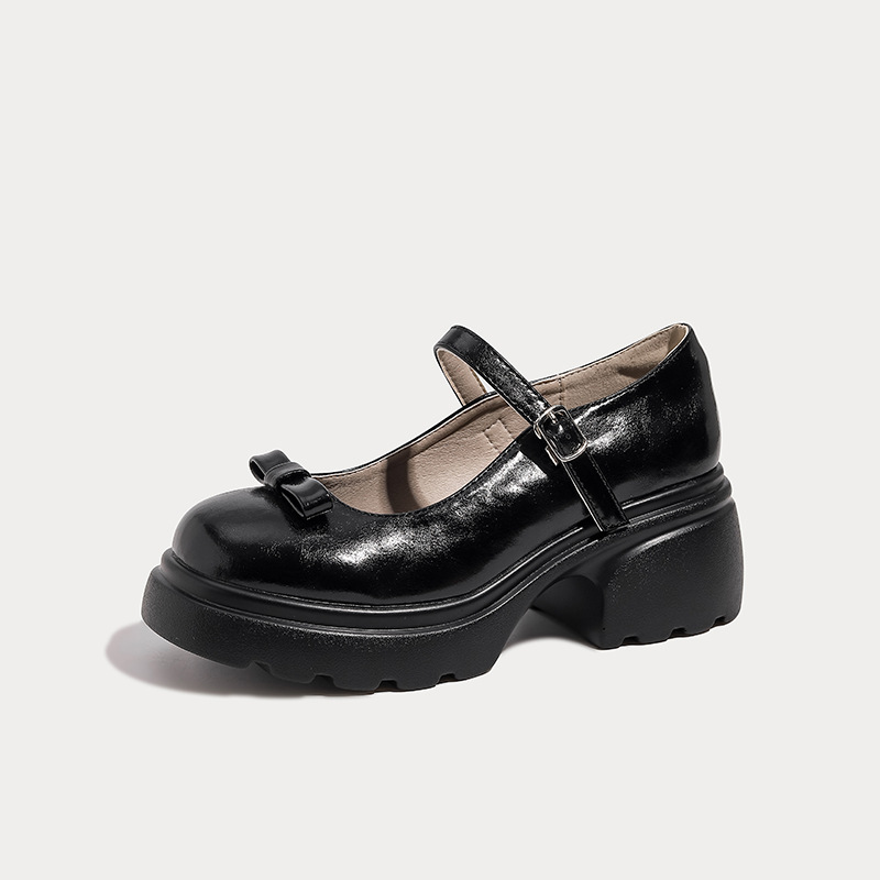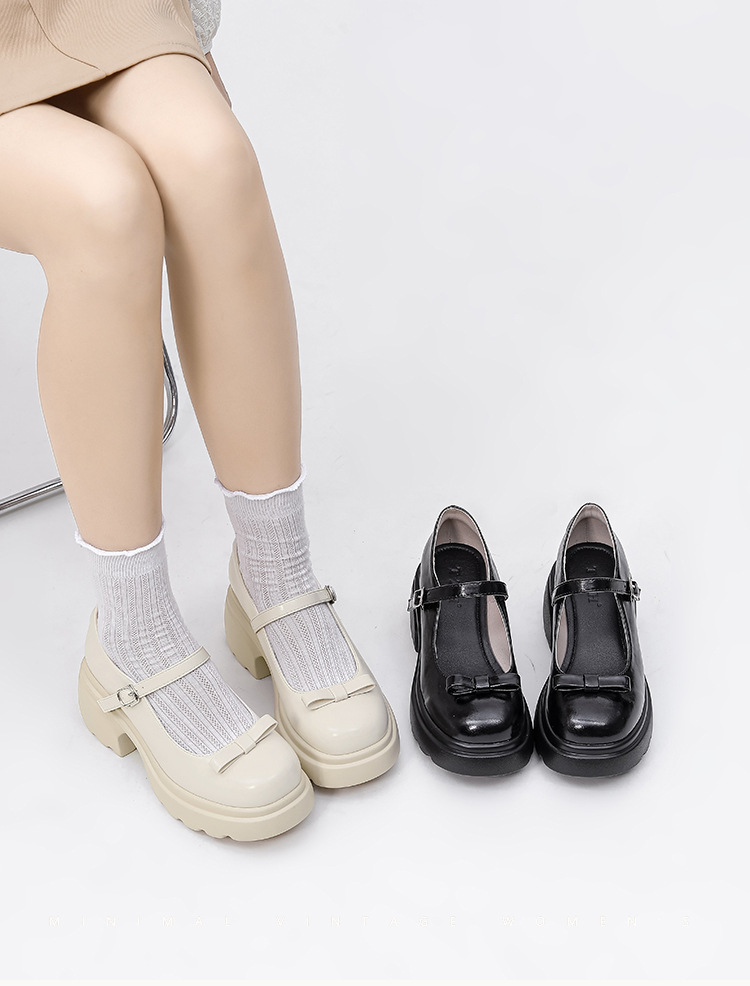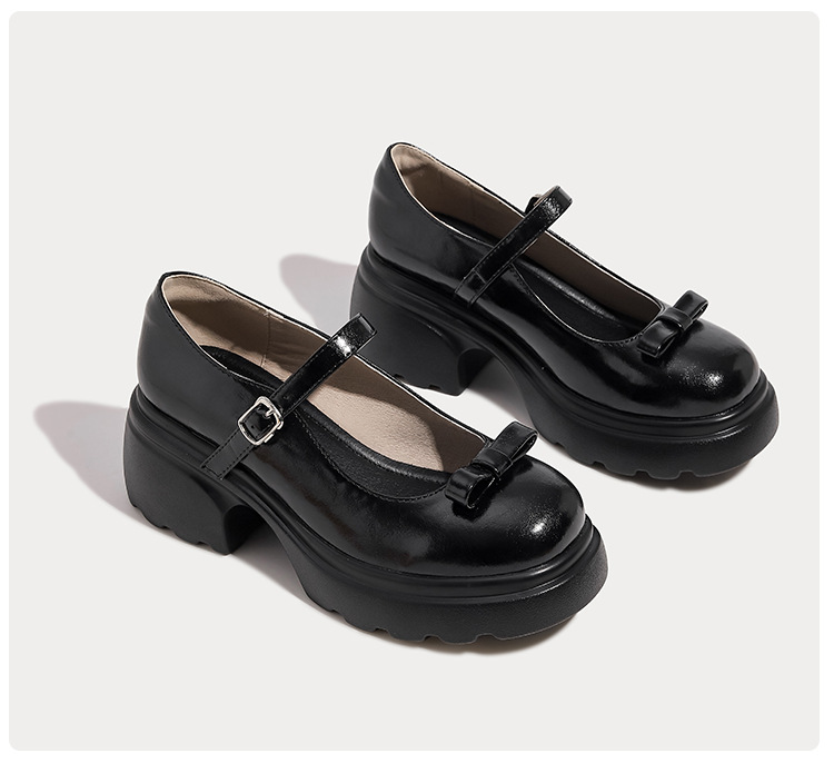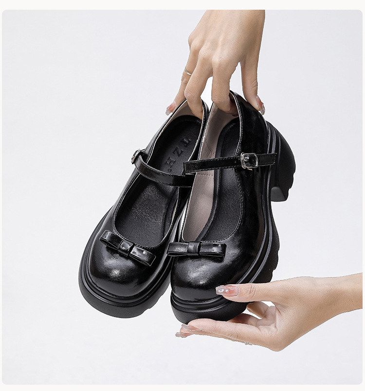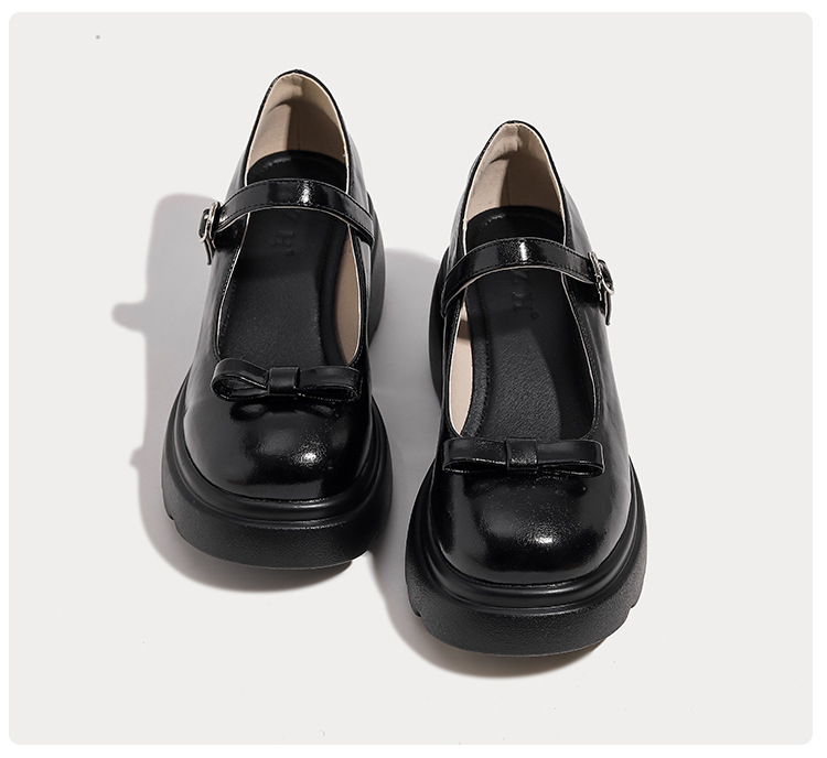 헤비 밑창 캐주얼 다크 브라운 둥근 발가락 일본식 JK 헤비 밑창 작은 가죽 신발 여성의 2024 년 새 봄과 가을 얕은 입 메리 제인 신발스토어 가기