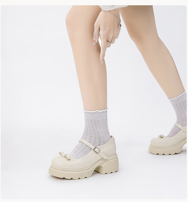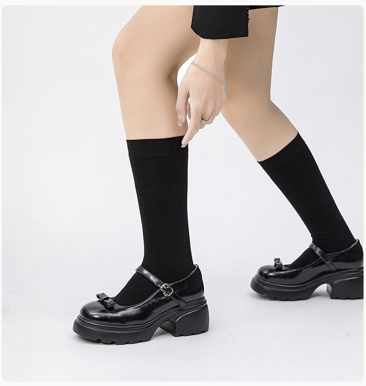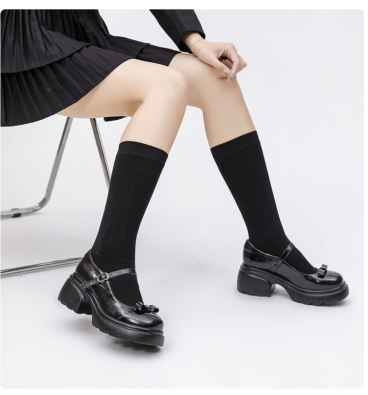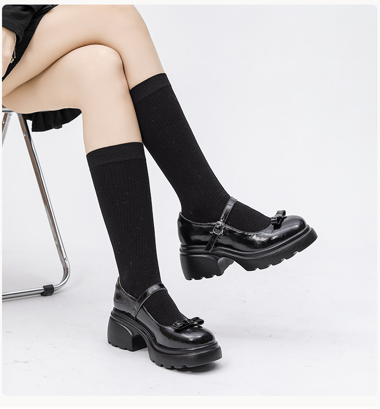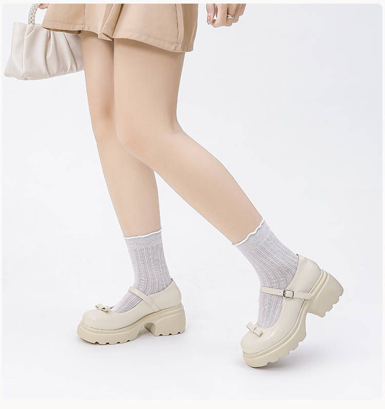 헤비 밑창 캐주얼 다크 브라운 둥근 발가락 일본식 JK 헤비 밑창 작은 가죽 신발 여성의 2024 년 새 봄과 가을 얕은 입 메리 제인 신발