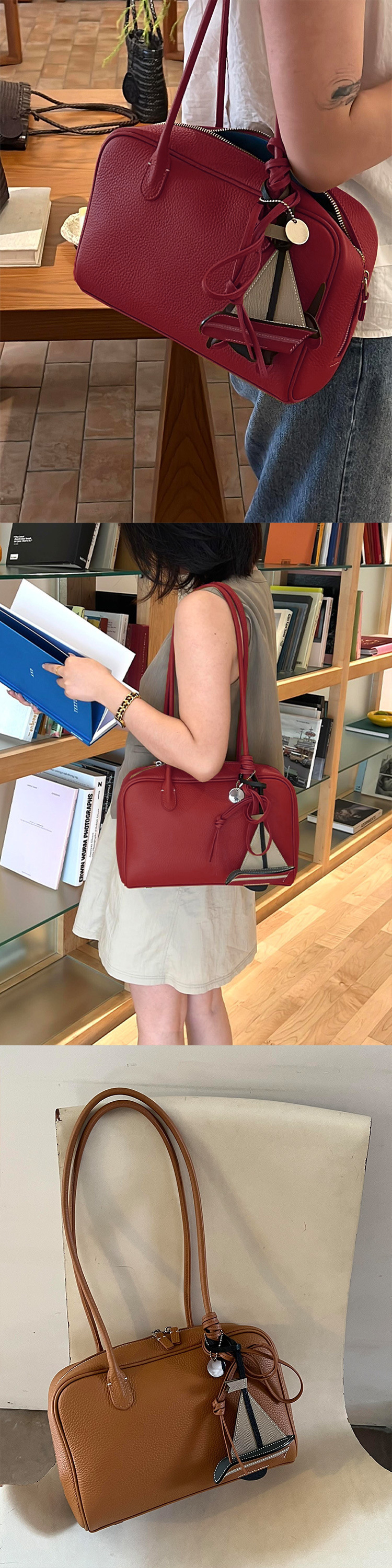 • 레드 통근 숄더백