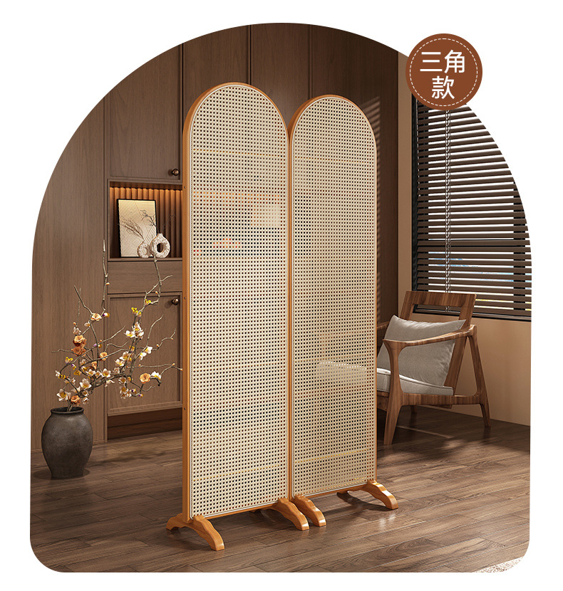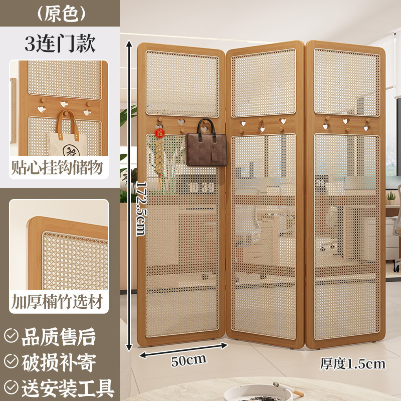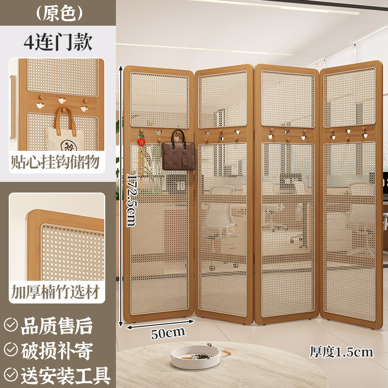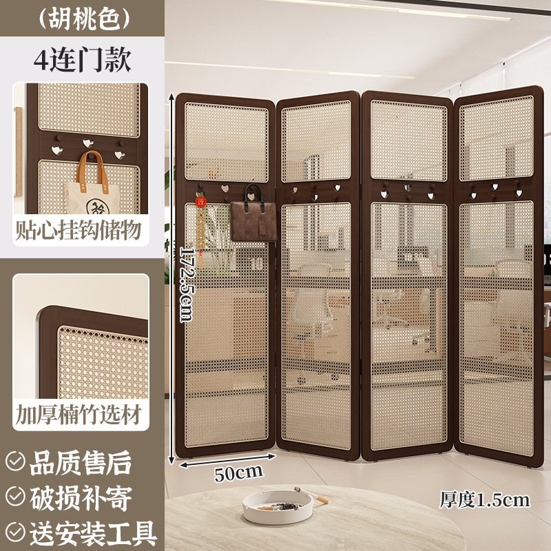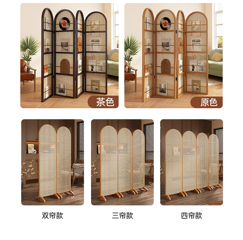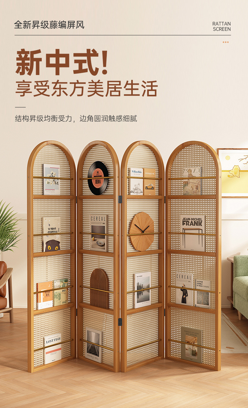새로운 중국 스타일의 거실 등나무 접이식 스크린 이동식 접이식 복고풍 파티션 프랑스 침실 차단 보관 책장