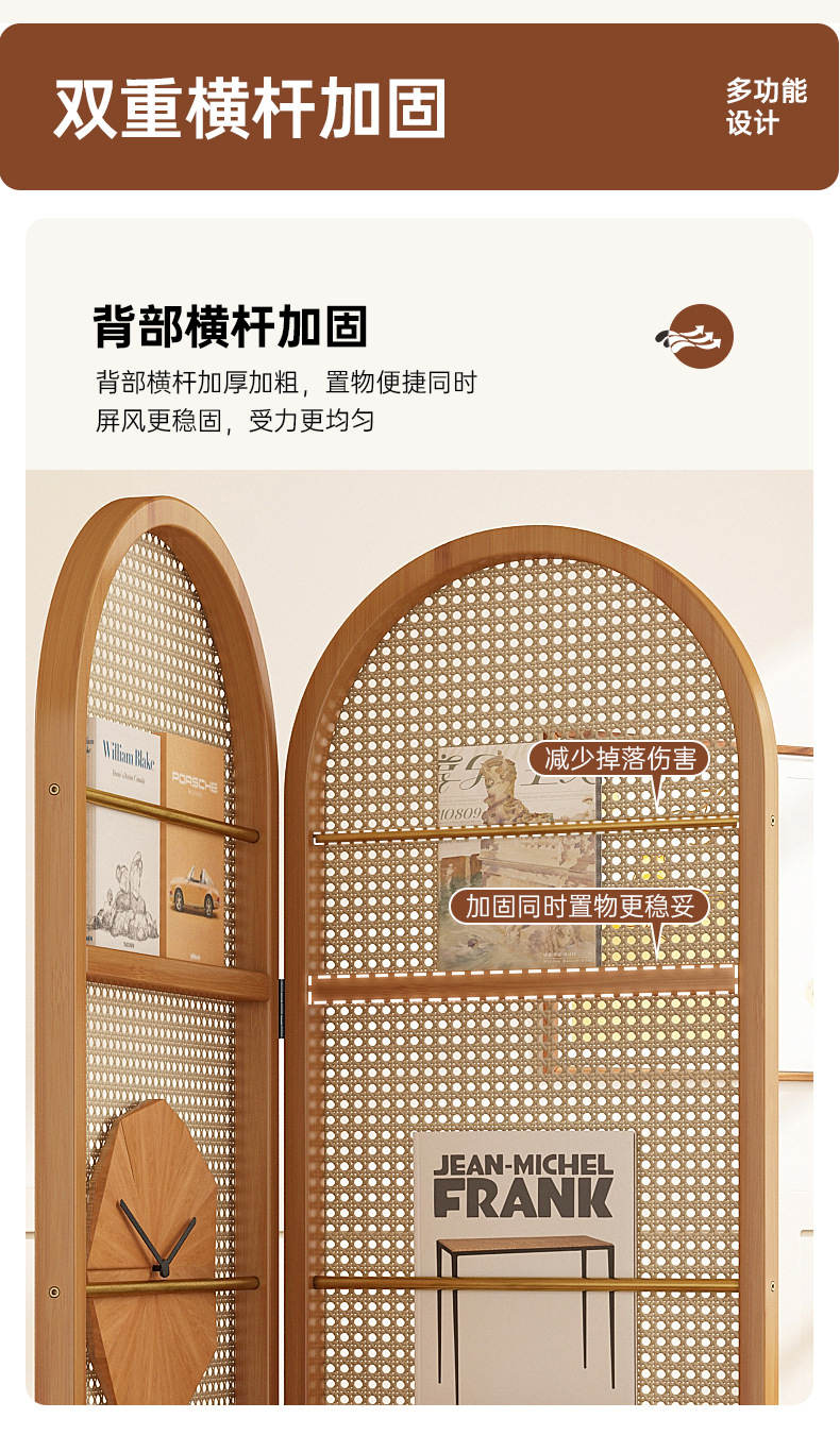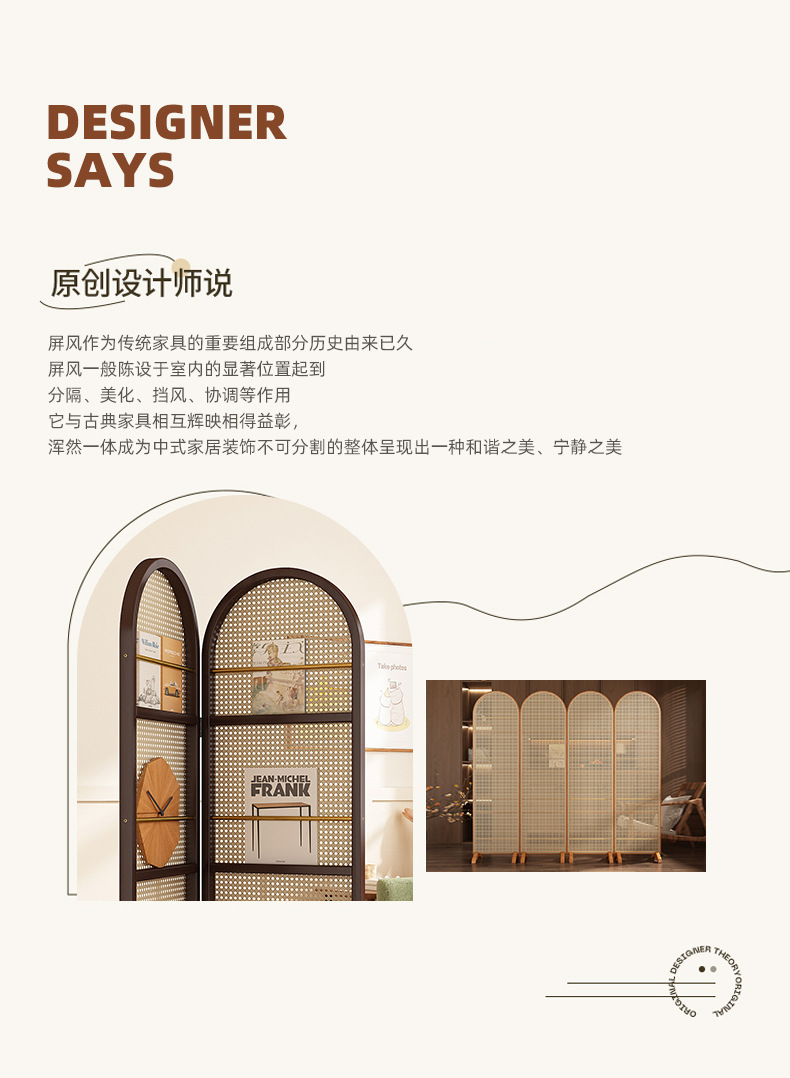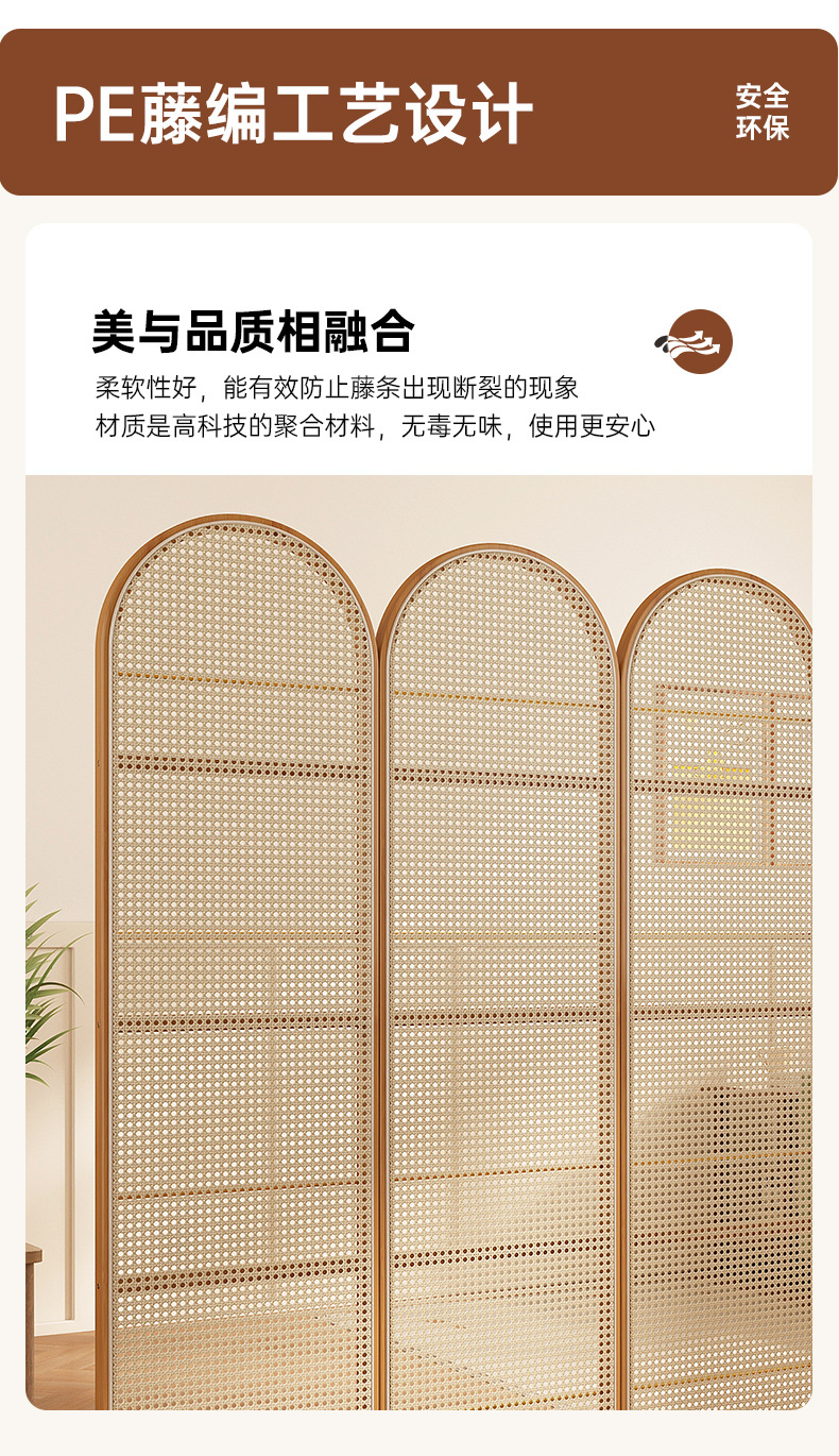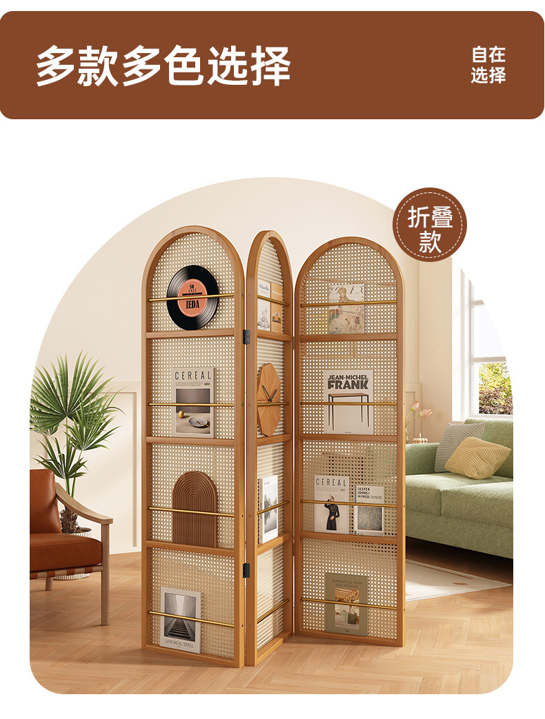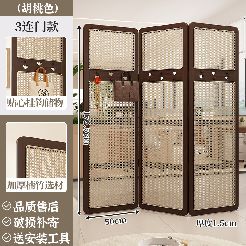 새로운 중국 스타일의 거실 등나무 접이식 스크린 이동식 접이식 복고풍 파티션 프랑스 침실 차단 보관 책장