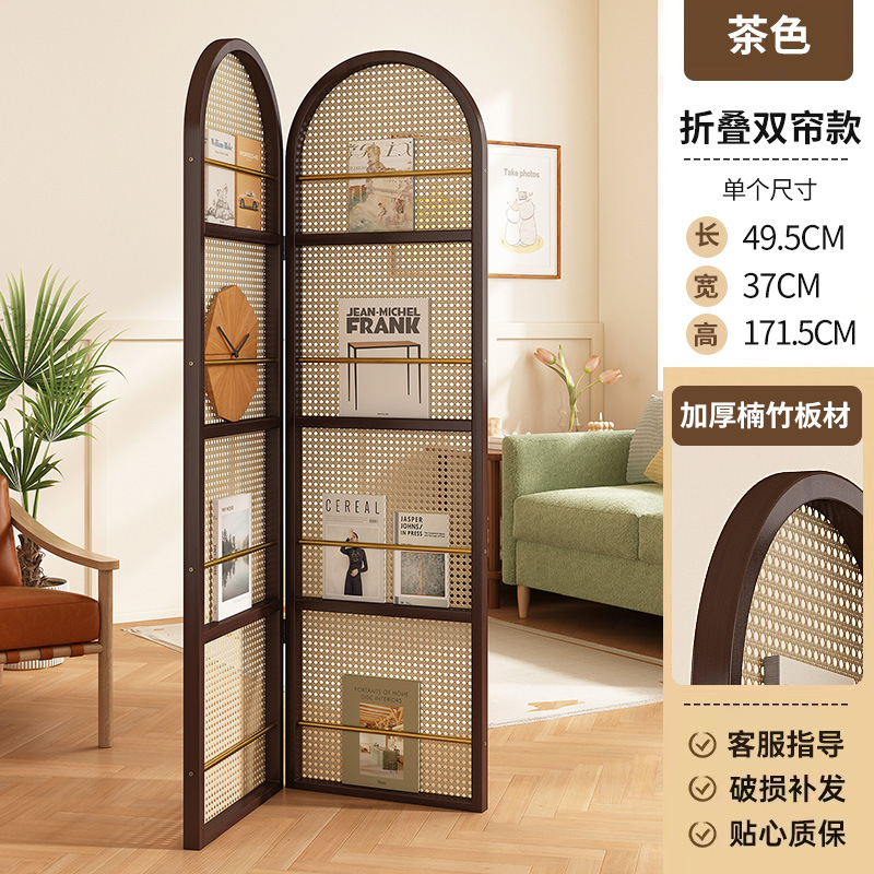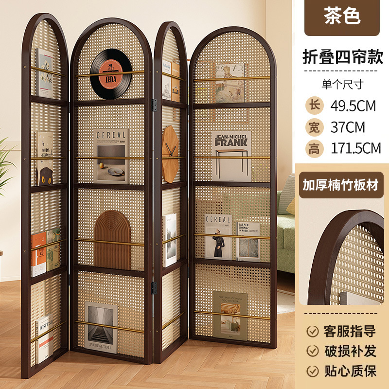 새로운 중국 스타일의 거실 등나무 접이식 스크린 이동식 접이식 복고풍 파티션 프랑스 침실 차단 보관 책장스토어 가기