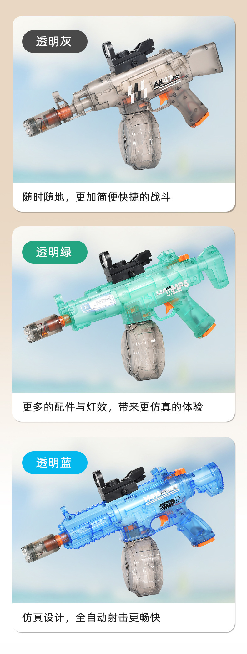 국경 간 AK47 전기 물 총 M416 물 총 대용량 고압 물 총 MP5 어린이 야외 장난감스토어 가기