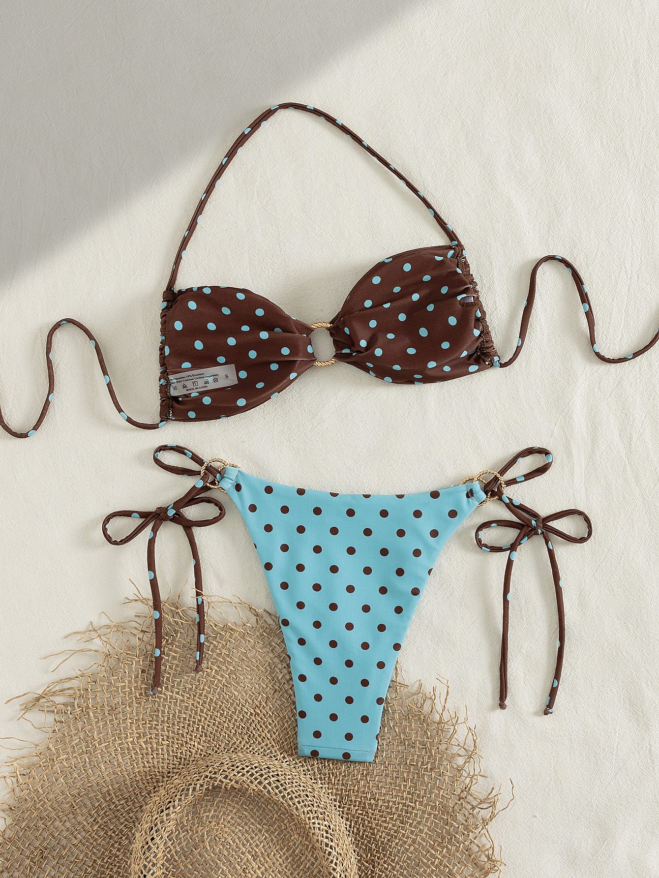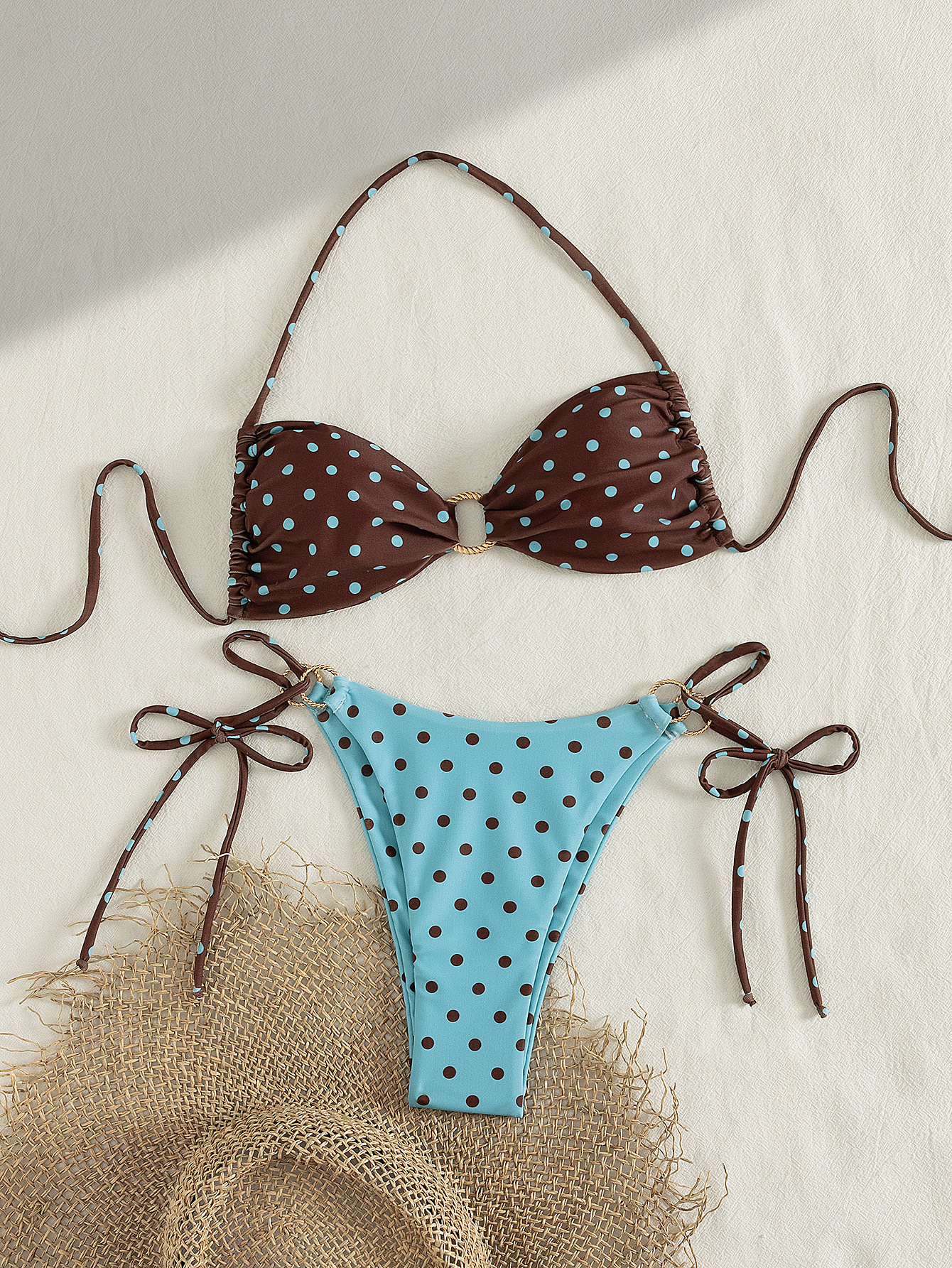 2025 새로운 솔리드 컬러 섹시 링 할로우 아웃 스플릿 수영복 레이스 업 넥 튜브 탑 투피스 비키니 세트
